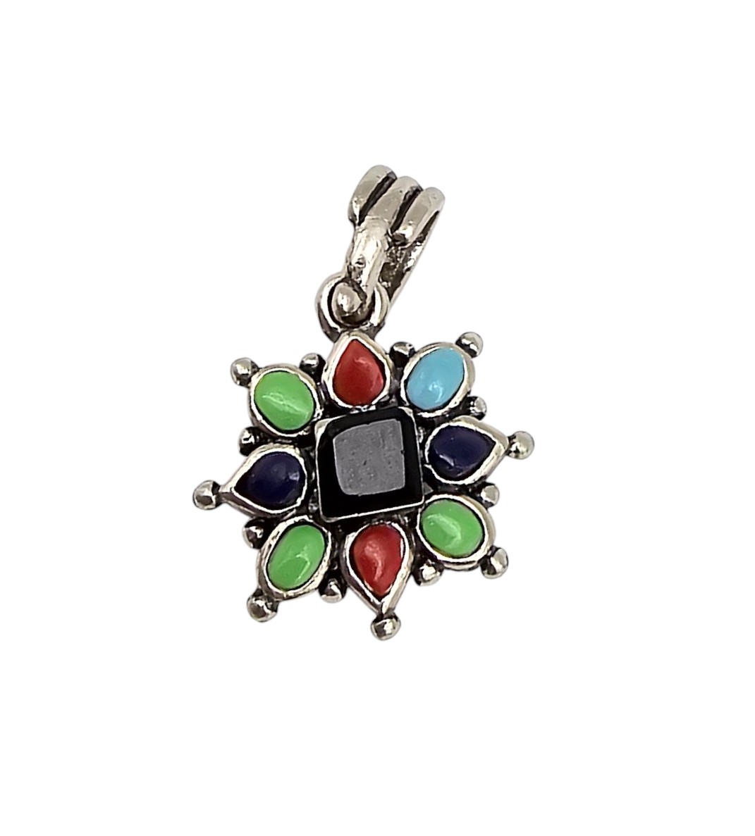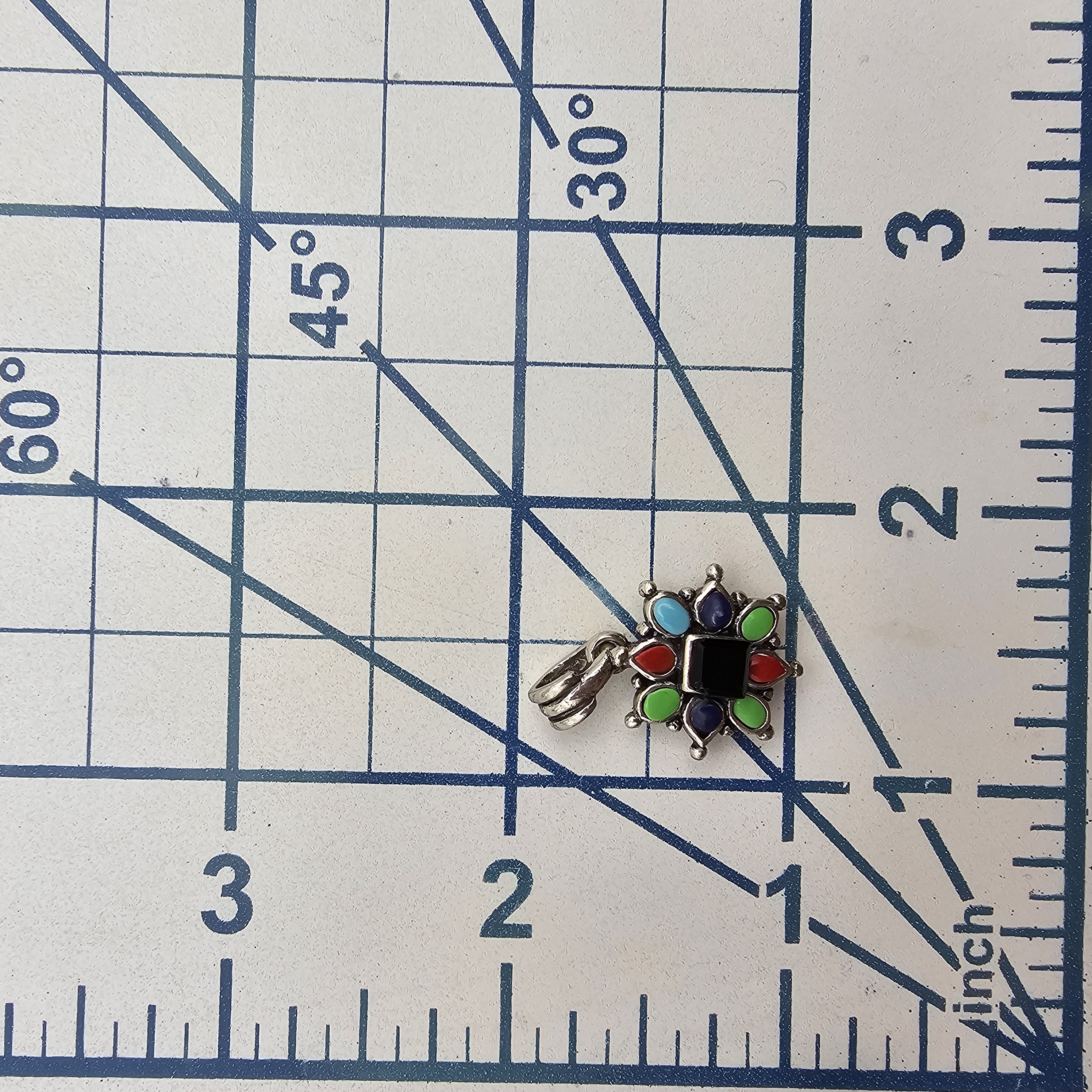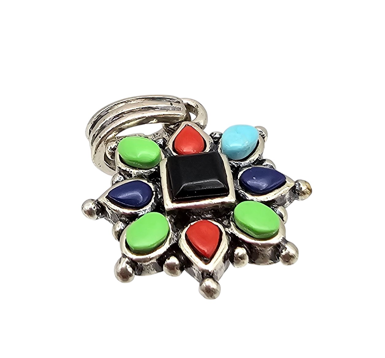 Southwestern Multi Stone Sterling Silver Pendant 3.7 G