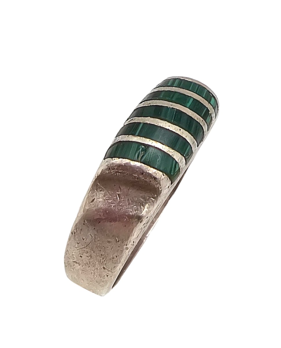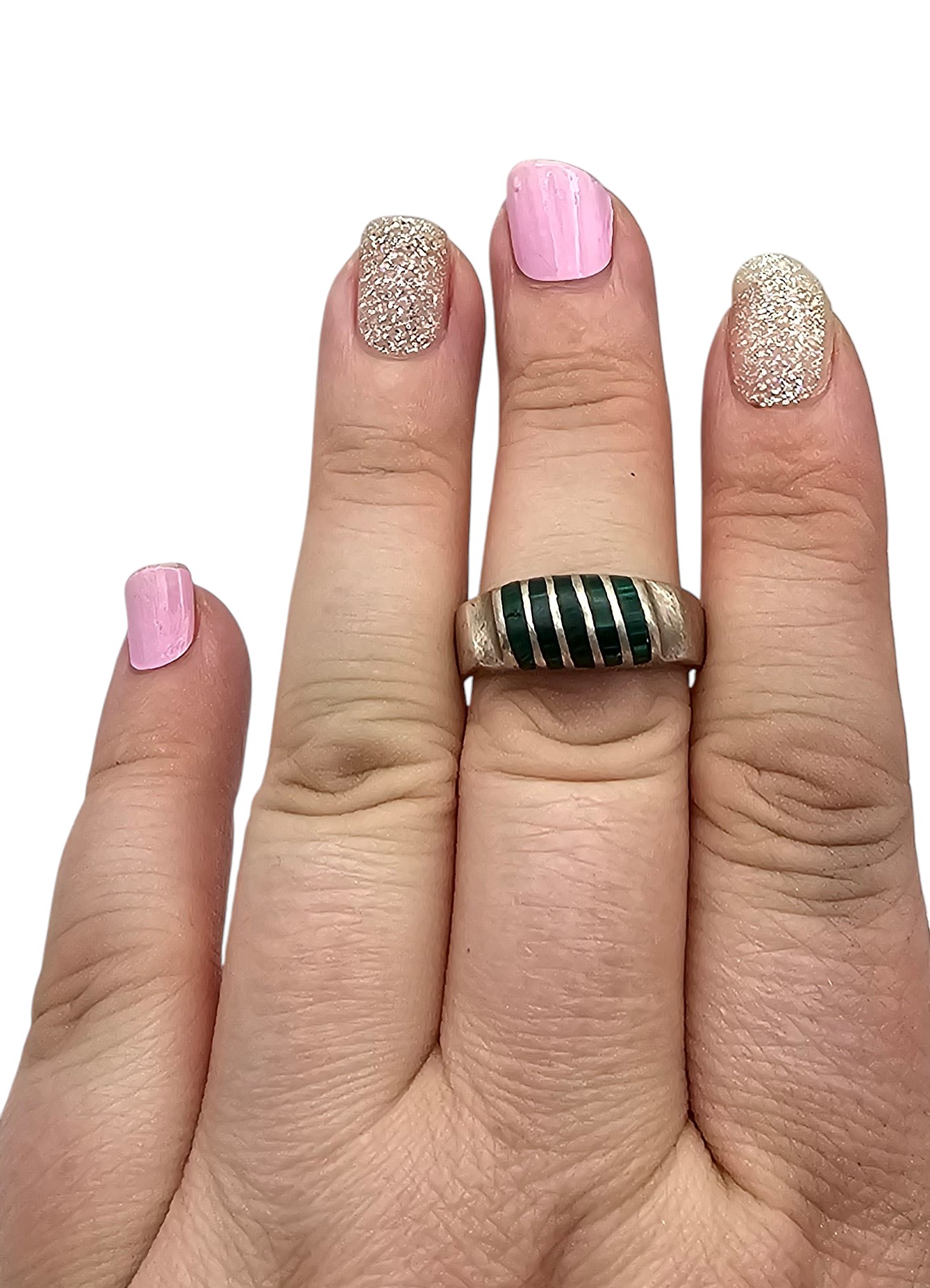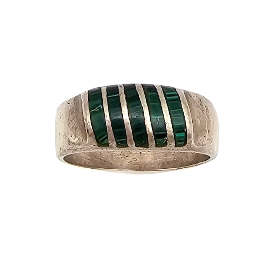 Native Malachite Sterling Silver Inlay Ring Size 9.25