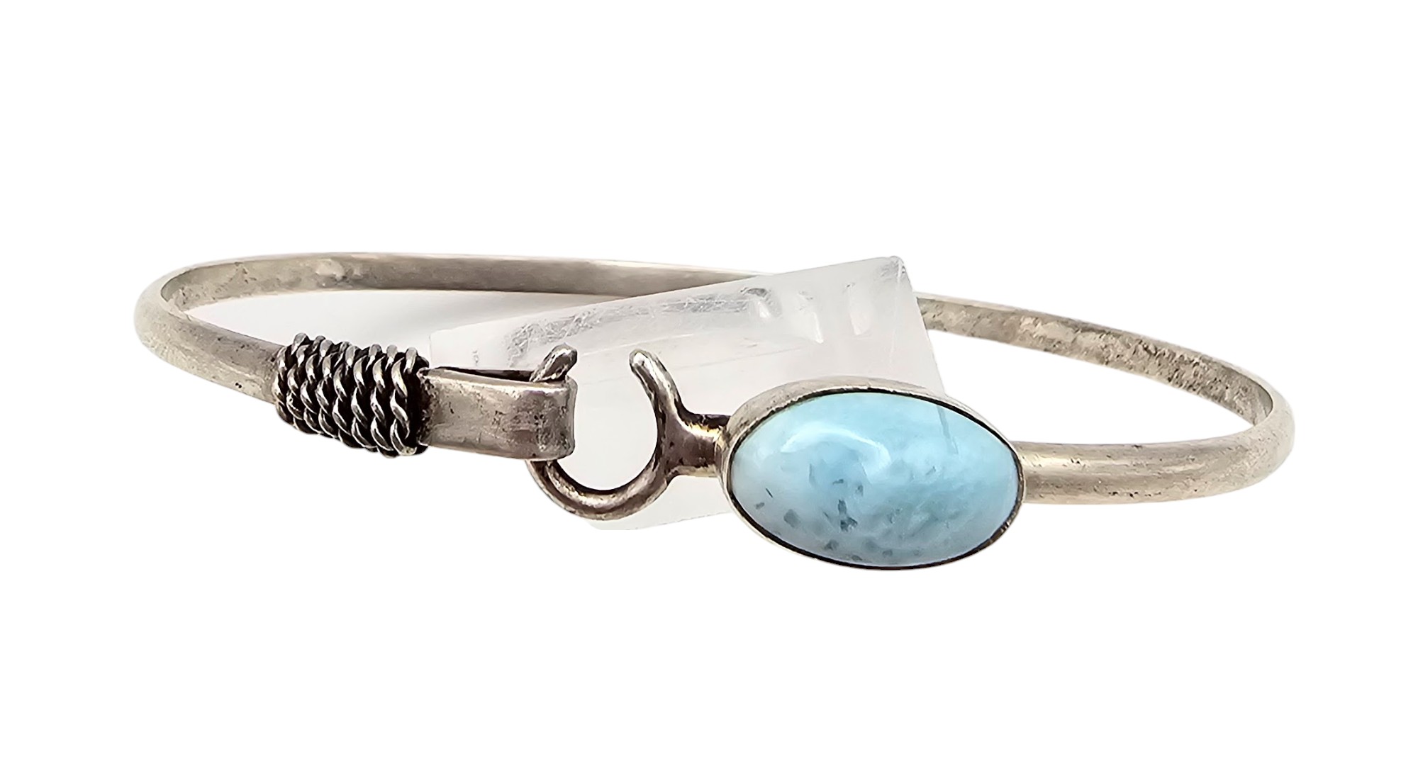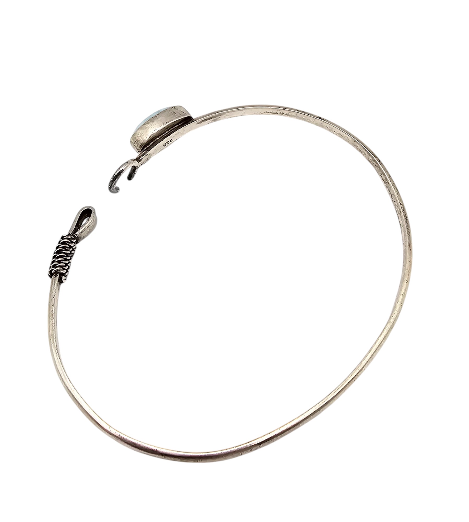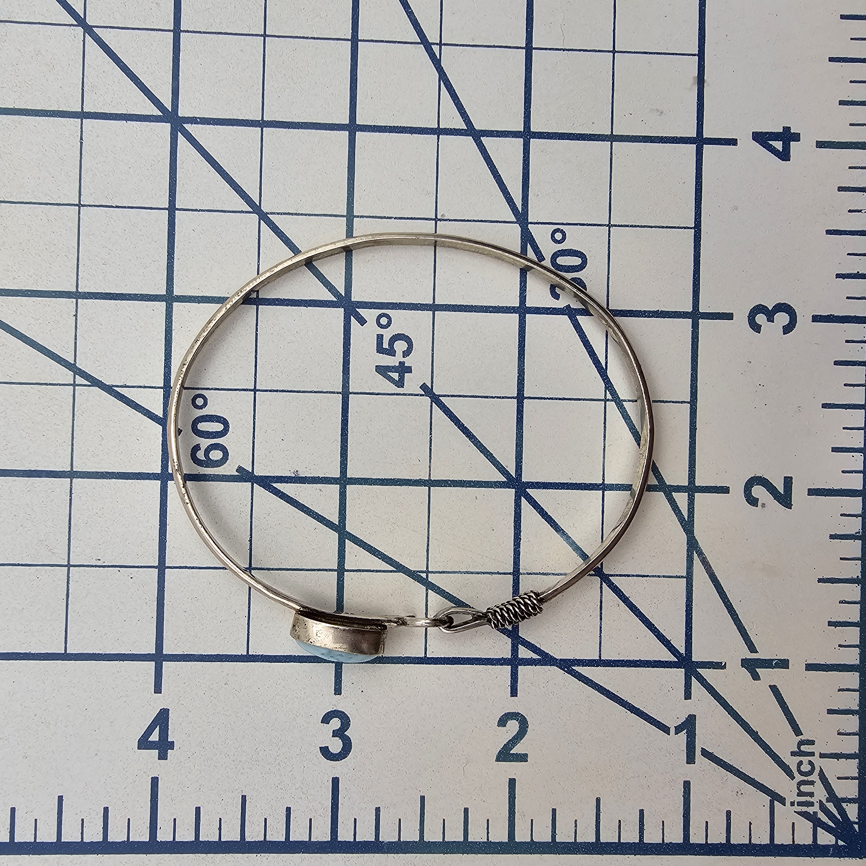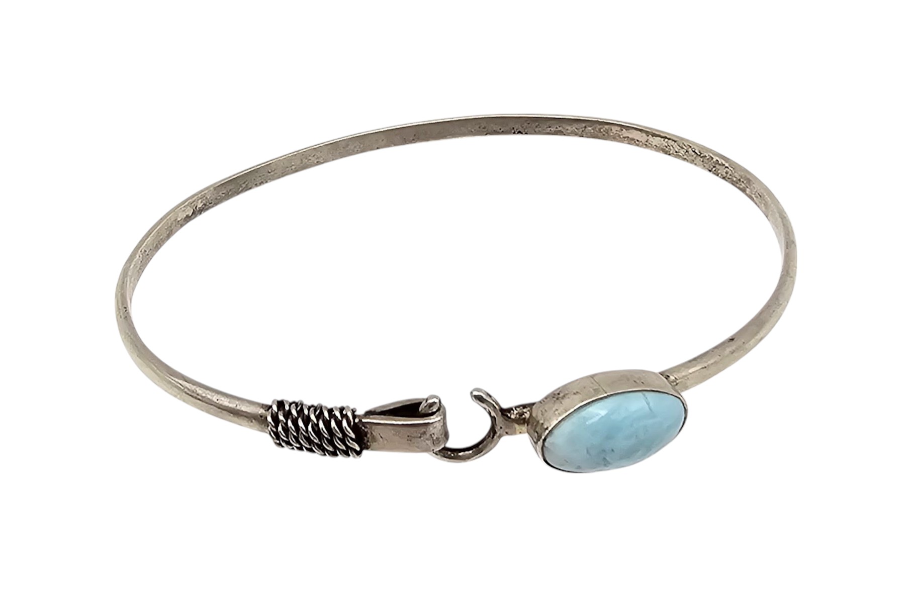 Southwestern Larimar Sterling Silver Eye Hook Bangle Bracelet 8.7 G
