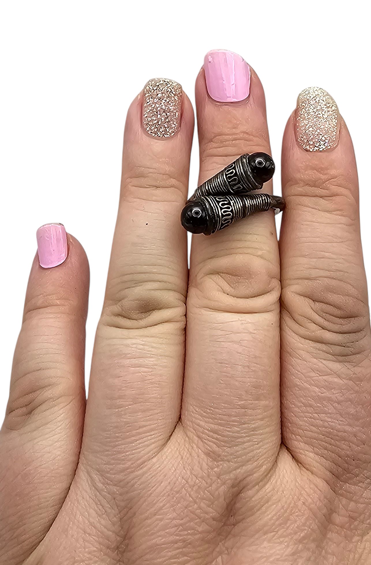 Southwestern Onyx Sterling Silver Wrap Ring Size 5.75 7.8 G