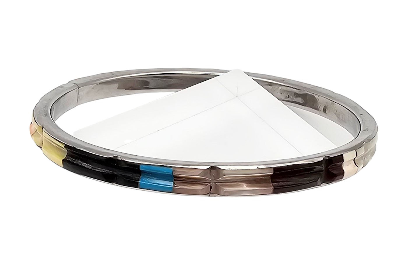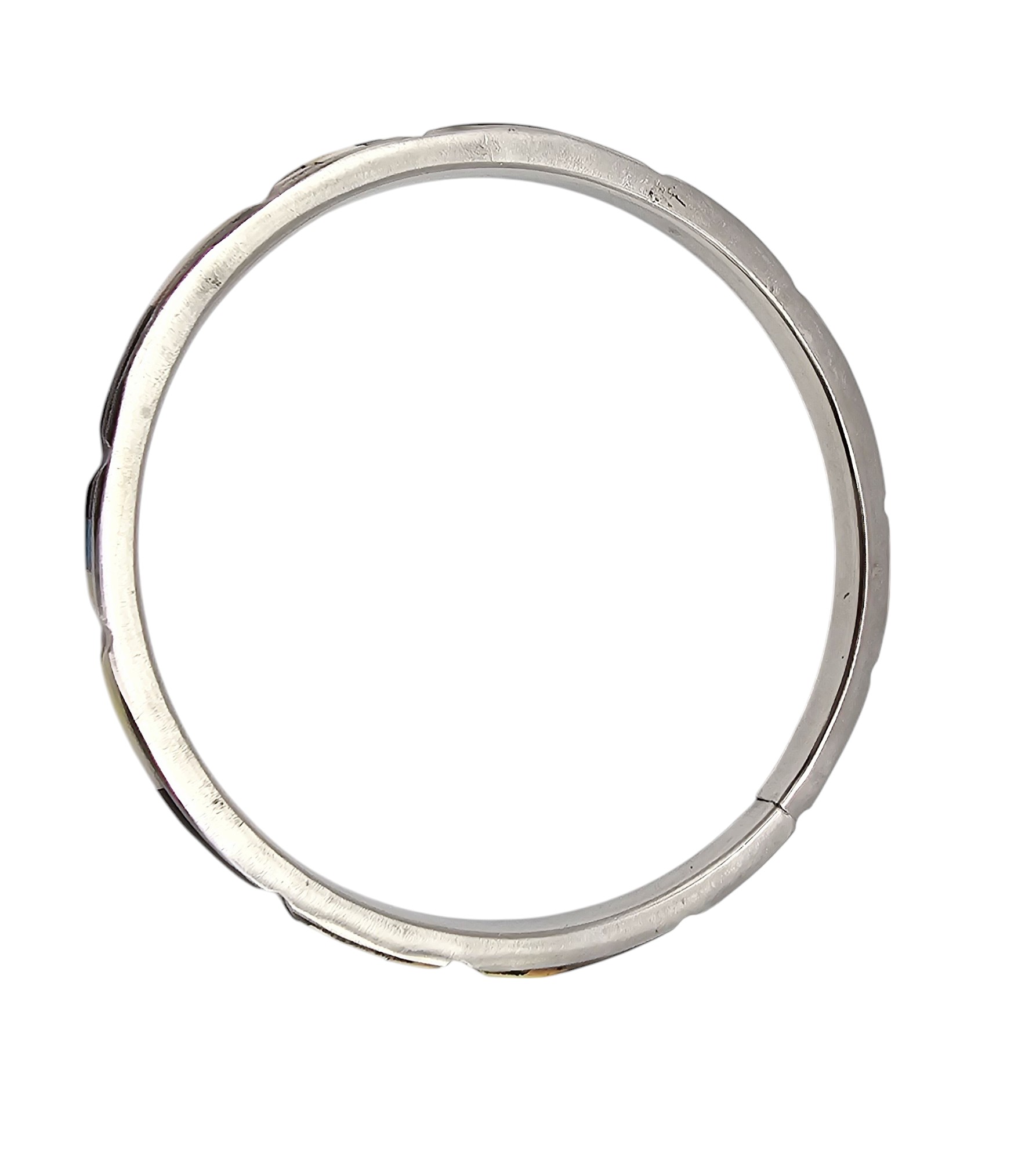 Southwestern Mixed Metal Carved Turquoise Mother of Pearl Bangle Bracelet