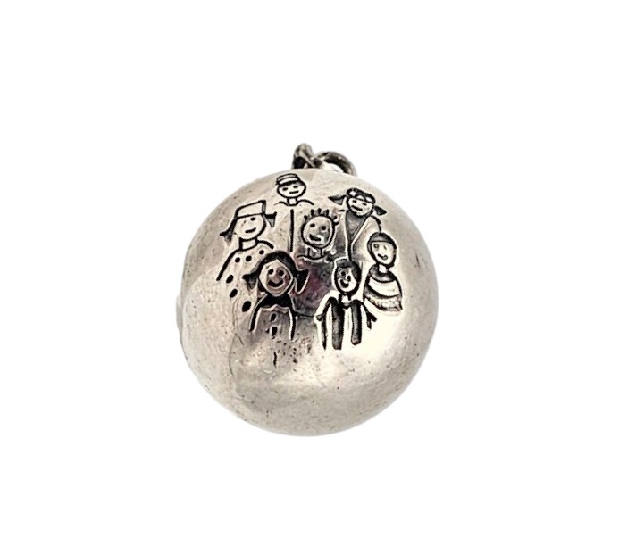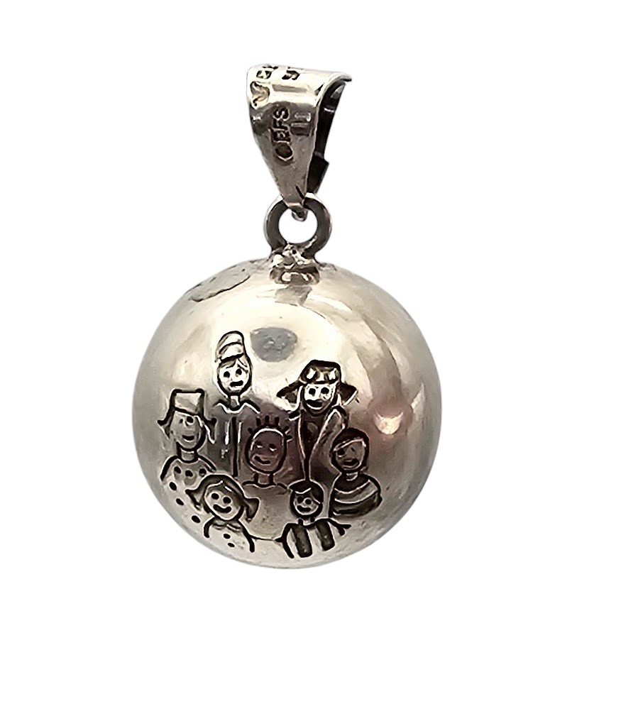 Mexico Sterling Silver Children World Globe Bell Pendant 15.3 G