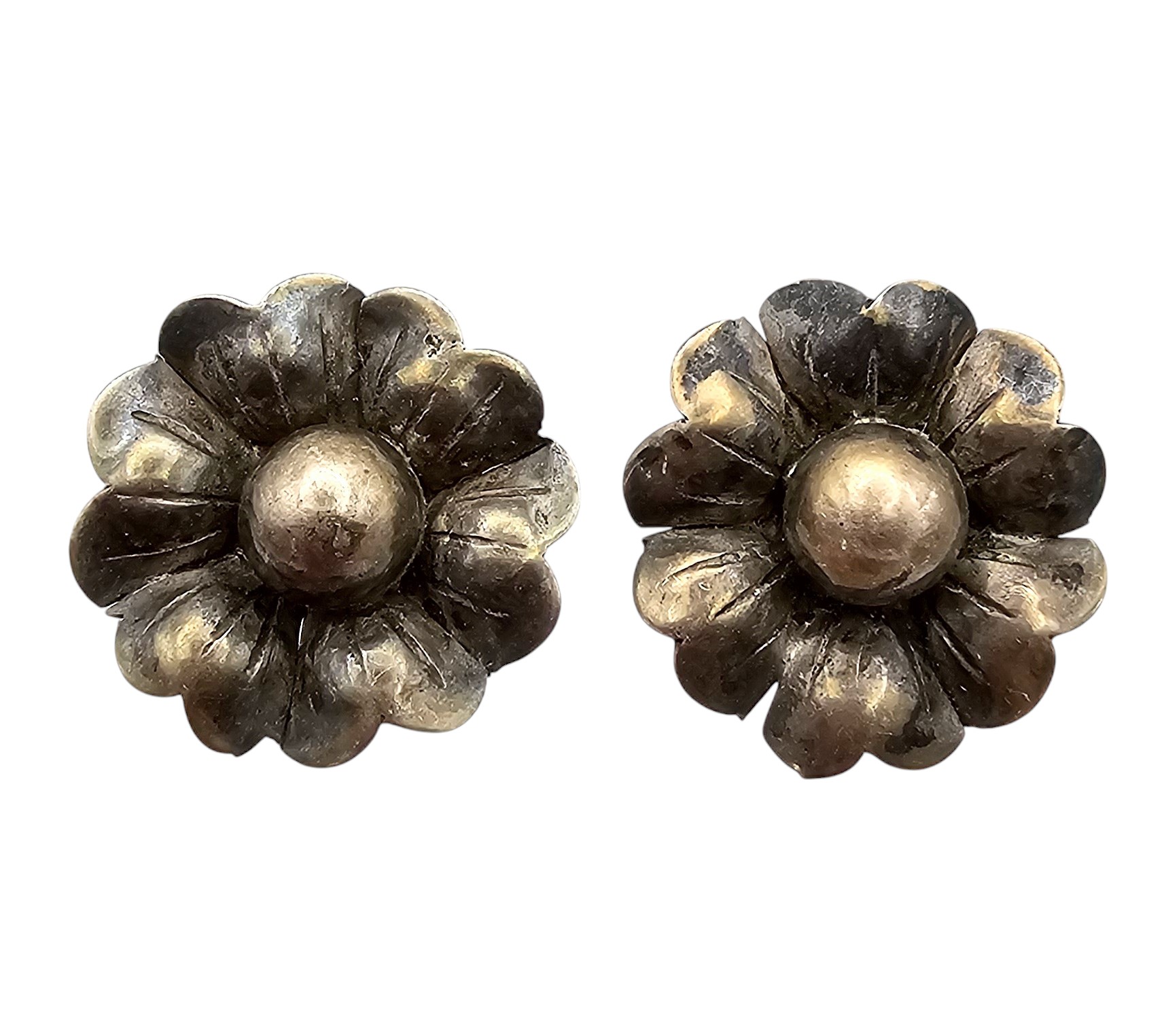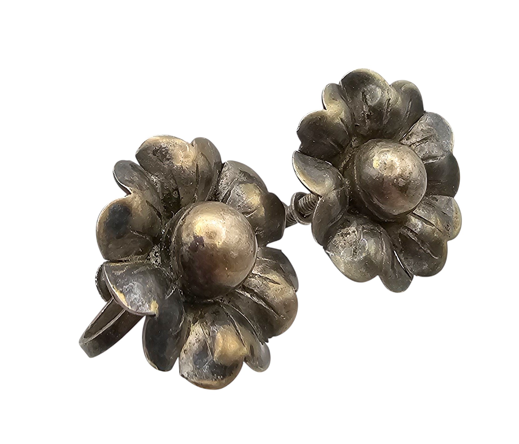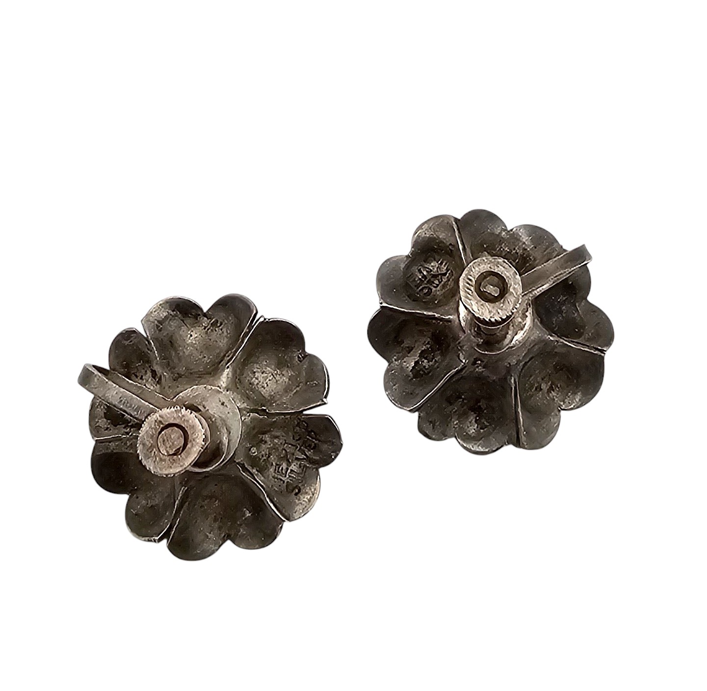 Mexico Sterling Silver Flower Earrings 9.2 G