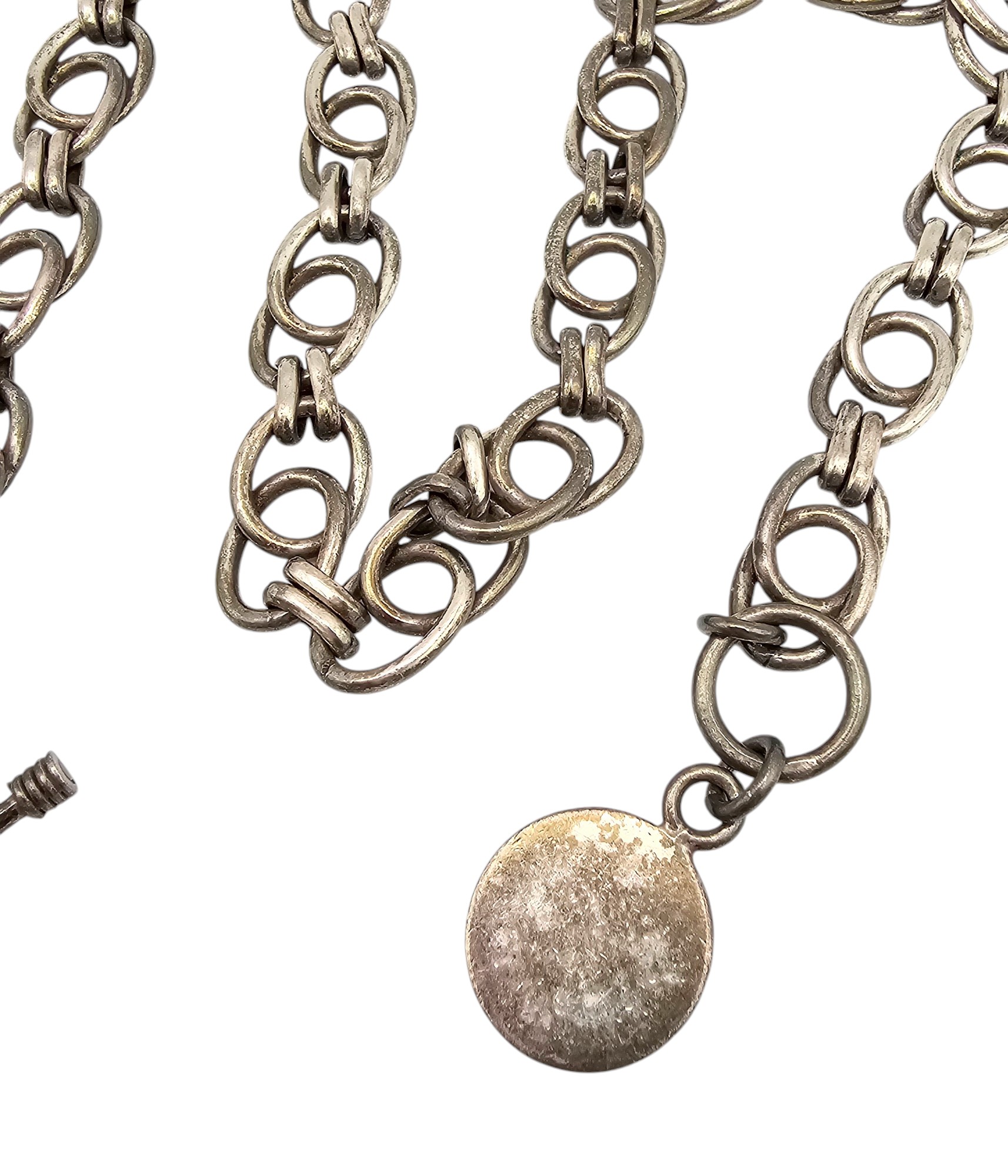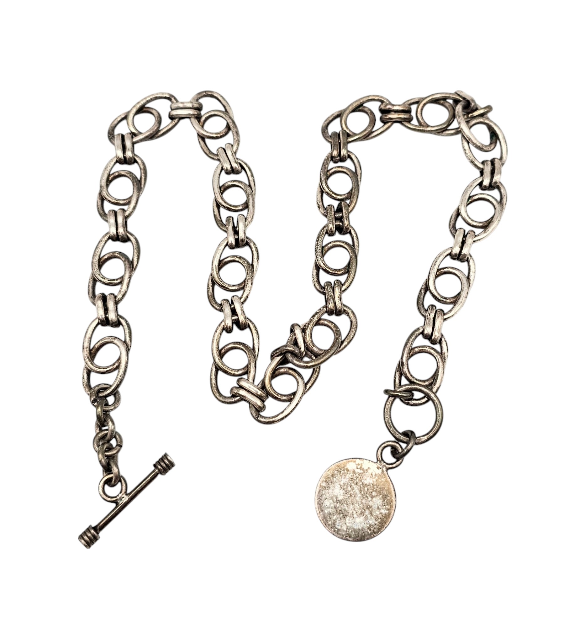 Mexico Sterling Silver Double Loop Monogram Toggle Necklace 61.2 G