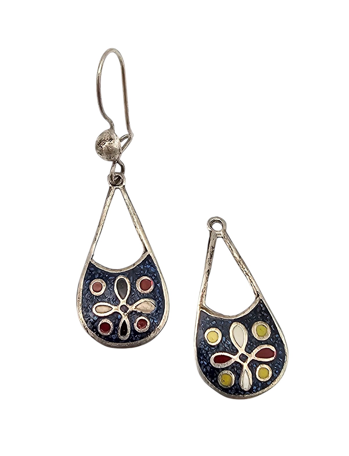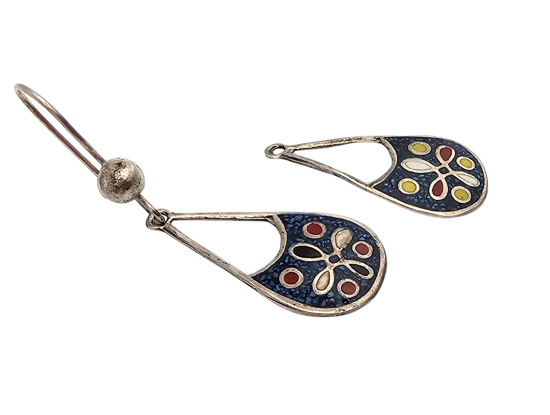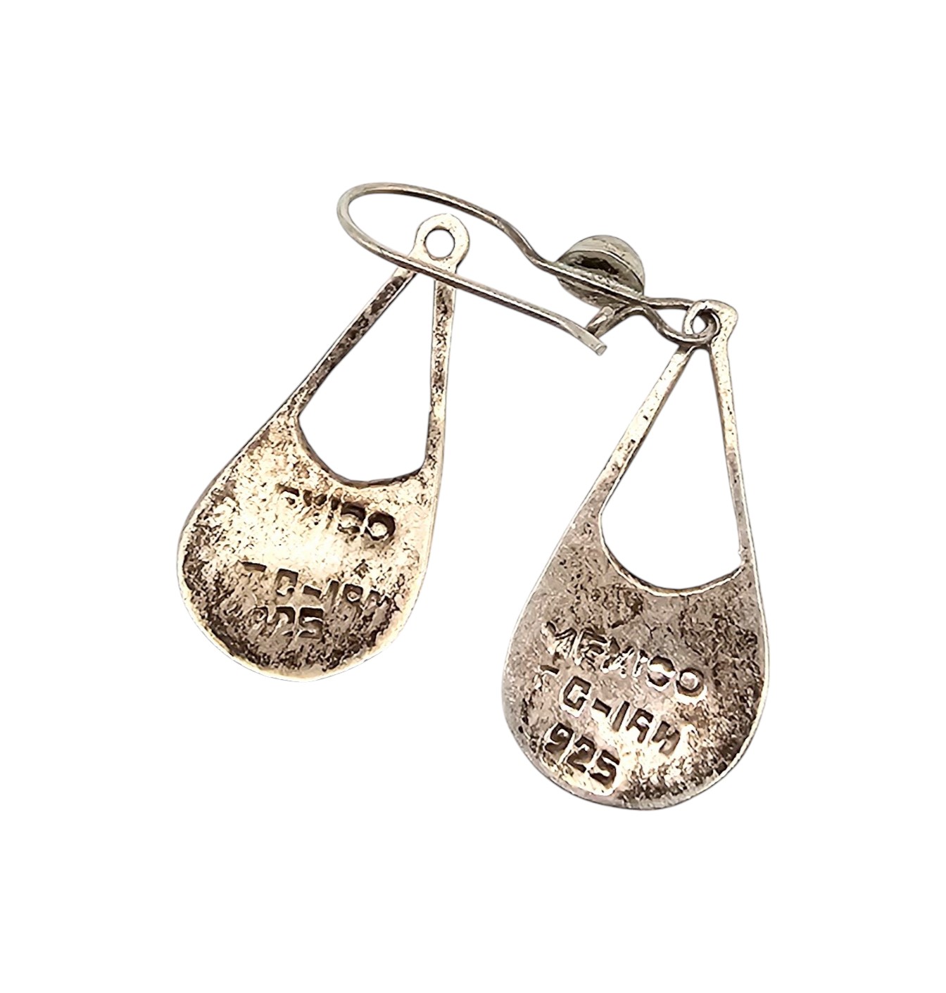 Mexico Taxco TC-18? Crushed Turquoise Sterling Silver Drop Dangle Earrings 1.6 G