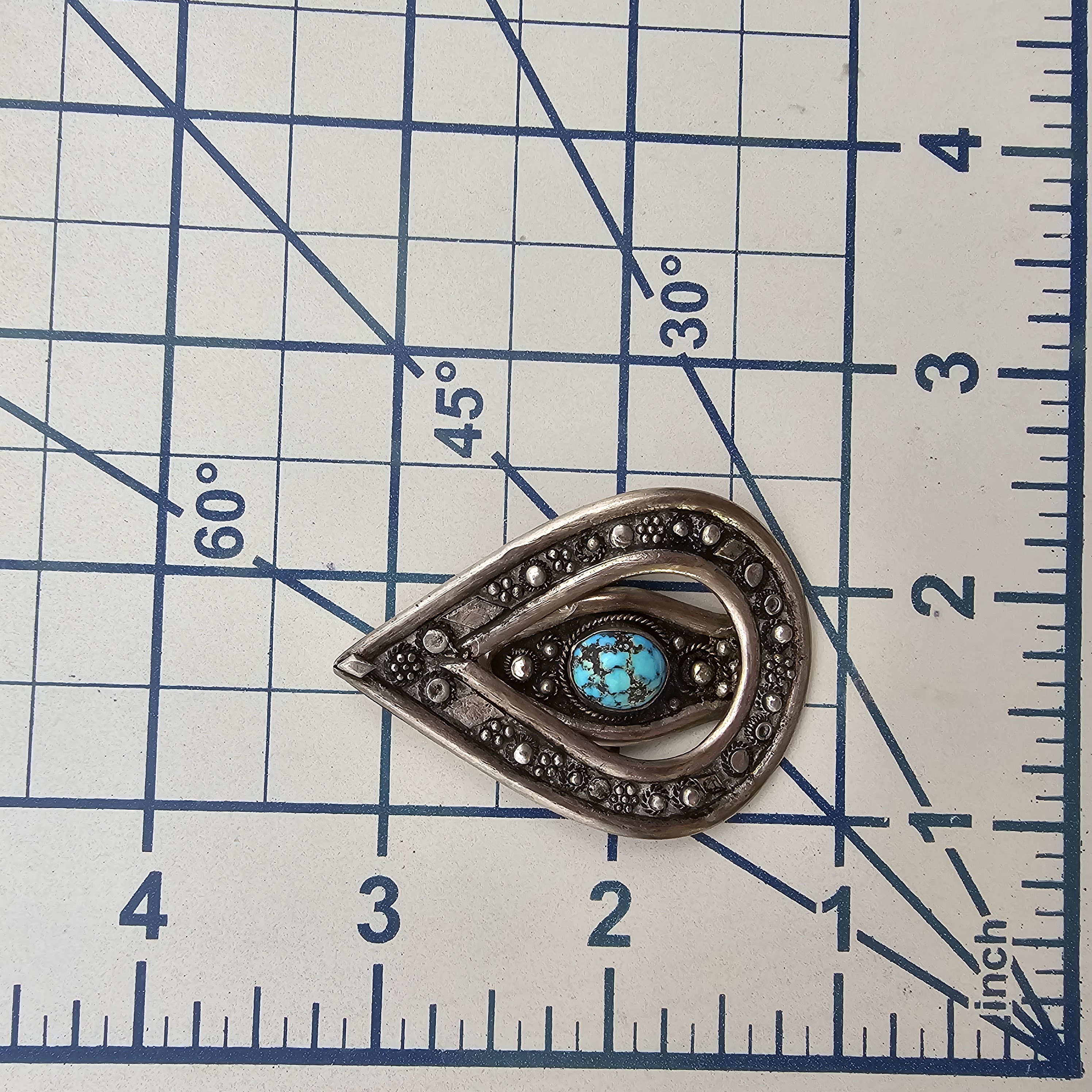 Mexico Turquoise Sterling Silver Brooch Clip 15.1 G