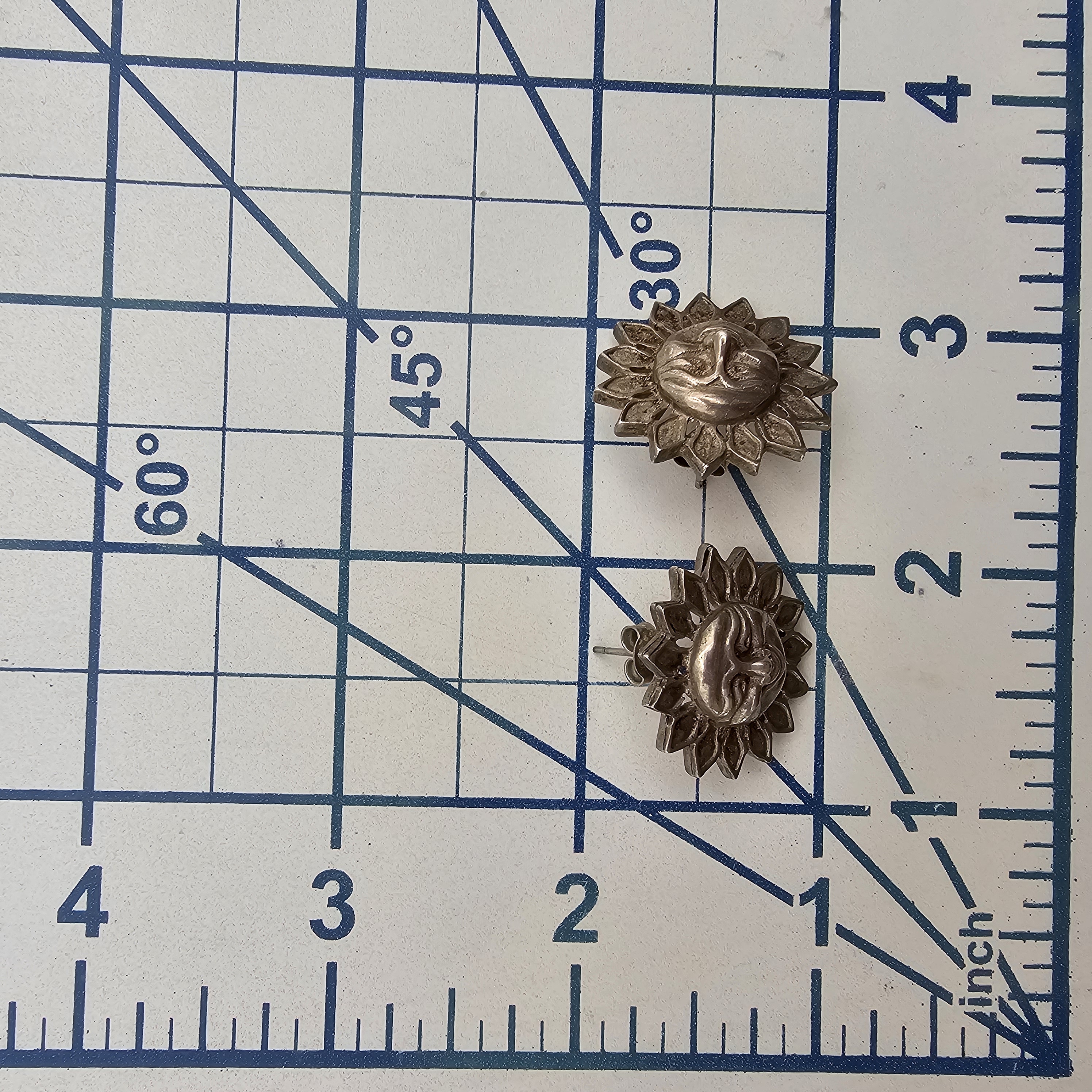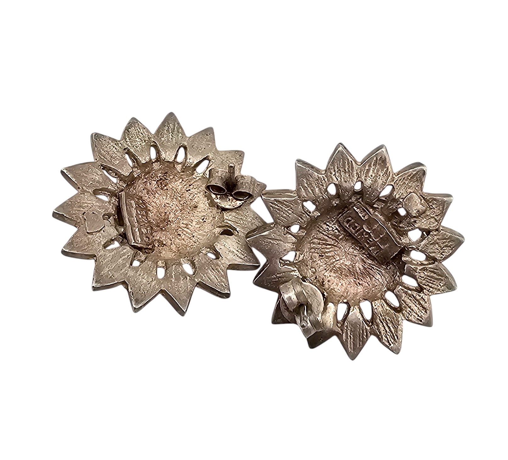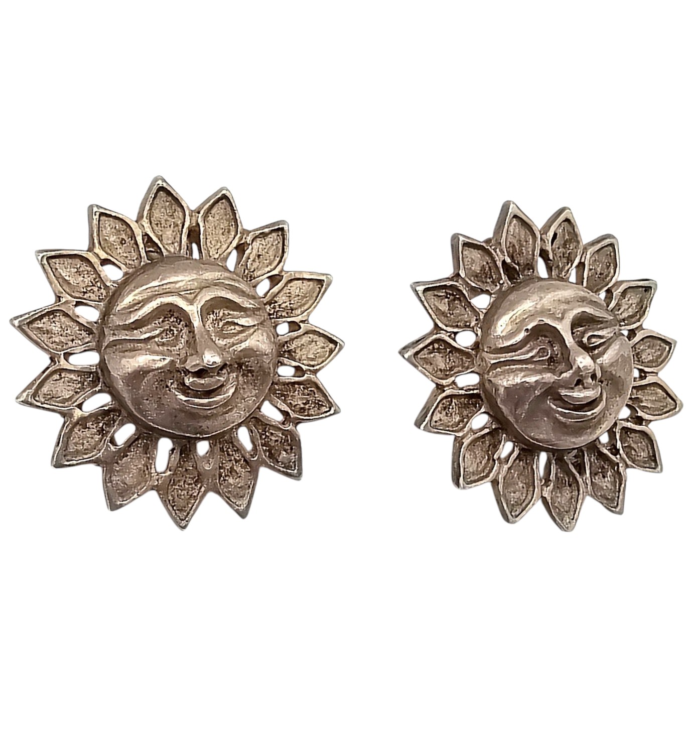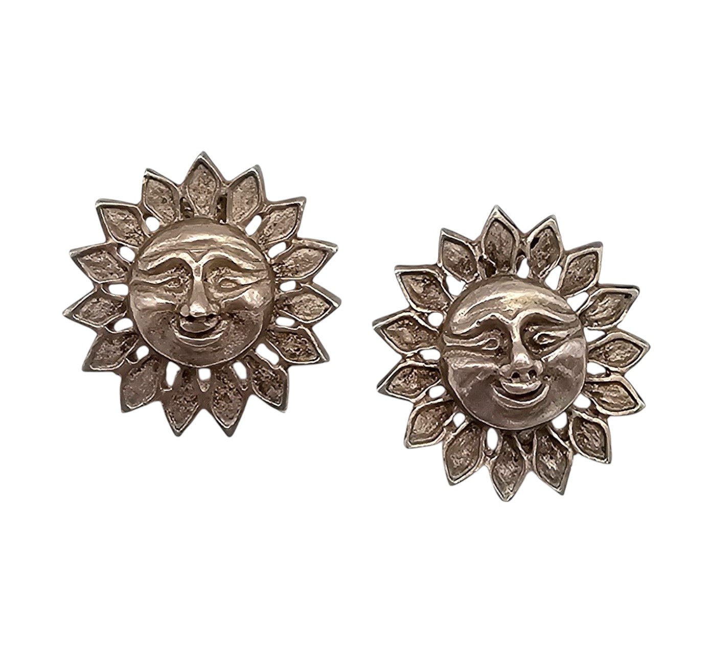 Mexico Sterling Silver Sun Face Earrings 9.7 G