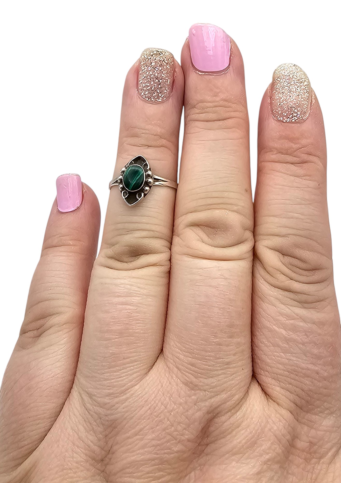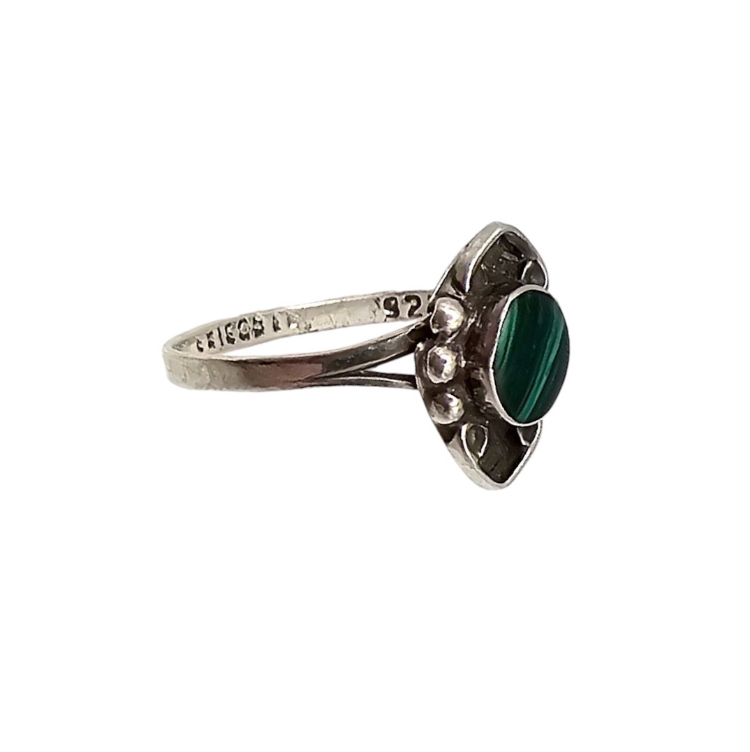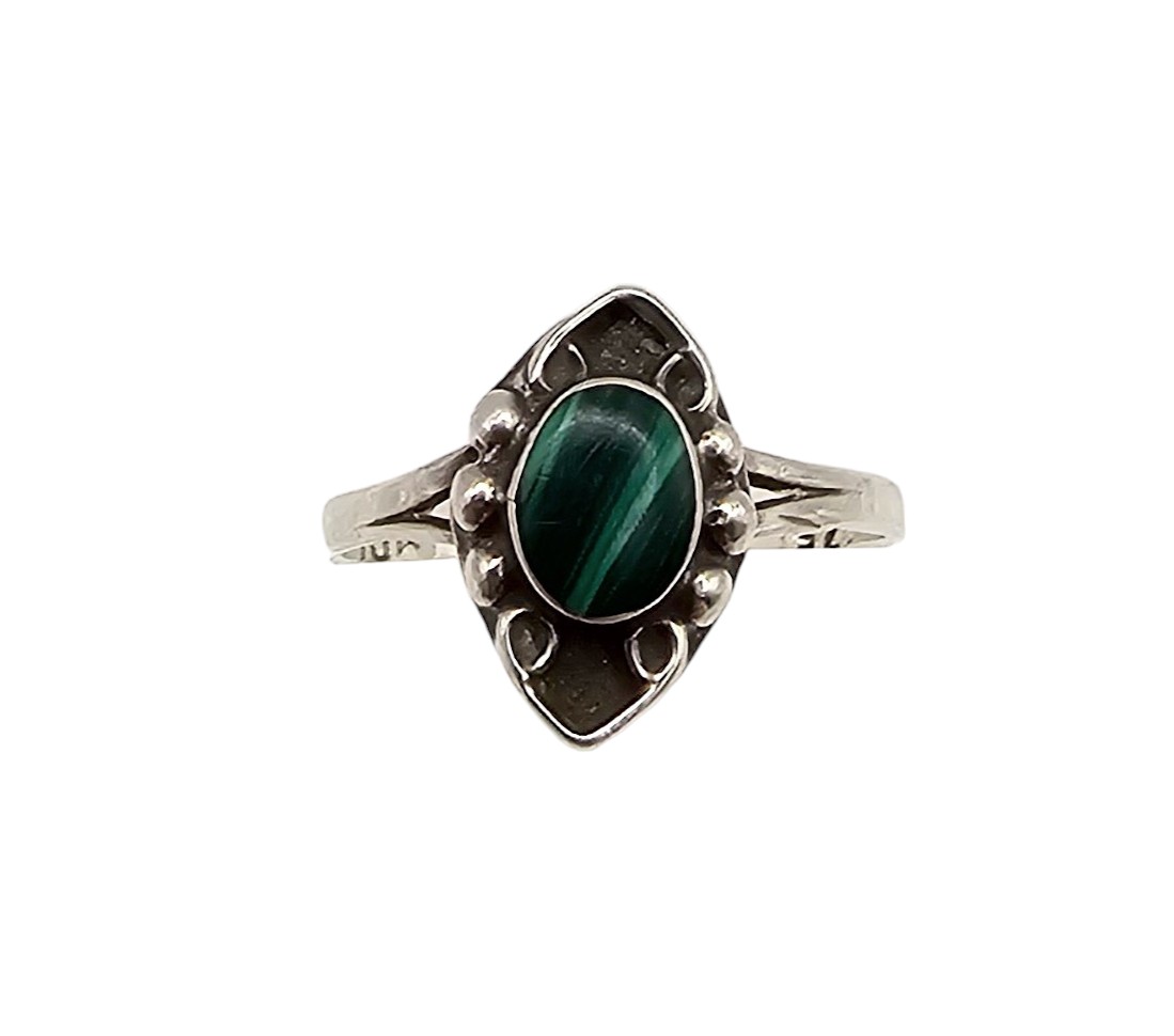 Mexico Taxco TA-18 Sterling Silver Malachite Ring Size 5 1.2 G