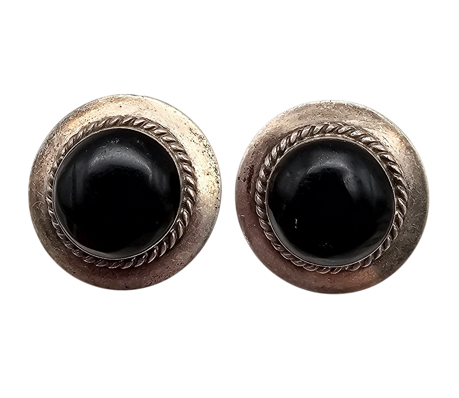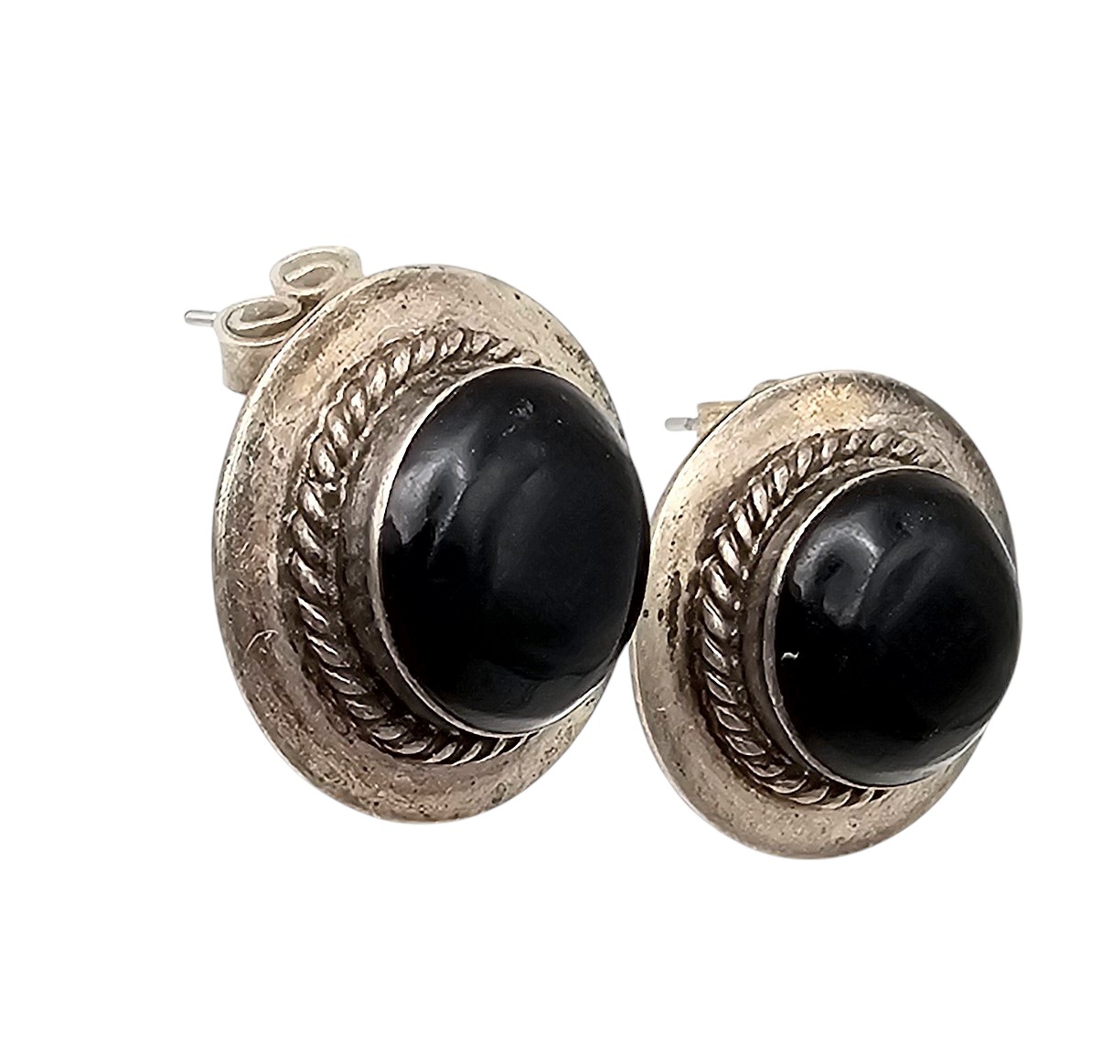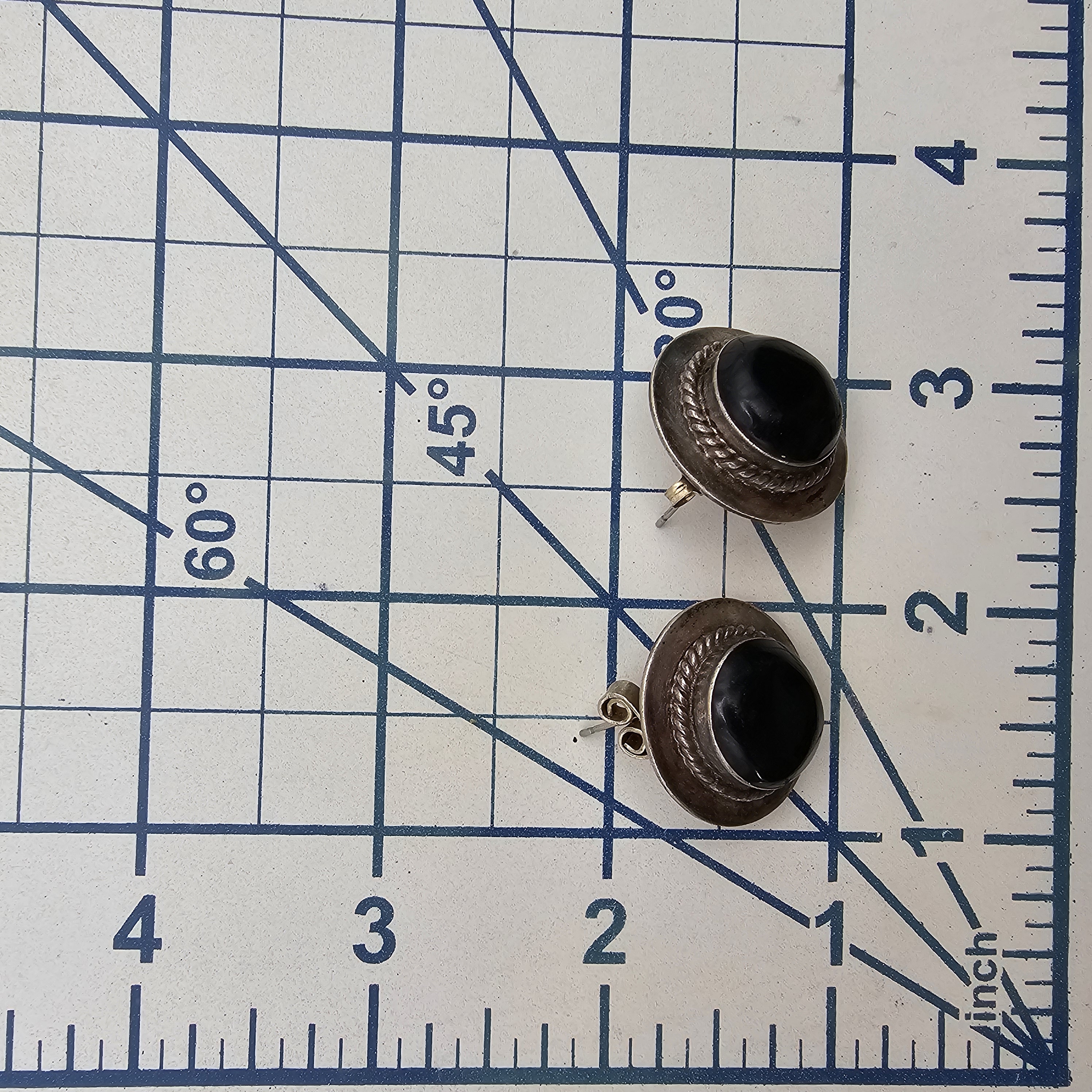 Mexico Taxco Onyx Sterling Silver Earrings 16.3 G
