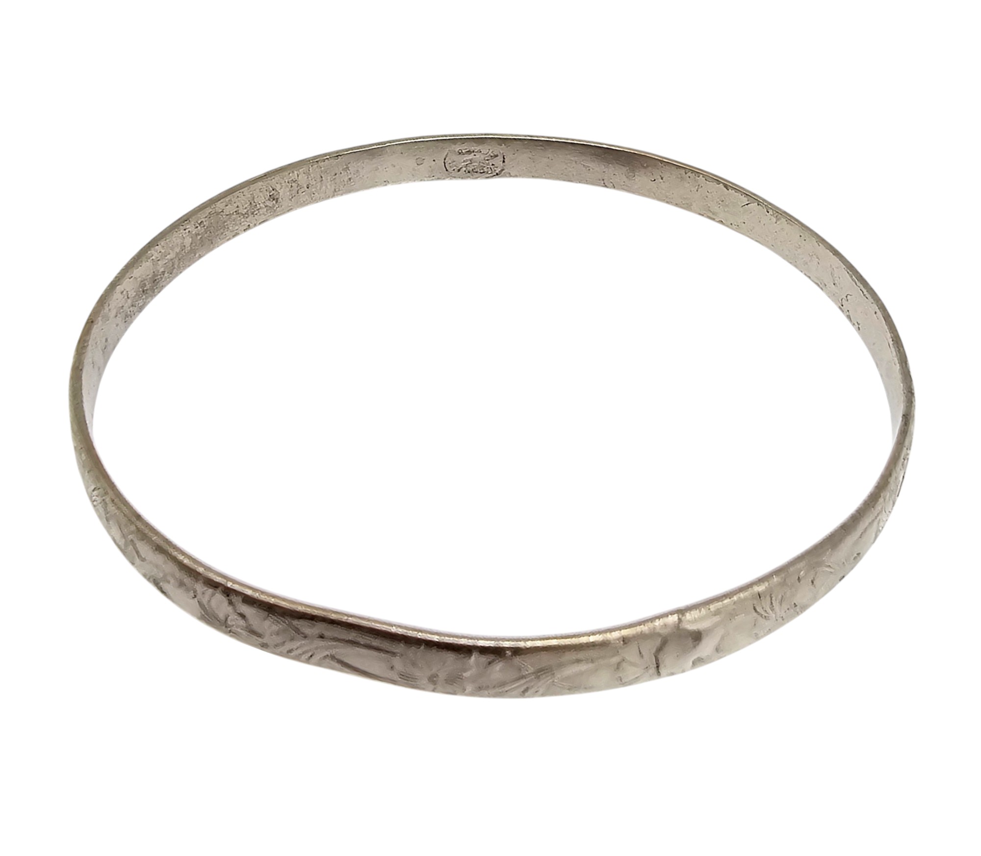 Mexico Sterling Silver Floral Design Bangle Bracelet 11.7 G