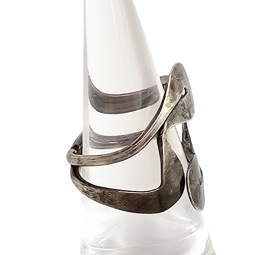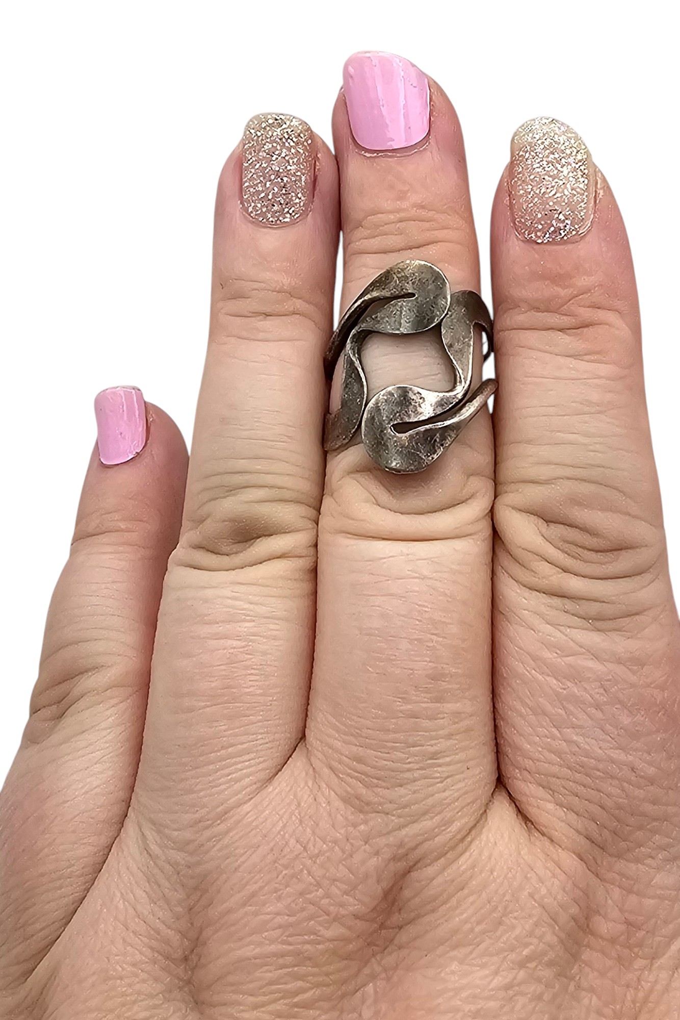 Mexico Taxco TD-27 Sterling Silver Modernist Ring Size 6 3.8 G