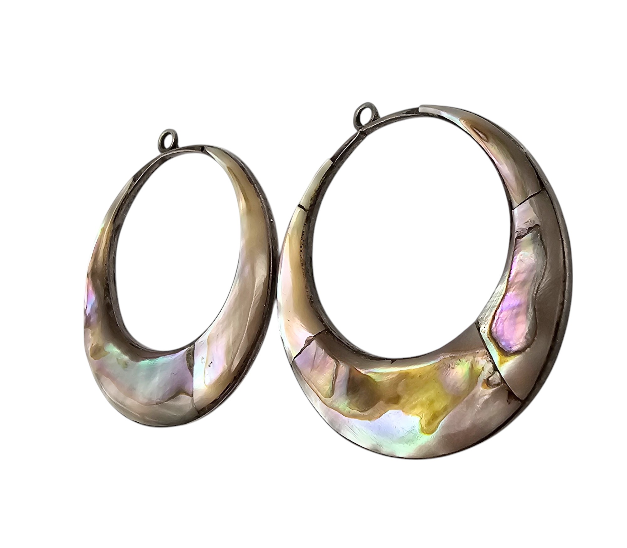 Mexico Abalone Sterling Silver Circle Earrings Pieces 5.5 G