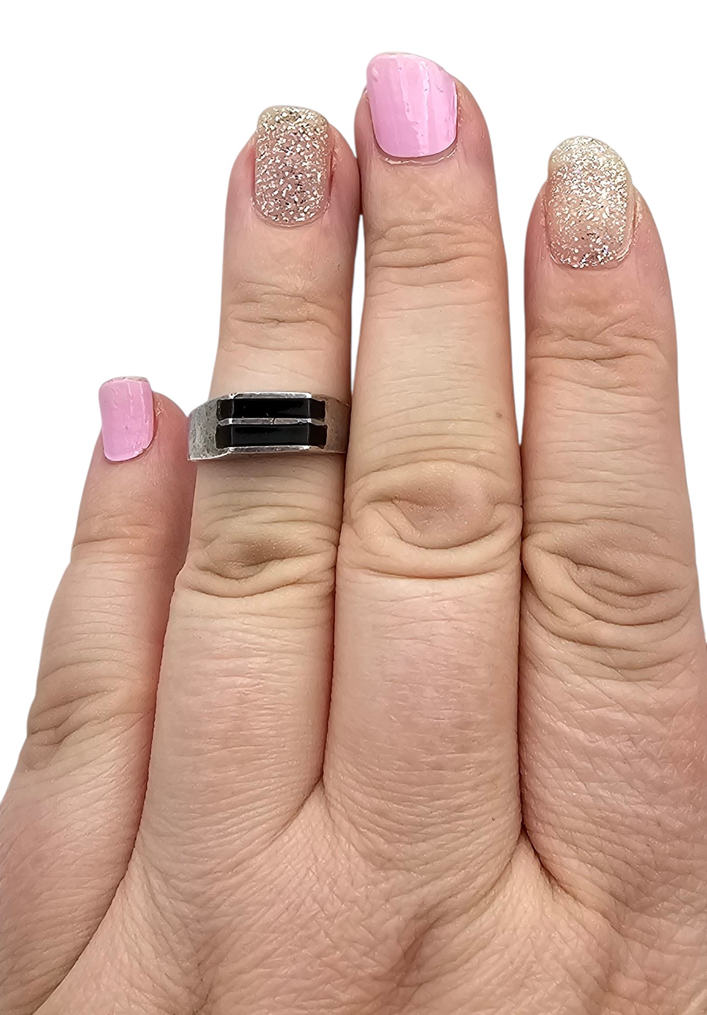 Signed Vintage Mexico Taxco Onyx Sterling Silver Inlay Ring Size 7.5 3 G