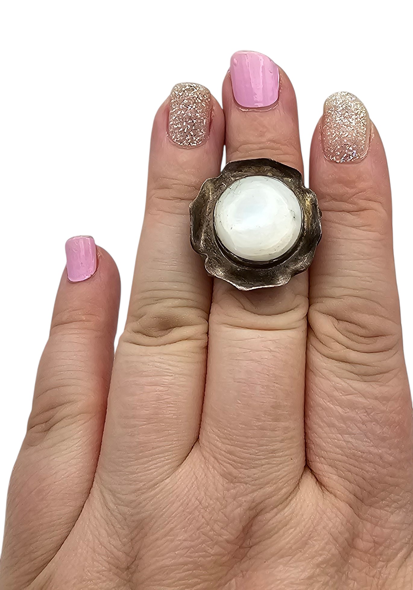 Mexico Mother Of Pearl Sterling Silver Adjustable Ring 9.3 G