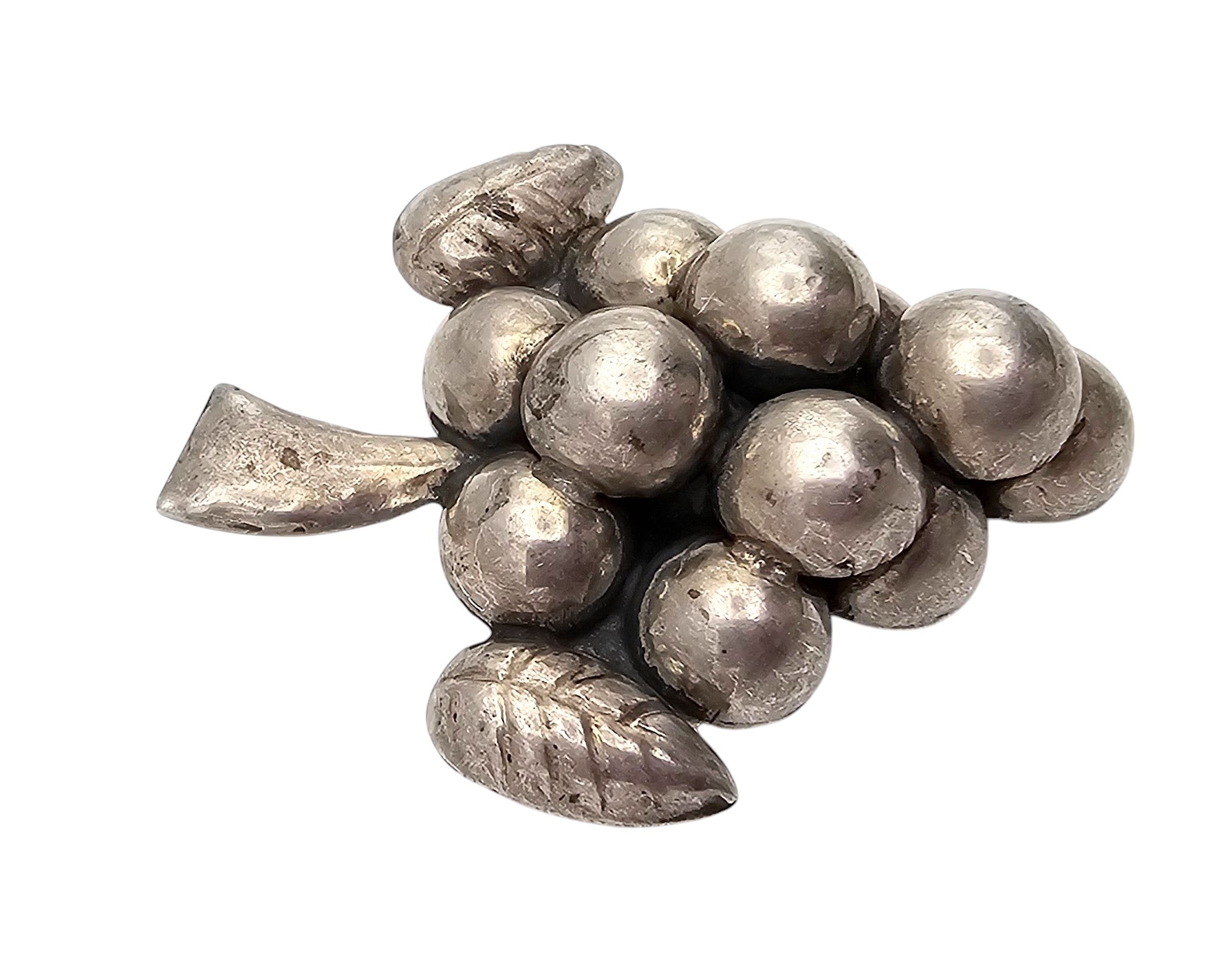 Mexico Sterling Silver Hollow Form Grape Cluster Brooch 10.2 G