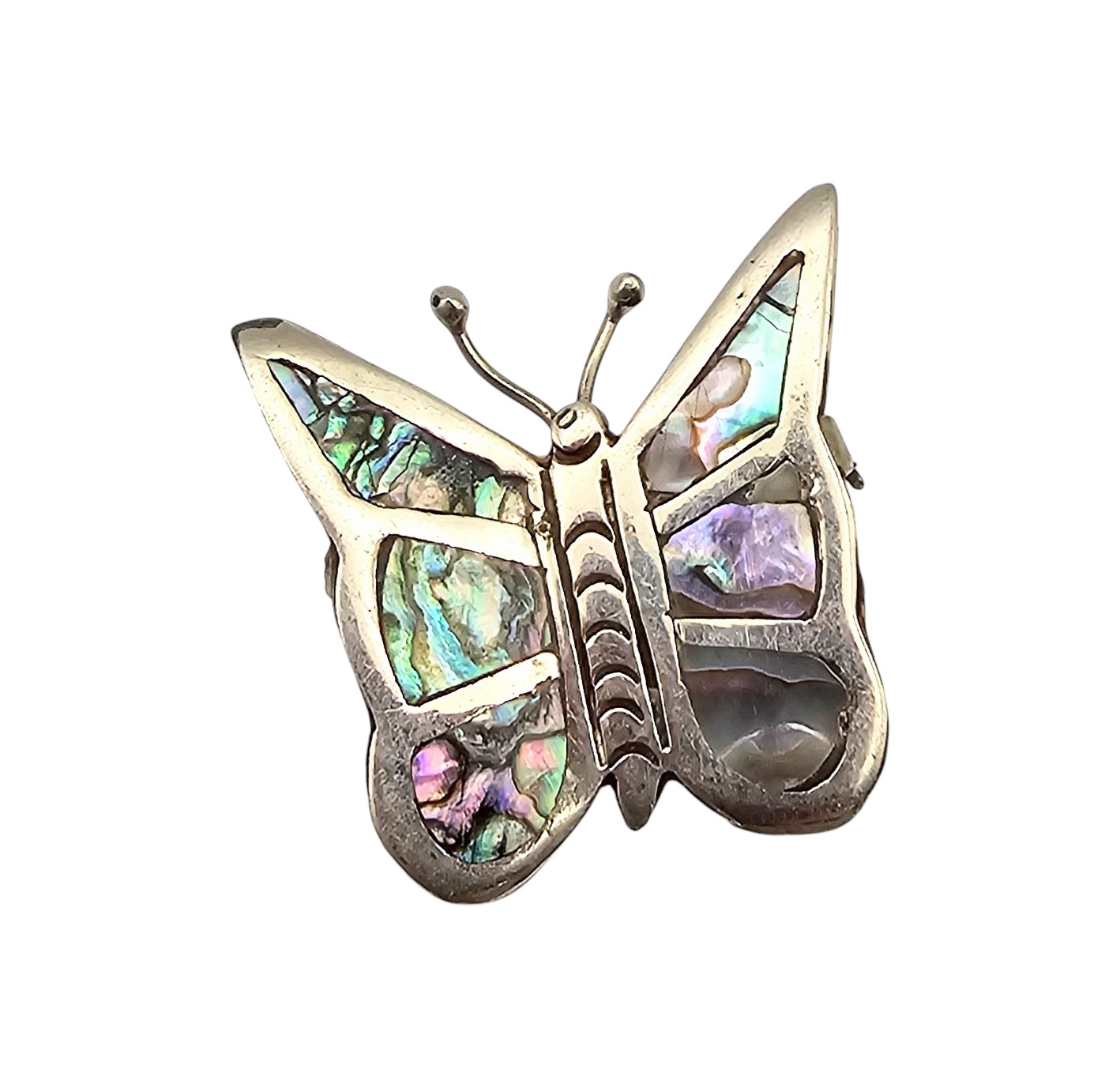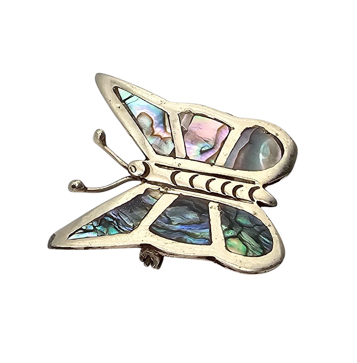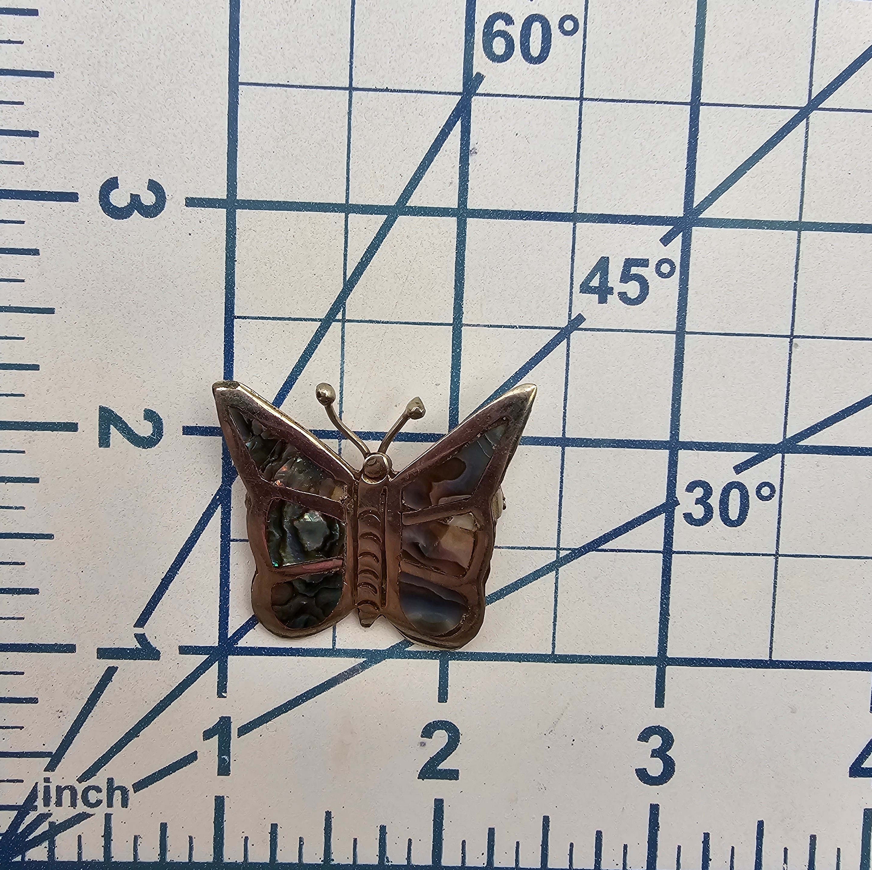 Mexico Abalone Sterling Silver Butterfly Brooch 5.1 G