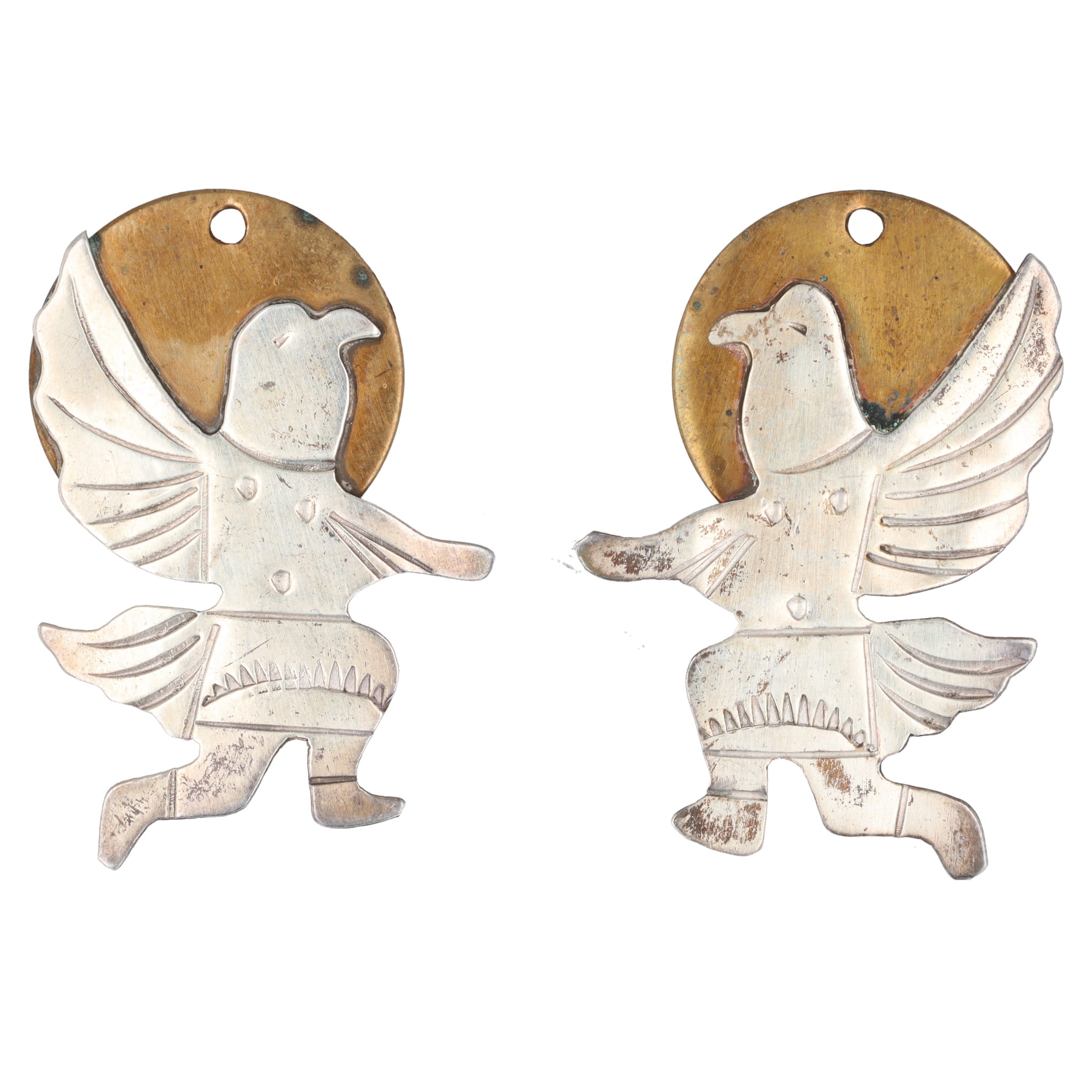 Vintage Hopi Kwahu Eagle Kachina Sterling Copper Earrings 5g