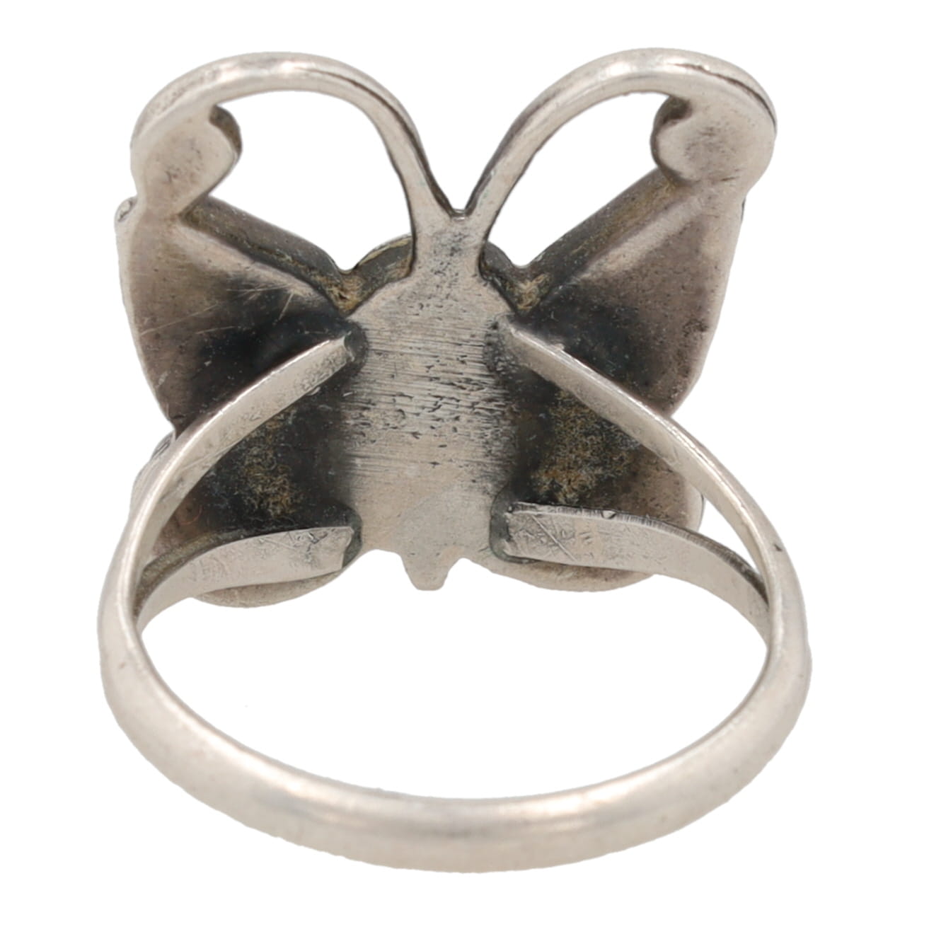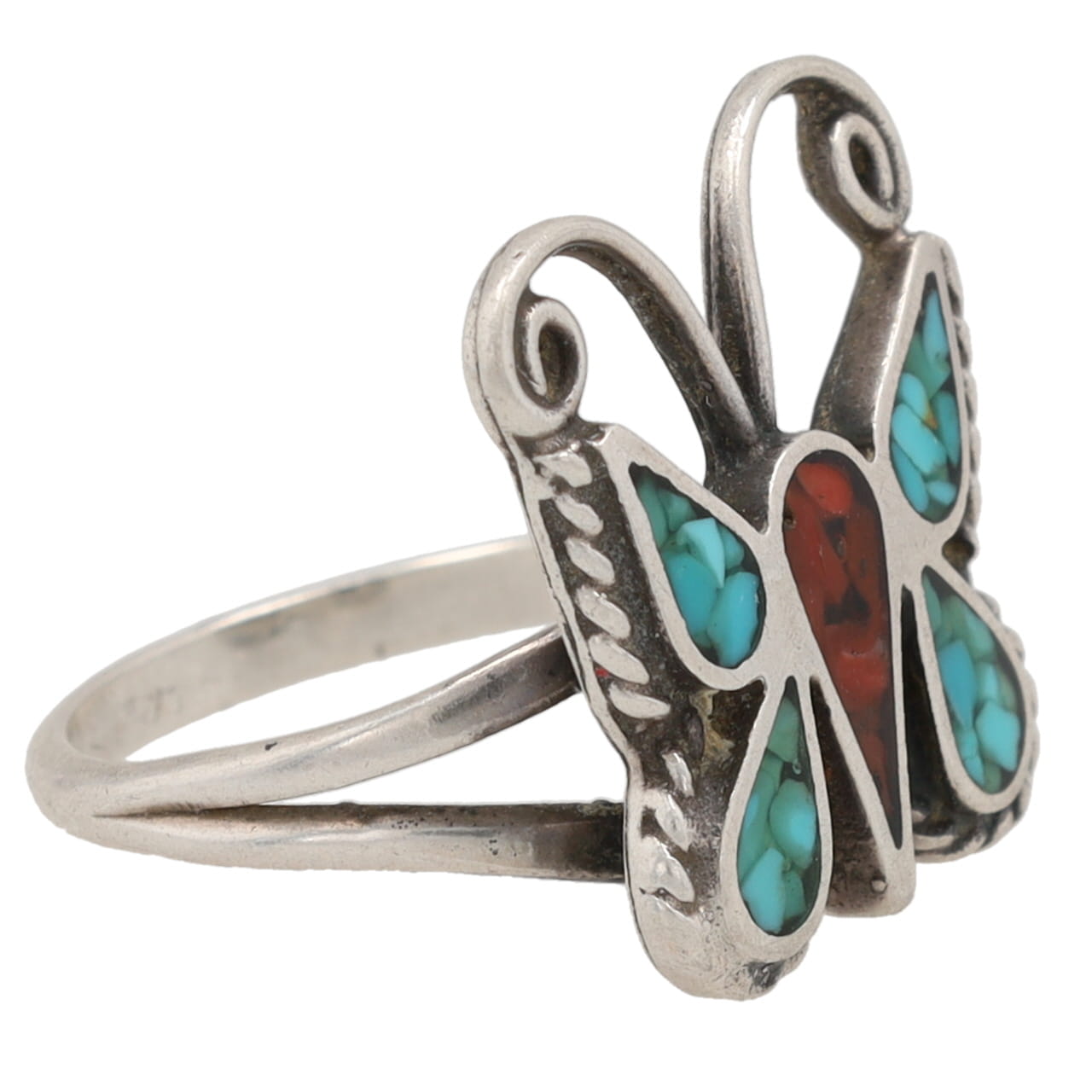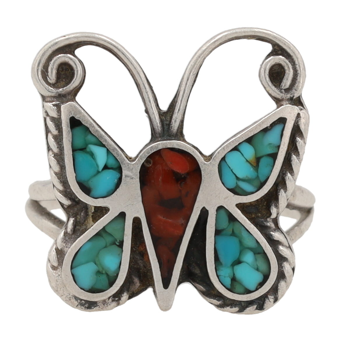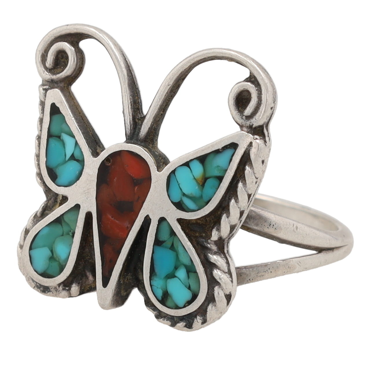 Vintage Navajo Crushed Coral Turquoise Sterling Butterfly Inlay Ring Sz. 5.25, 4g