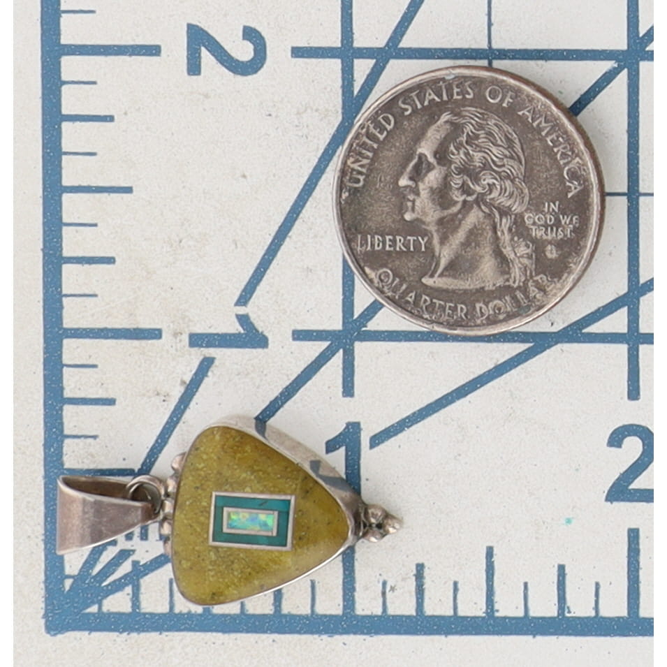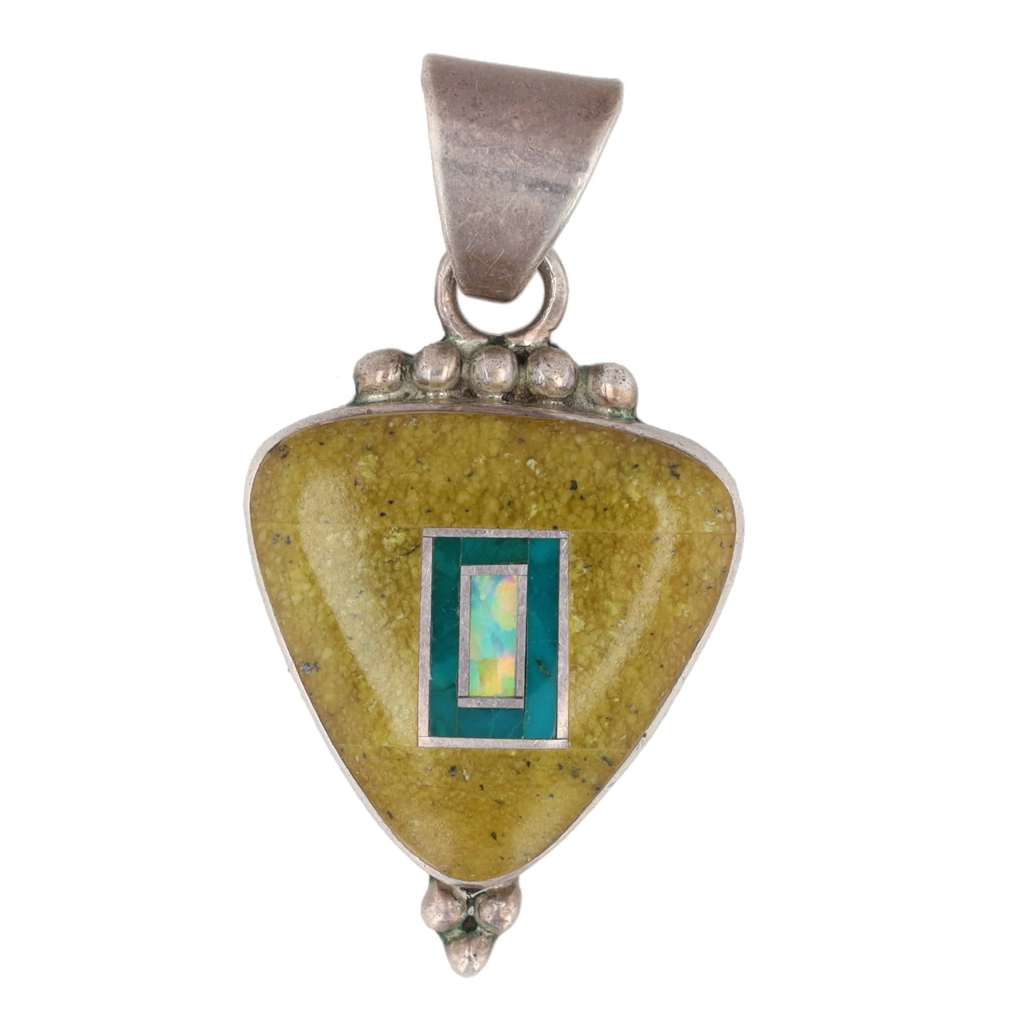 Signed IC Navajo Opal Turquoise Agate Sterling Inlay Pendant 3.5g