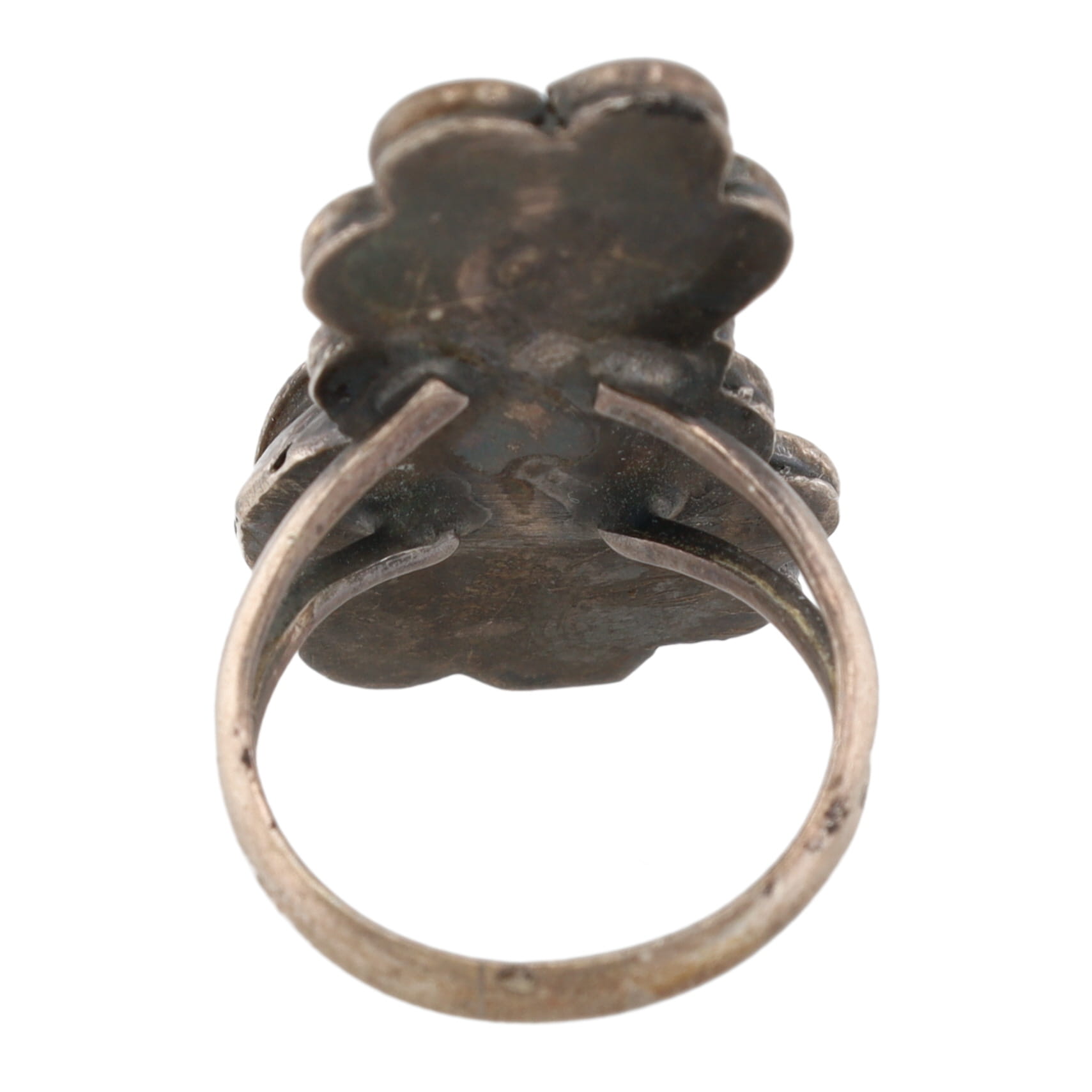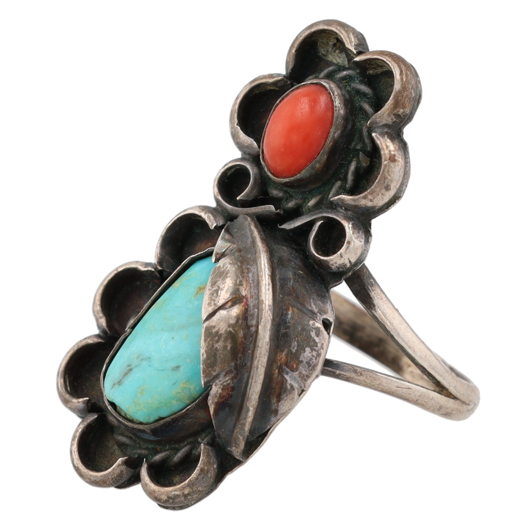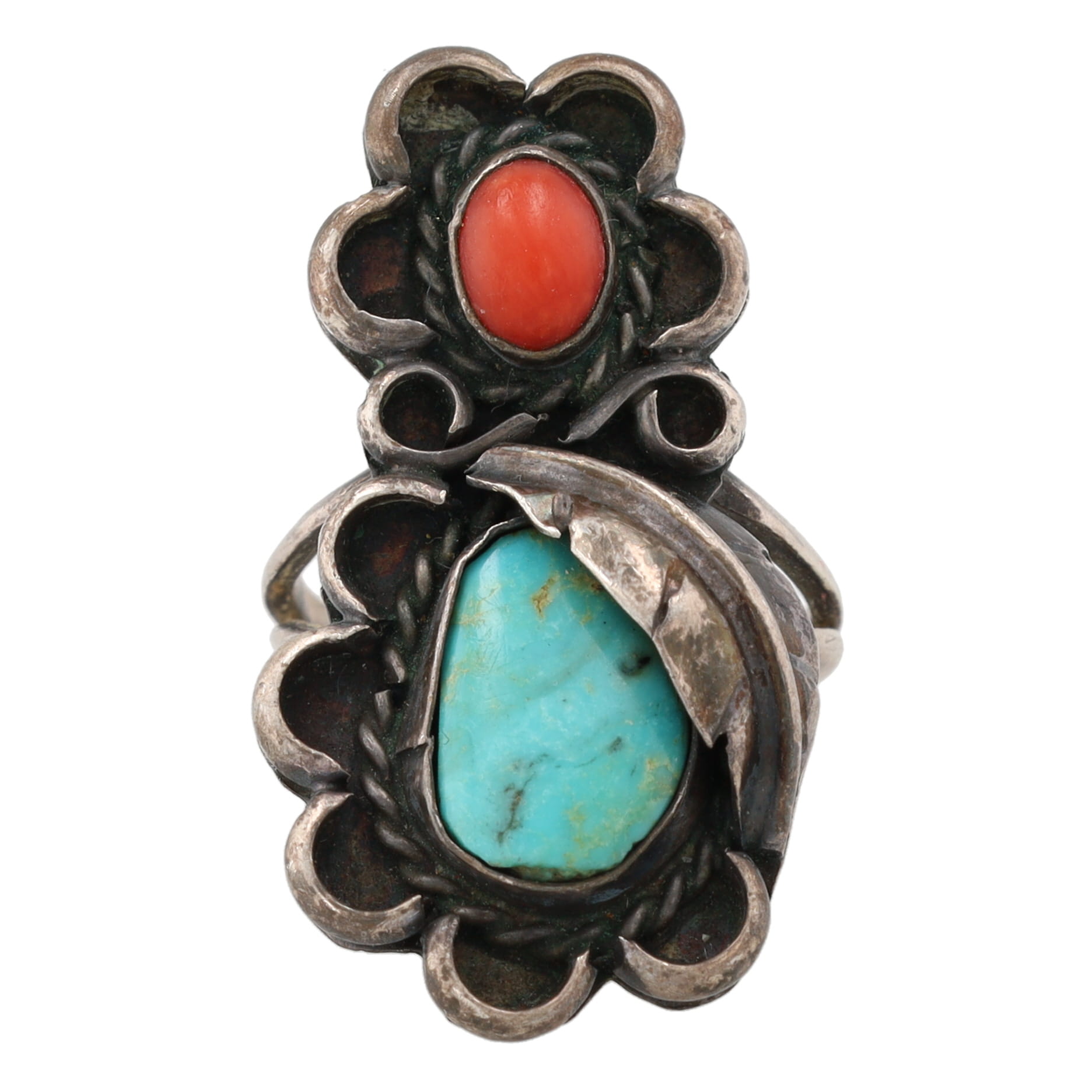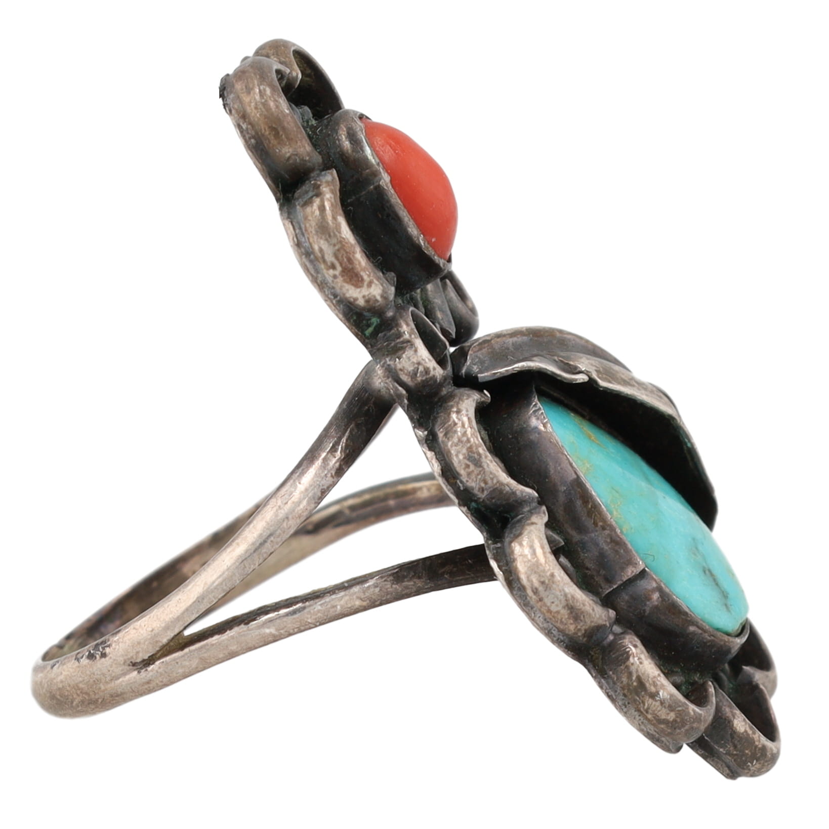 Vintage Navajo Turquoise Coral Sterling Ring Sz. 5.75, 6.5g