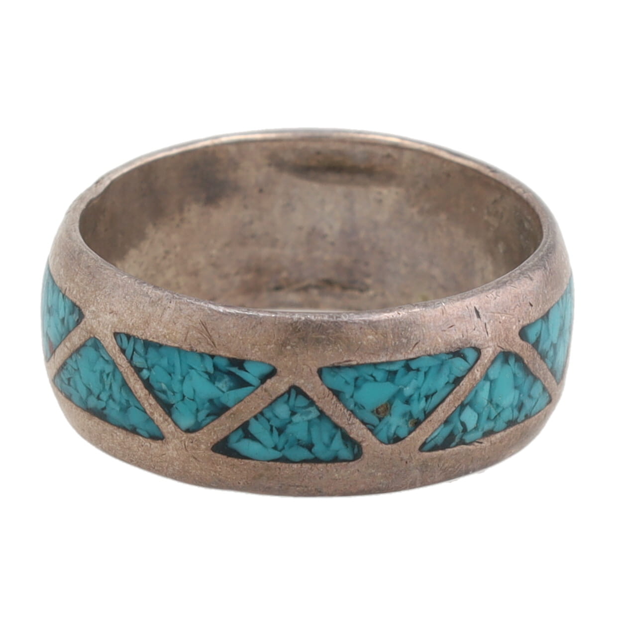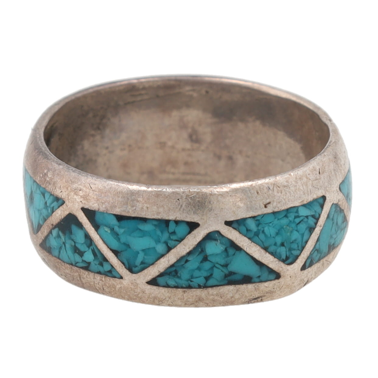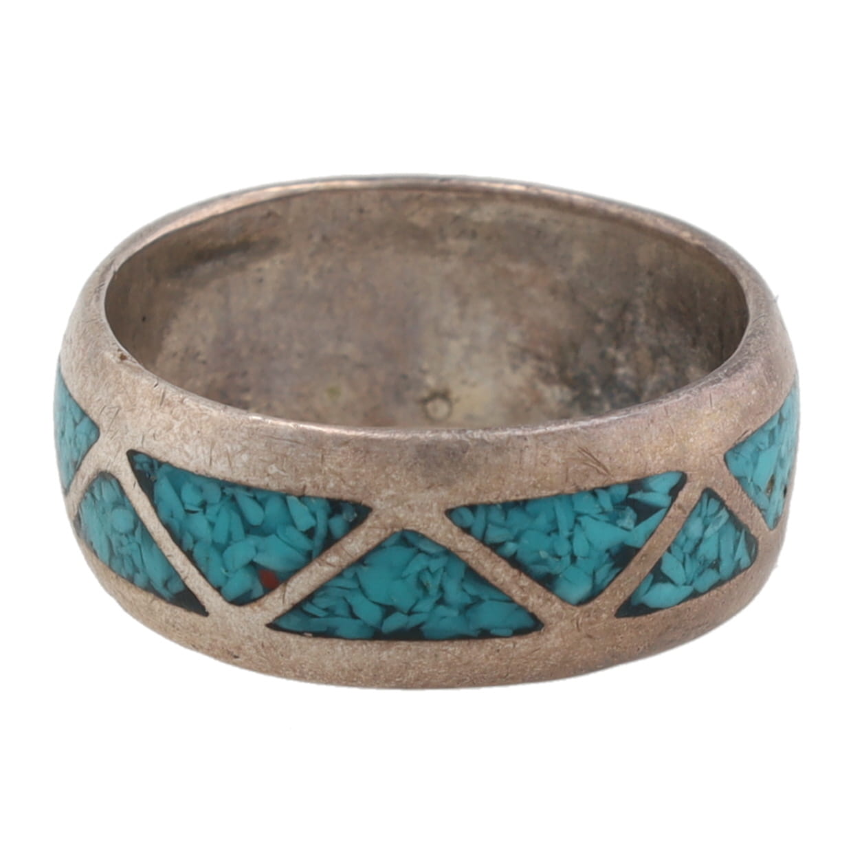 Vintage Navajo Crushed Turquoise Sterling Inlay Ring Sz. 6.25, 4g
