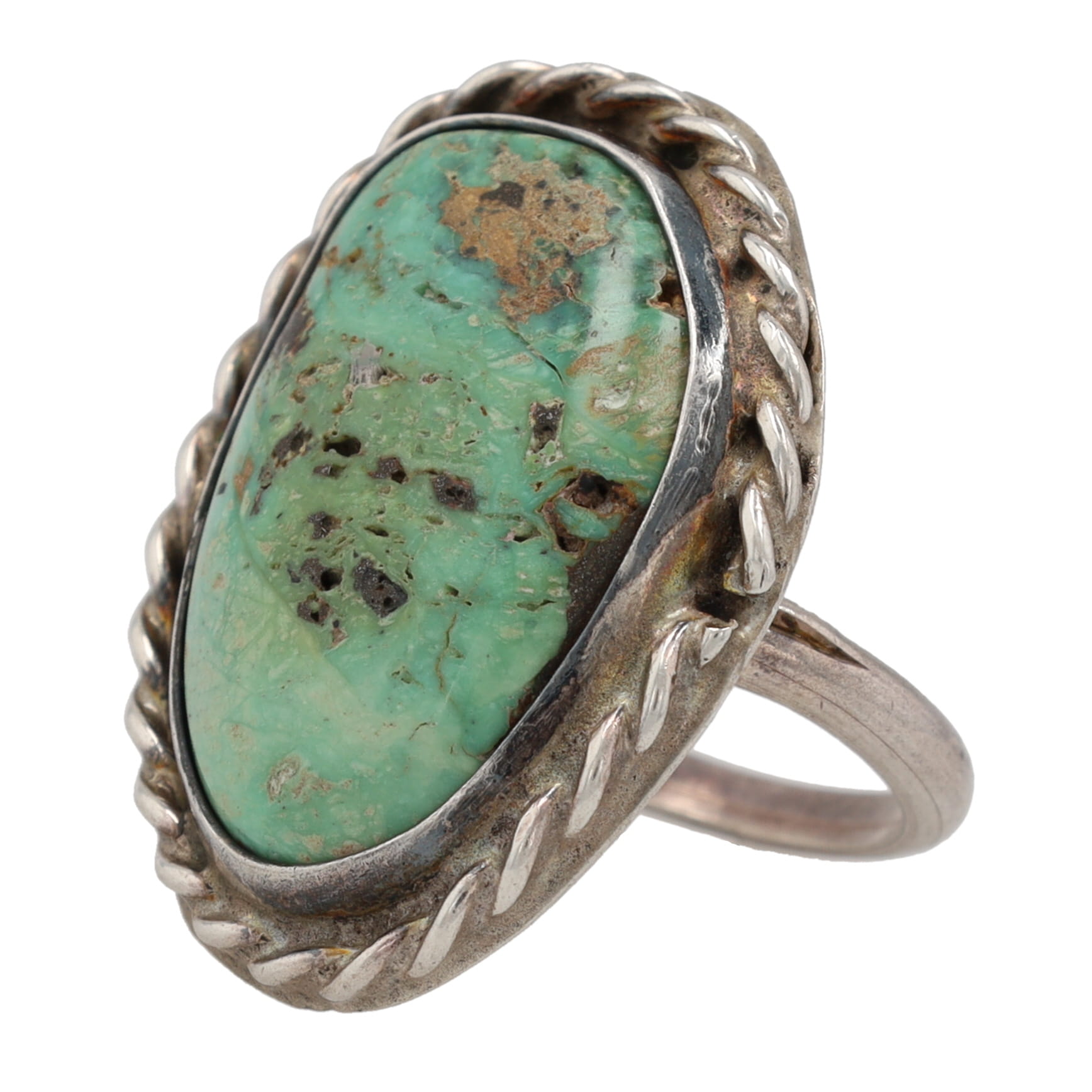 Vintage Navajo Turquoise Sterling Ring Sz. 6.75, 9.5g