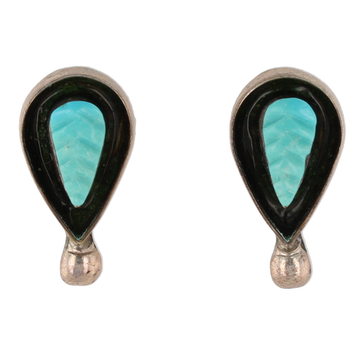 Vintage Navajo Carved Turquoise Sterling Earrings 1.5g