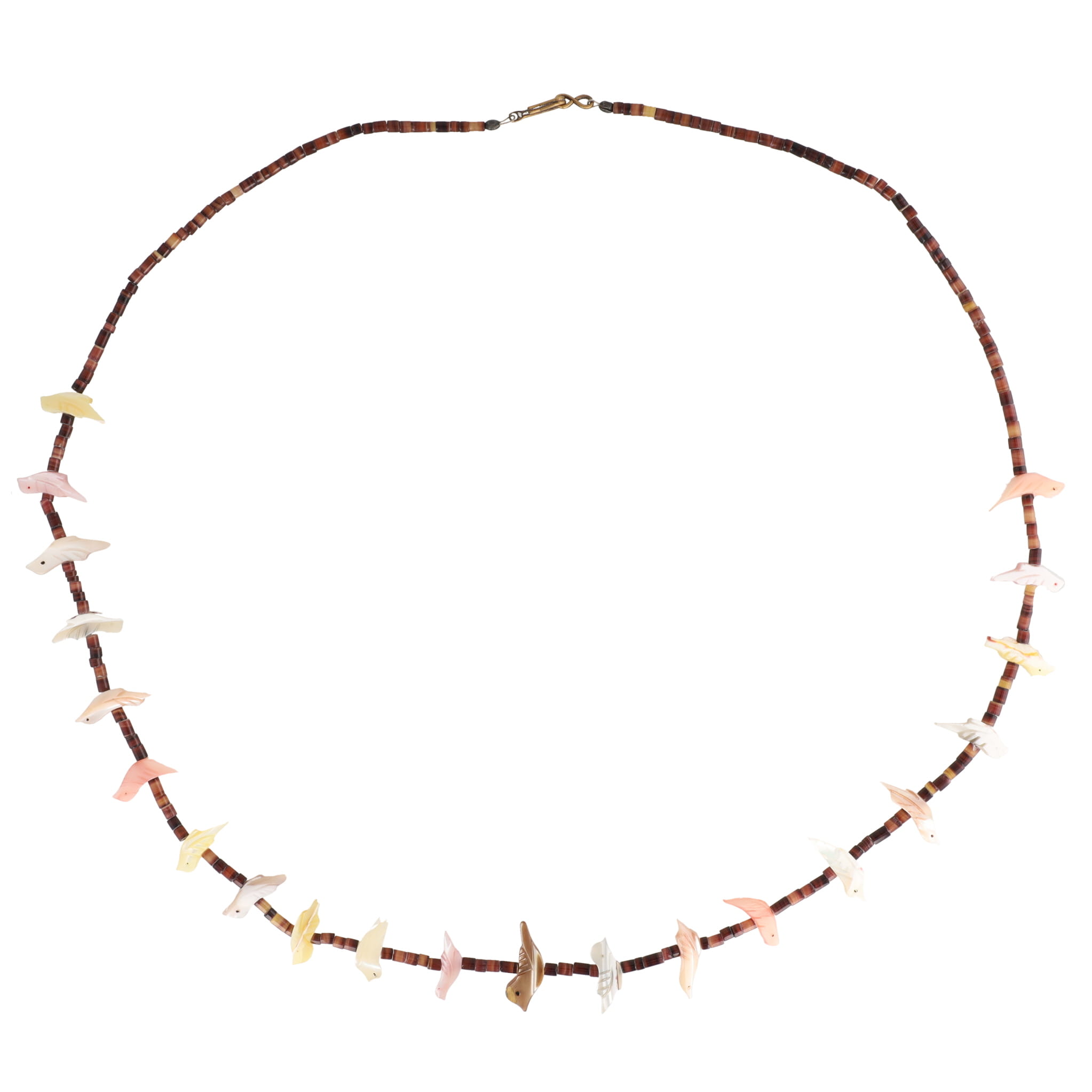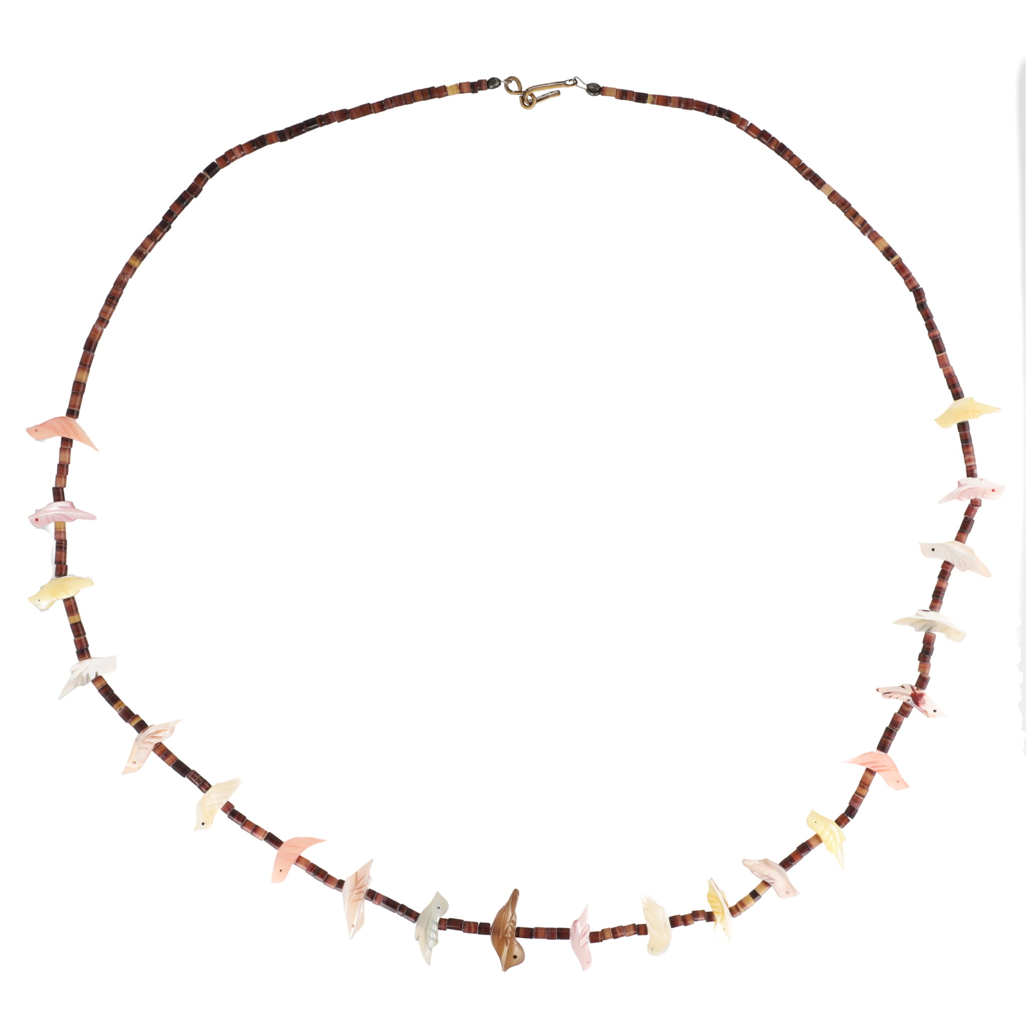 Southwestern Carved Bird Fetish Heishi Sterling Necklace 18g, 26 inches