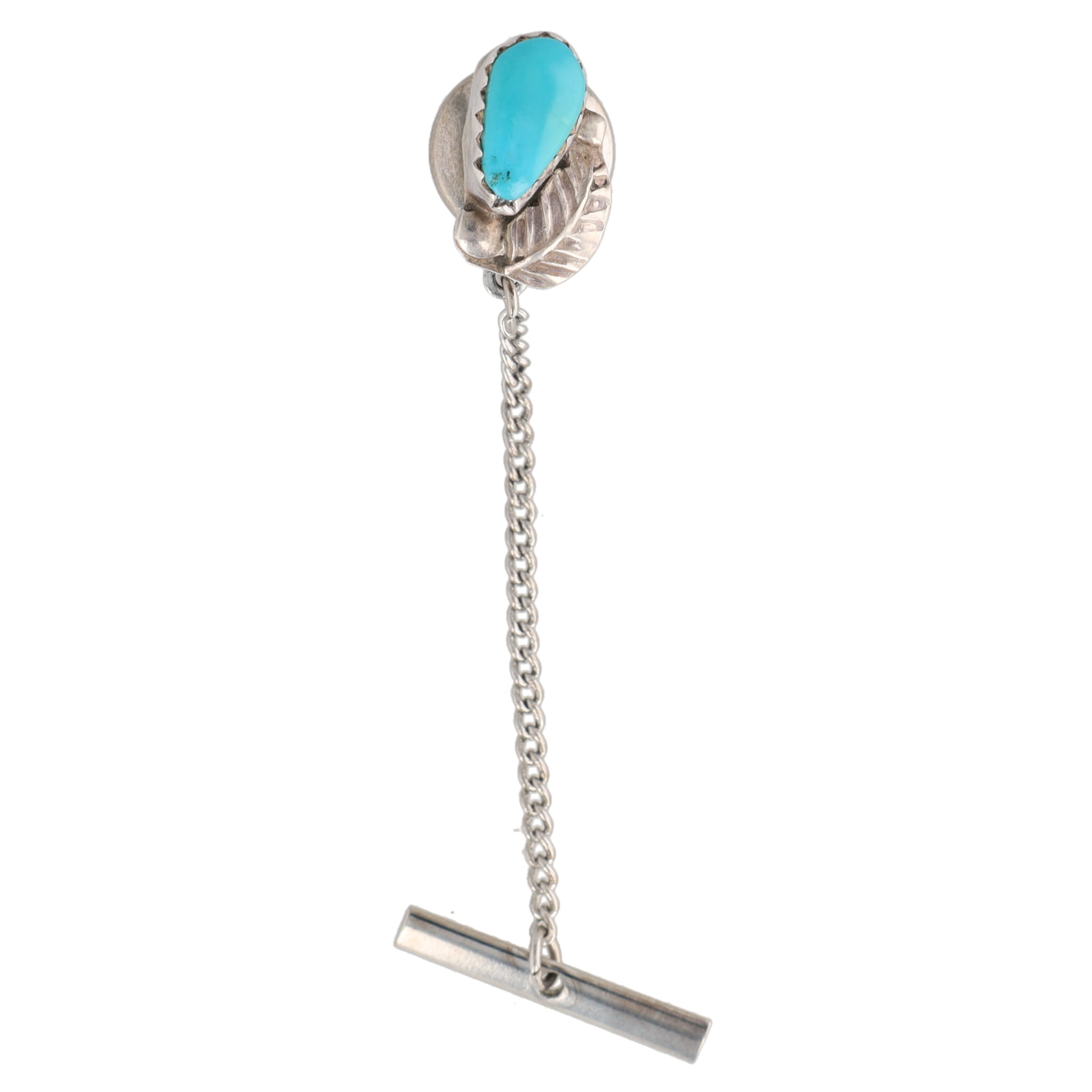 Vintage Navajo Turquoise Sterling Tie Tack 3g