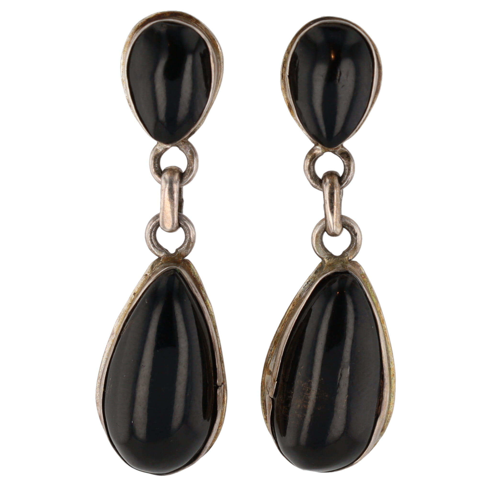 Vintage Navajo Sterling Onyx Dangle Earrings