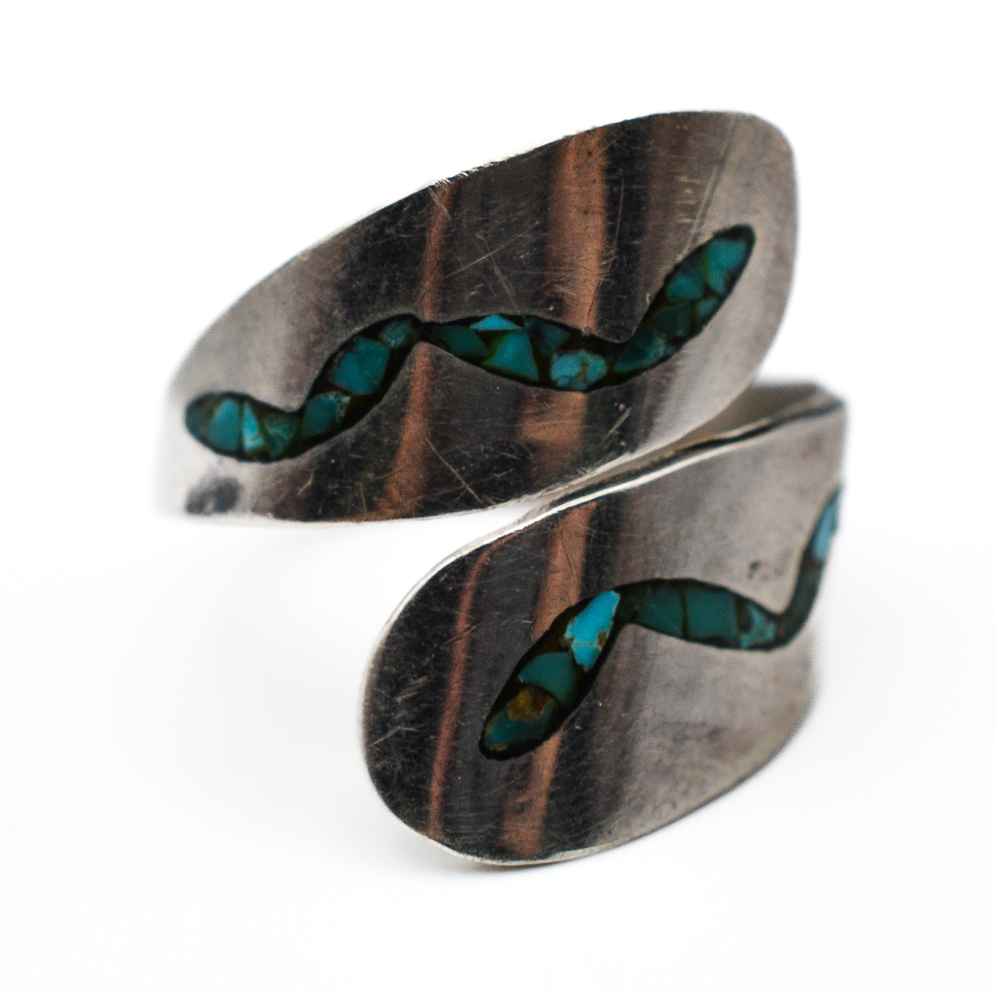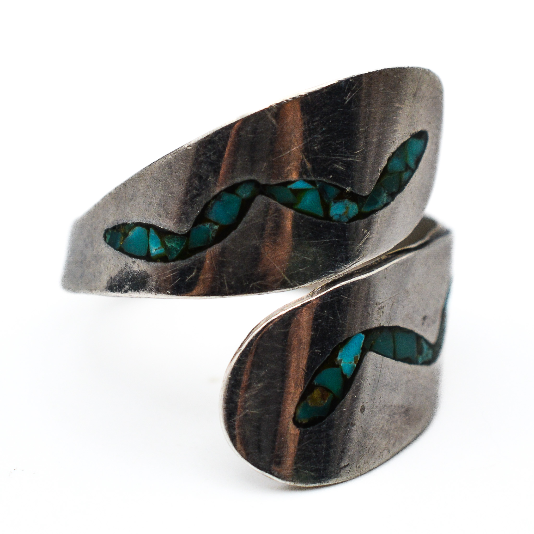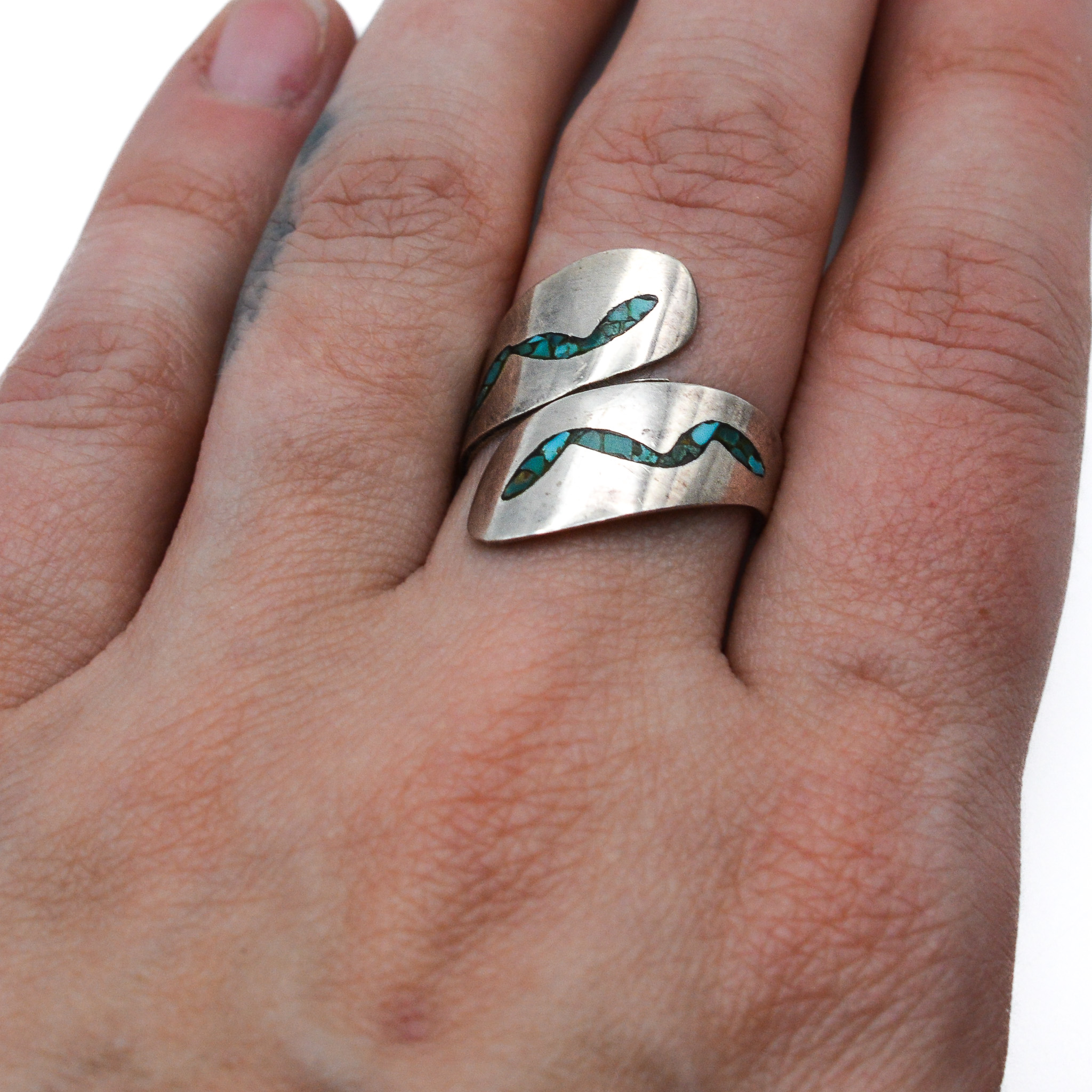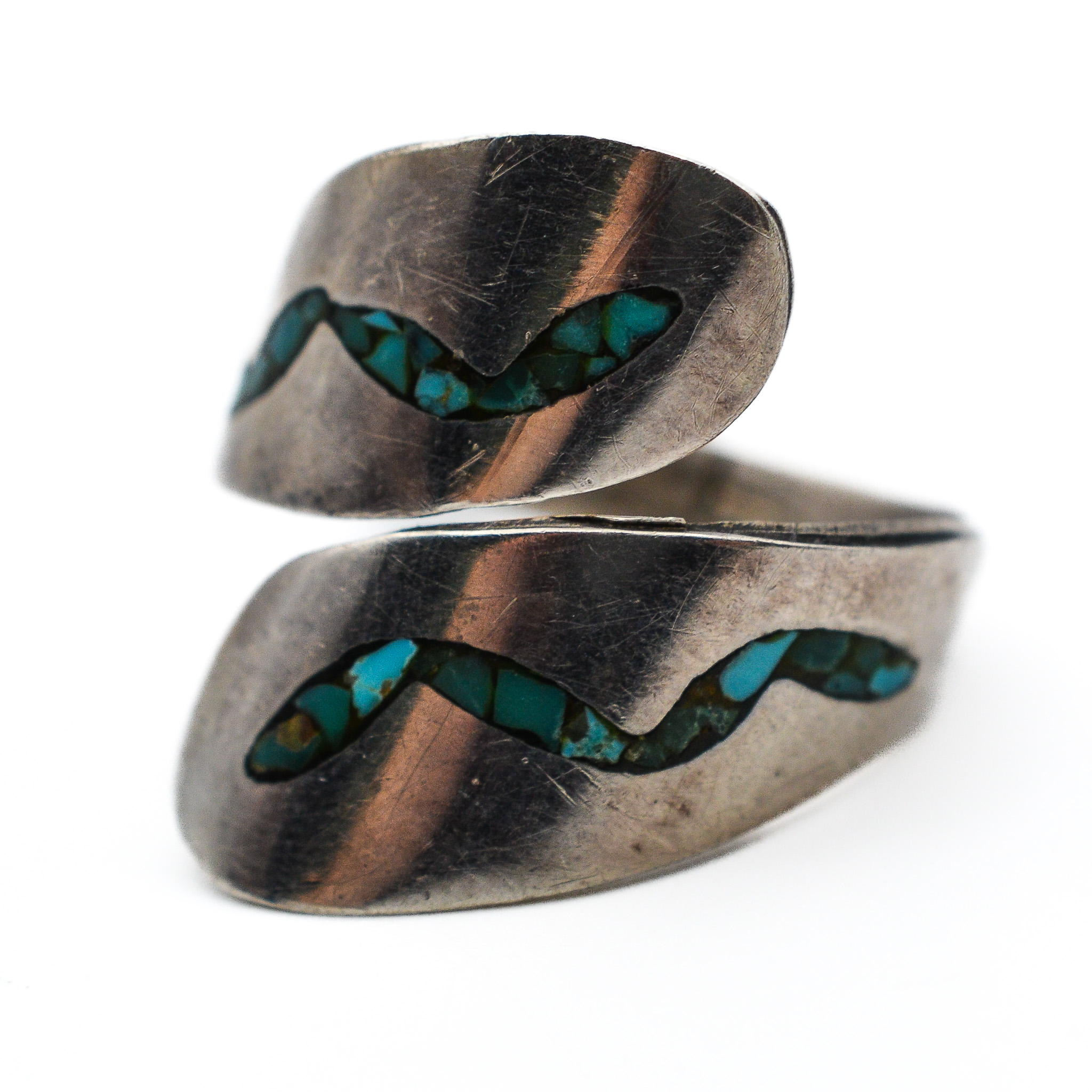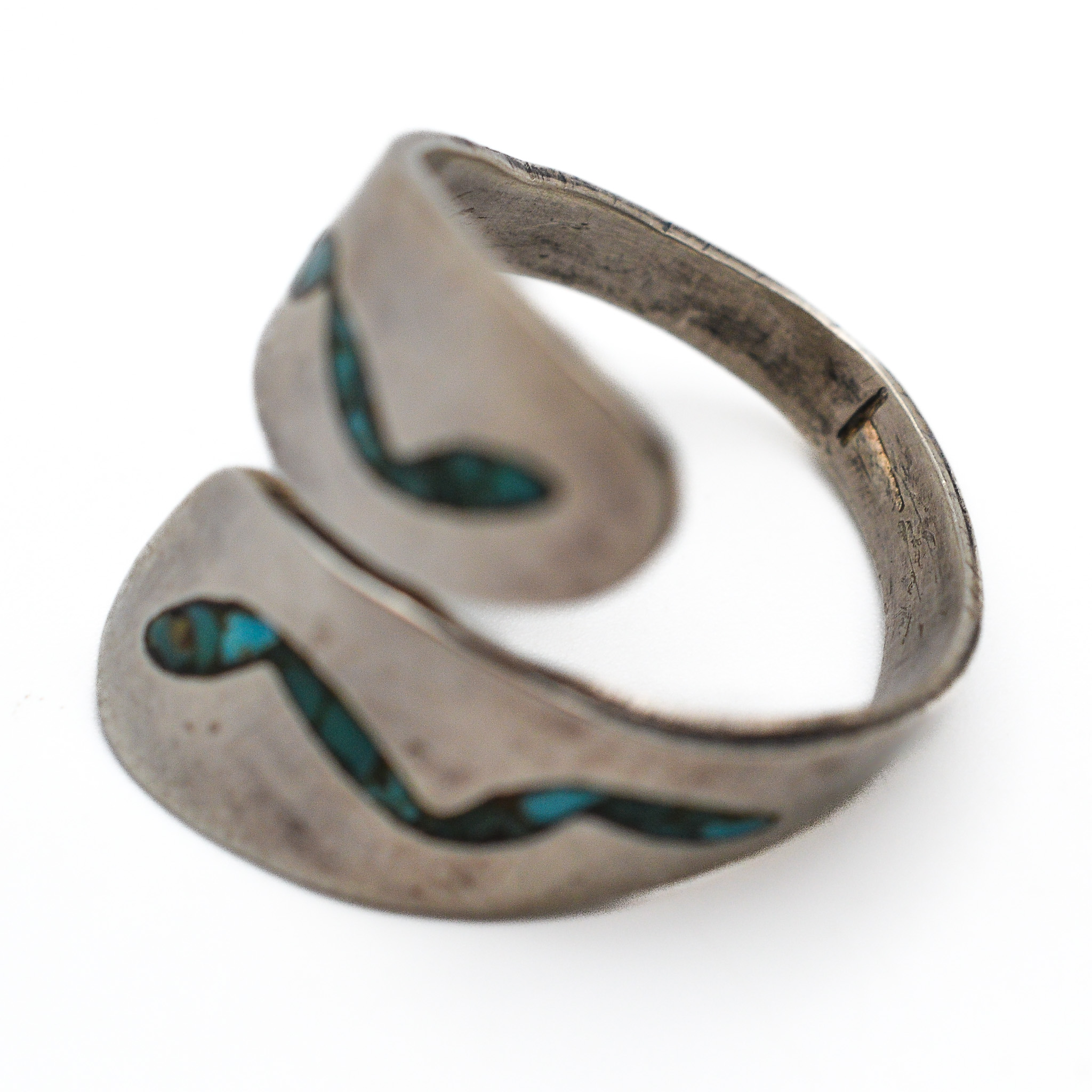 Signed T Navajo Crushed Turquoise Sterling Wrap Ring Sz. 7, 4.5g