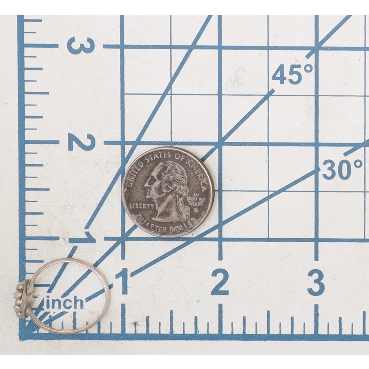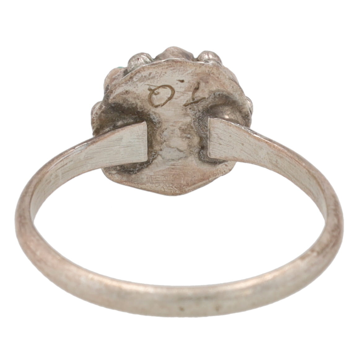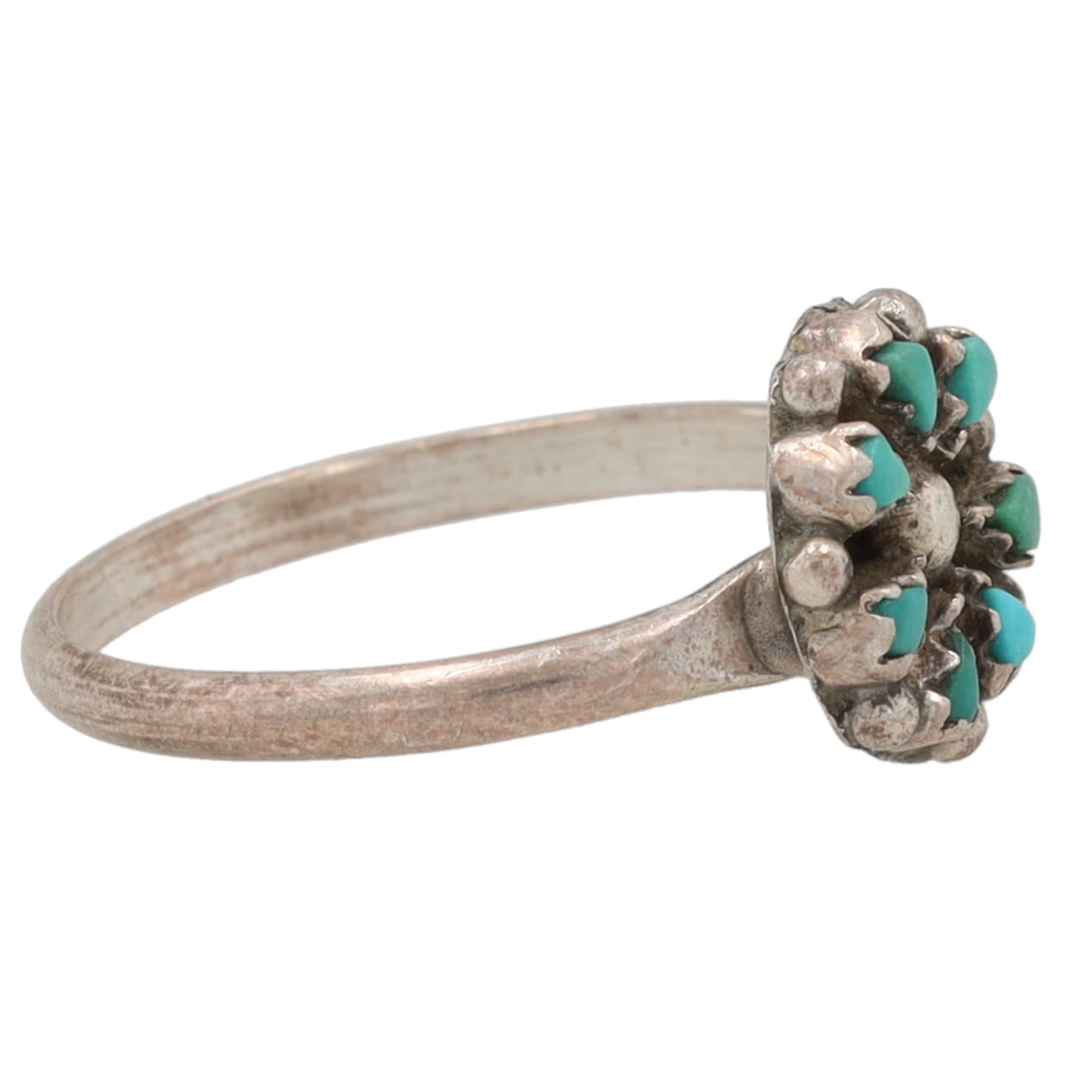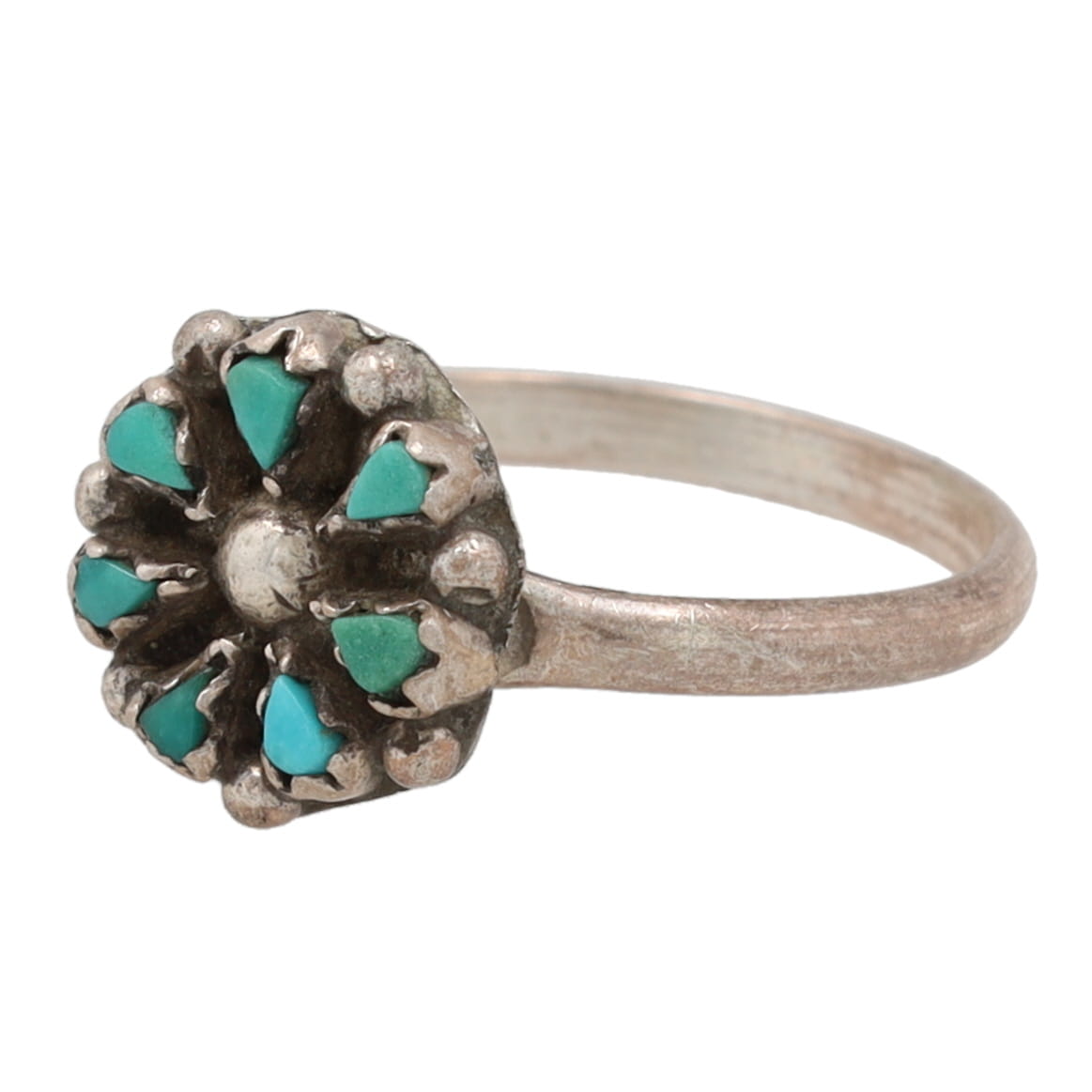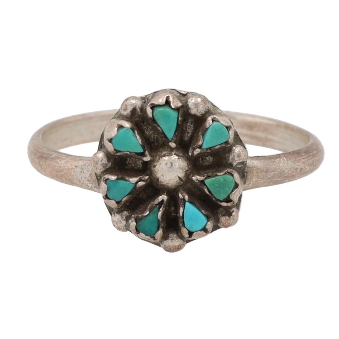 Signed TQ Zuni Sterling Turquoise Petit Point Ring Sz. 7