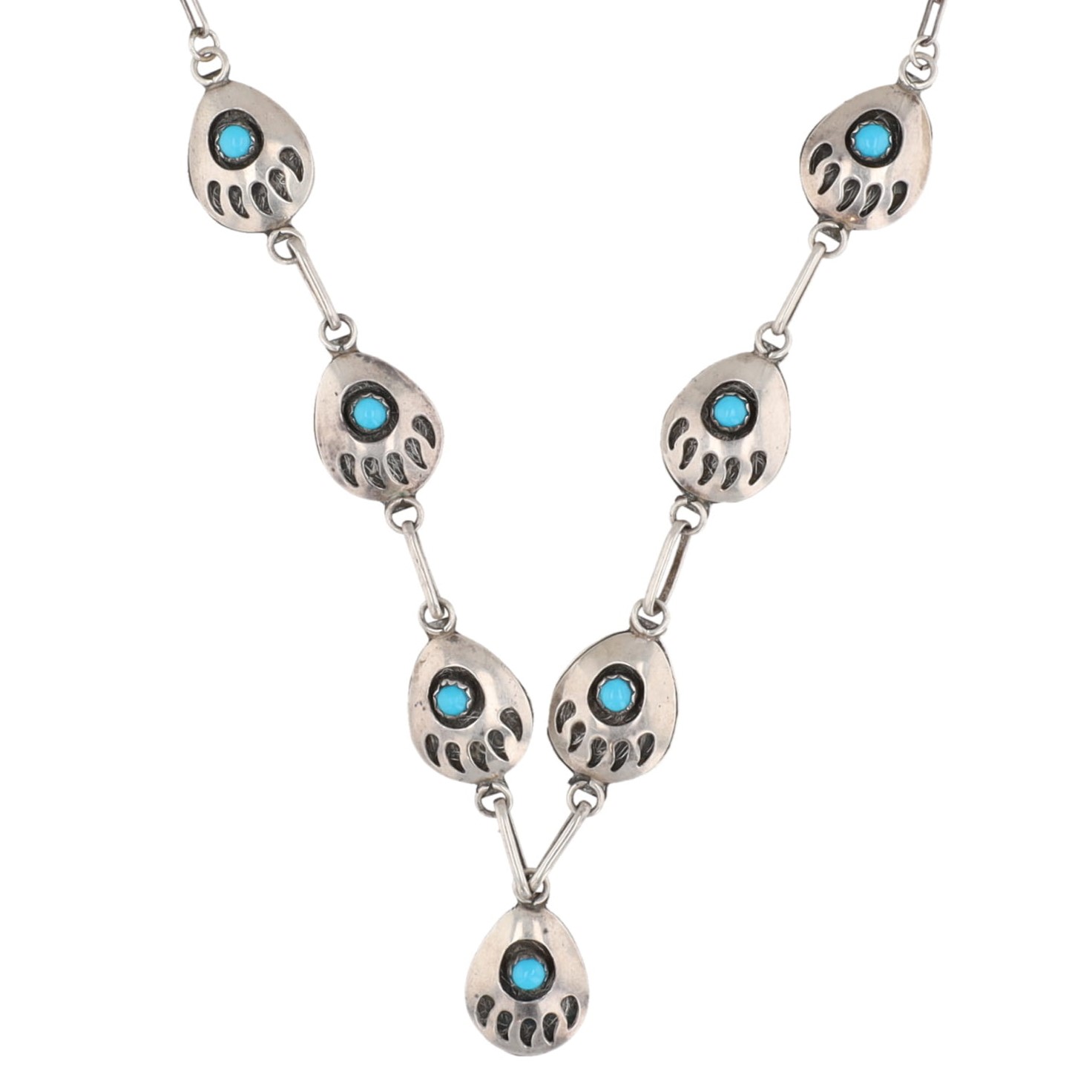 Signed Navajo Sterling Turquoise Bear Paw Necklace
