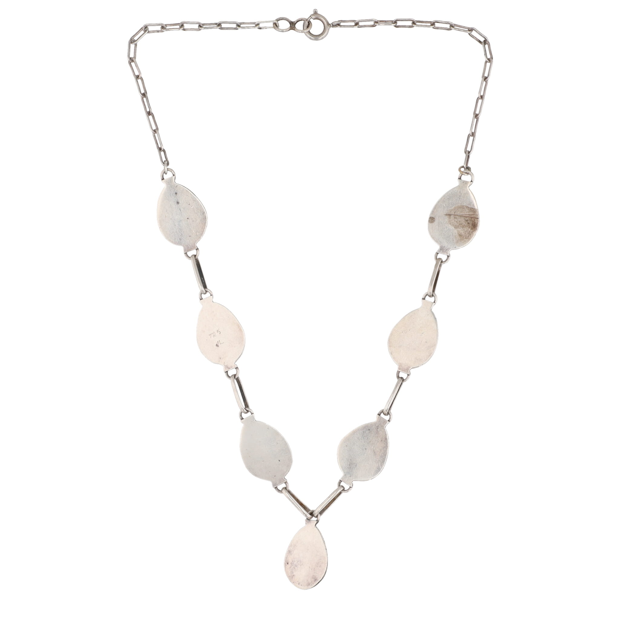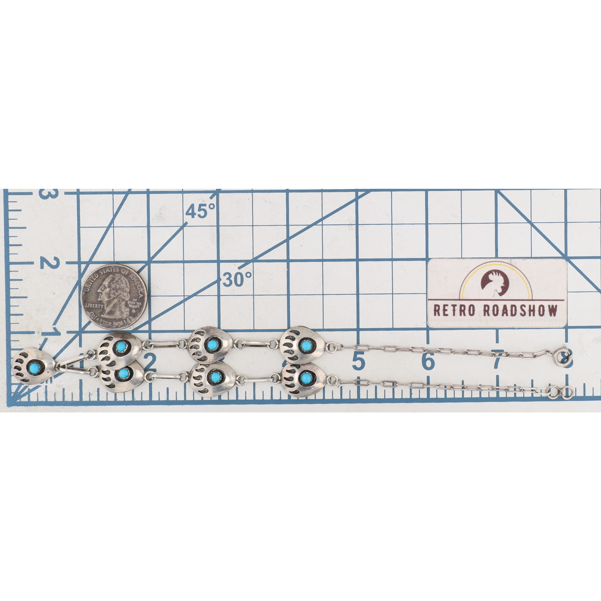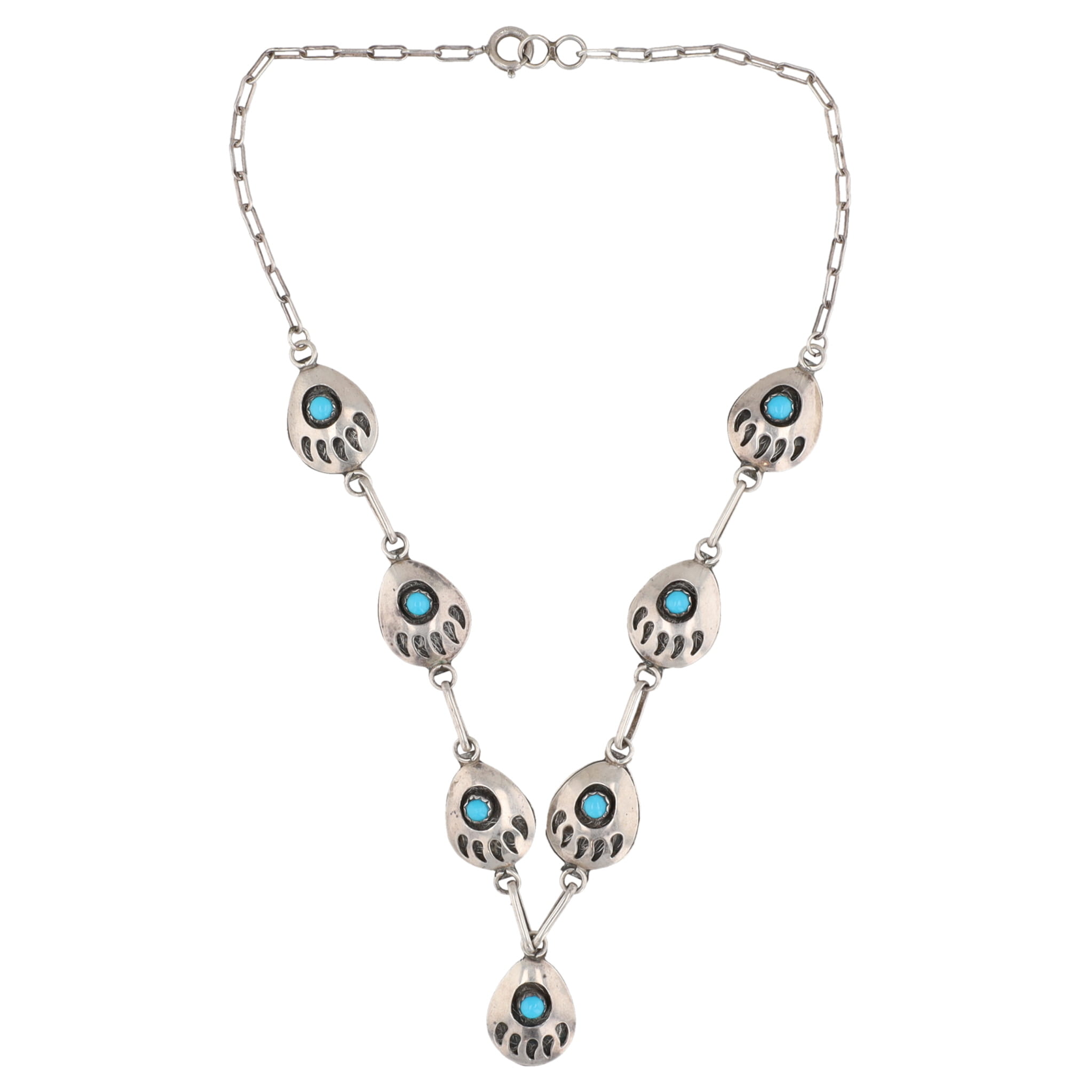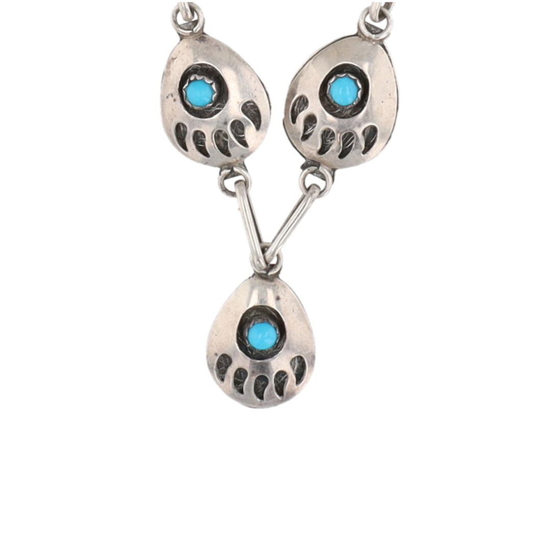 Vintage Navajo Turquoise Sterling Bear Paw Shadow Box Necklace 13g