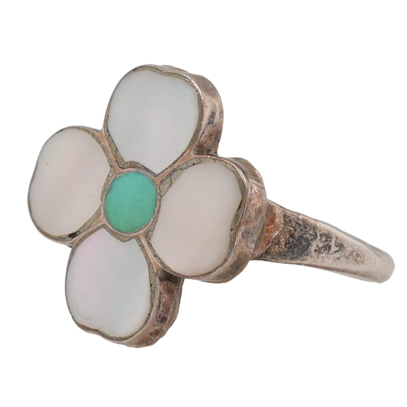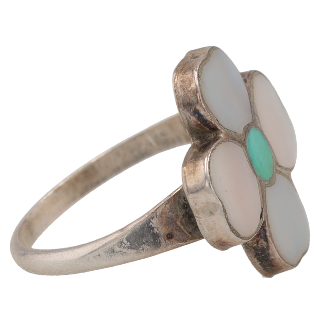 Vintage Navajo Mother of Pearl Turquoise Sterling Flower Ring Sz. 7.25, 2.5g