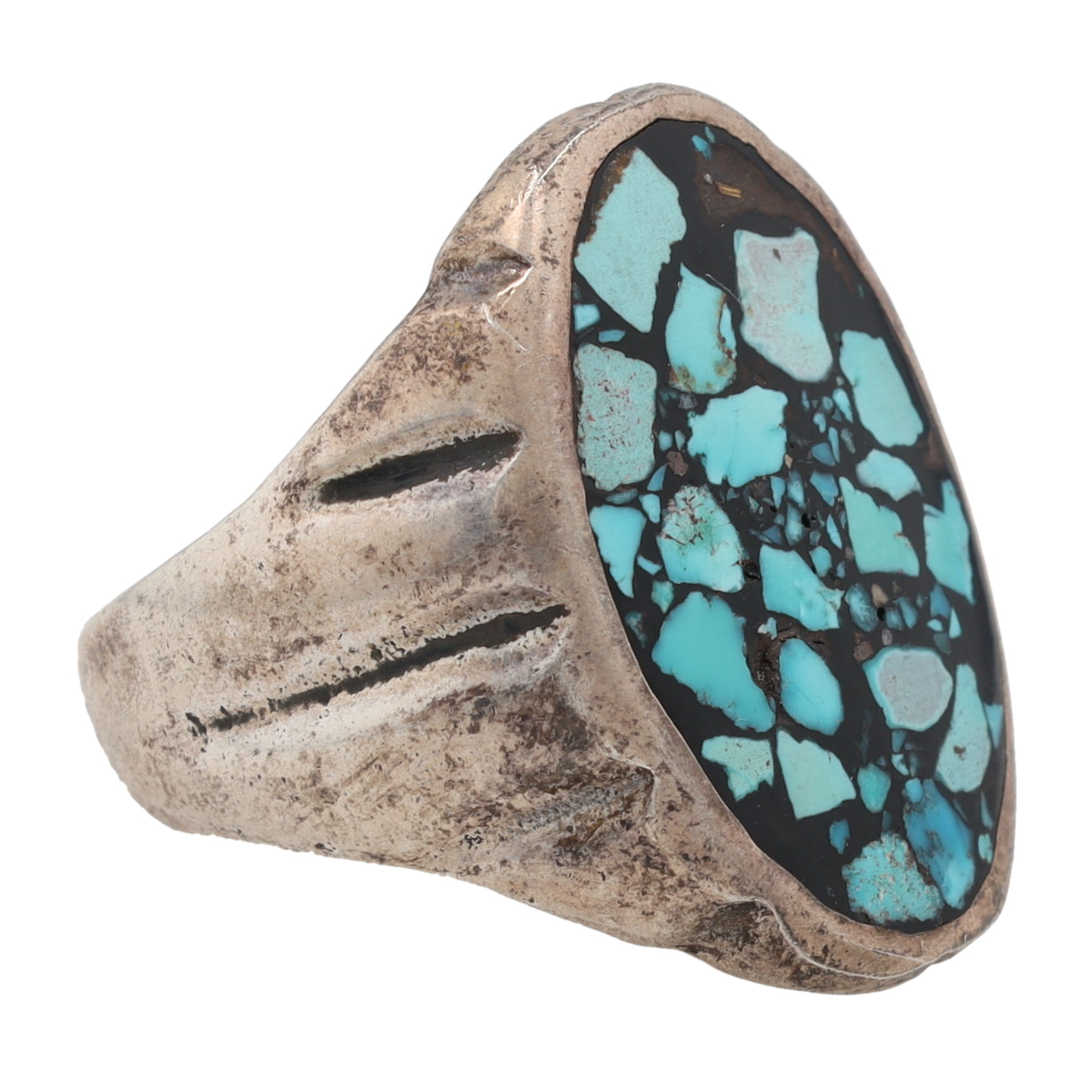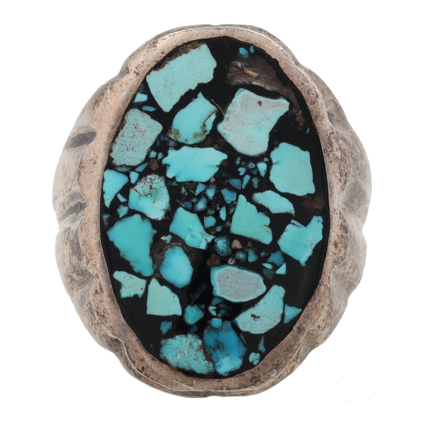 Vintage Navajo Crushed Turquoise Inlay Sterling Sz. 10.75, 14.5g
