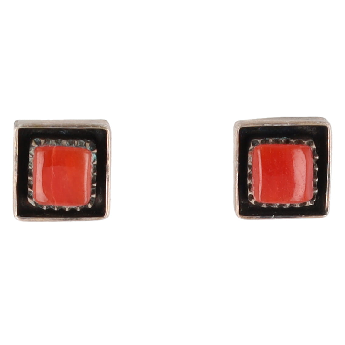 Vintage Navajo Coral Sterling Stud Earrings 1g