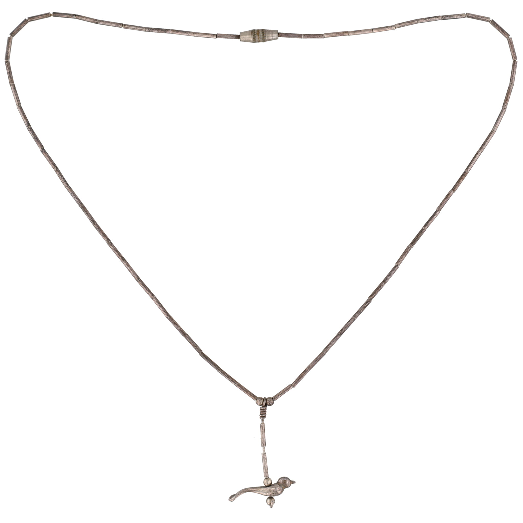 Vintage Southwestern Liquid Sterling Silver Bird Fetish Necklace 4.5g