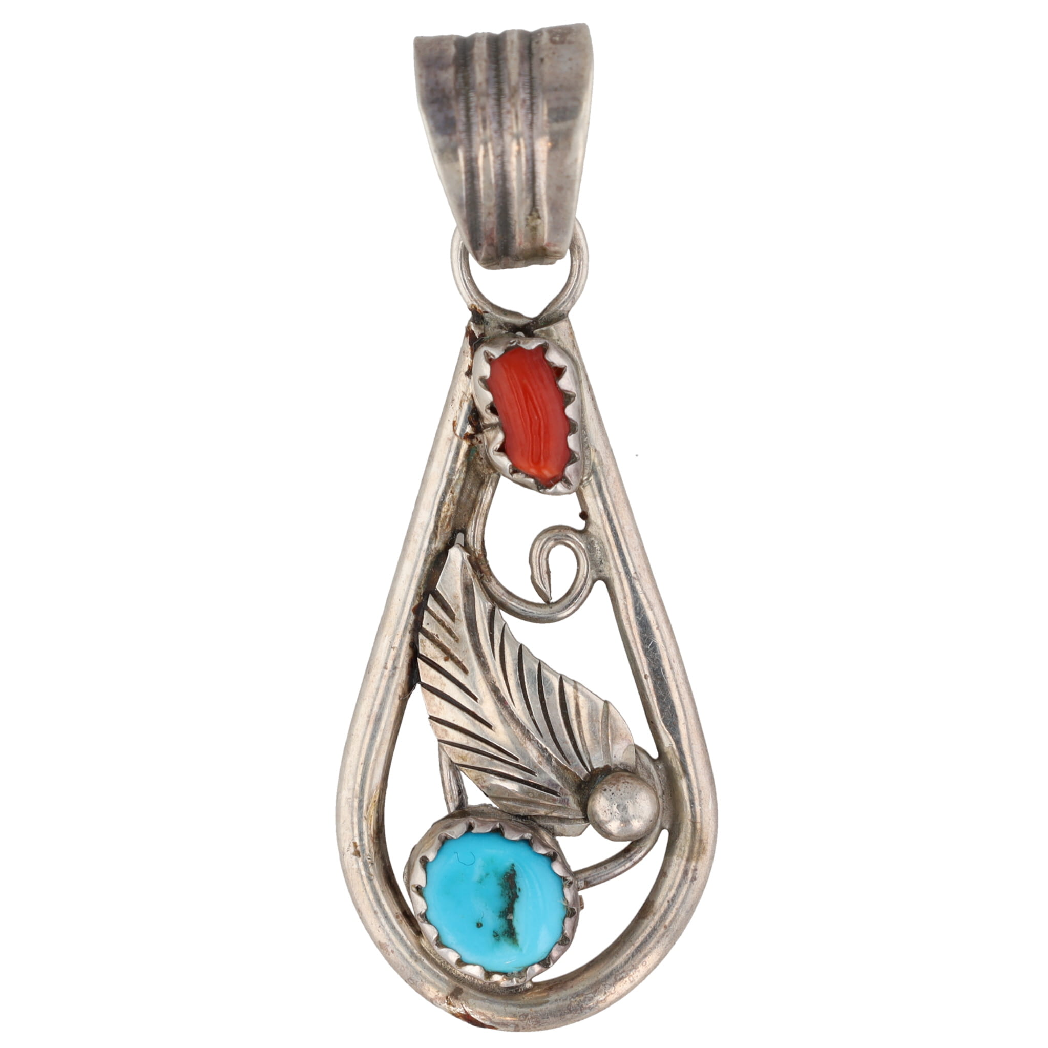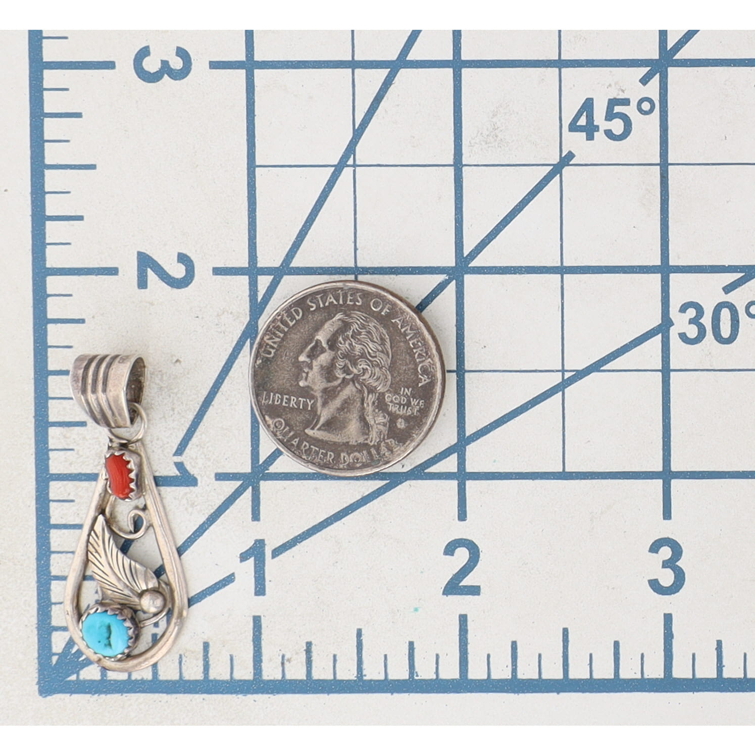 Navajo Coral Turquoise Sterling Leaf Pendant 3g
