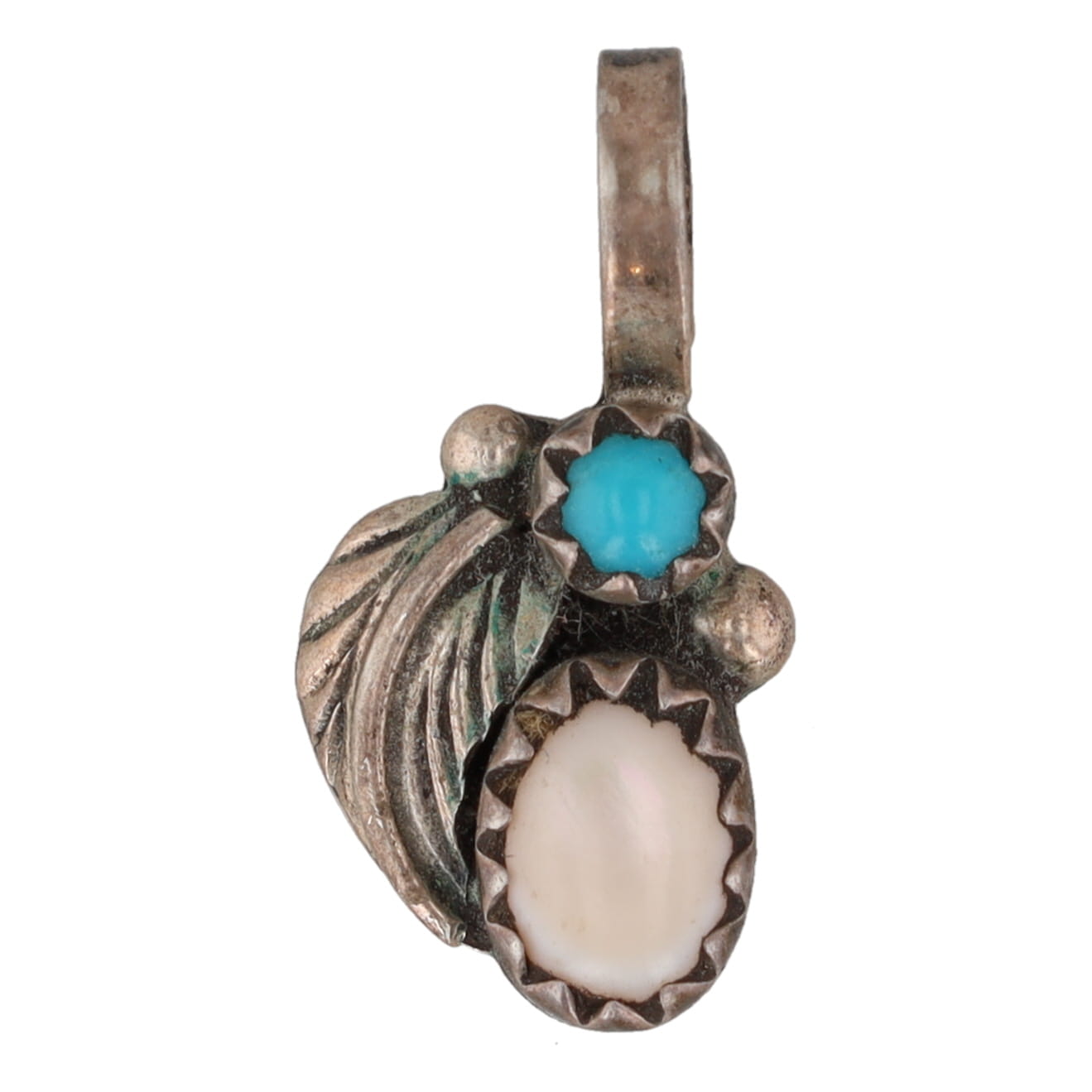 Vintage Navajo Snake Eye Turquoise Mother of Pearl Sterling Pendant 1g