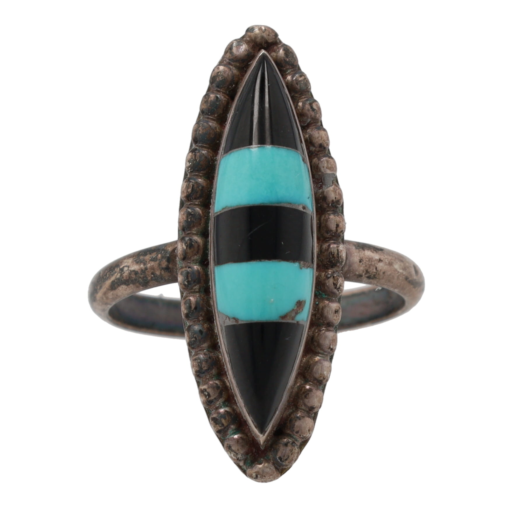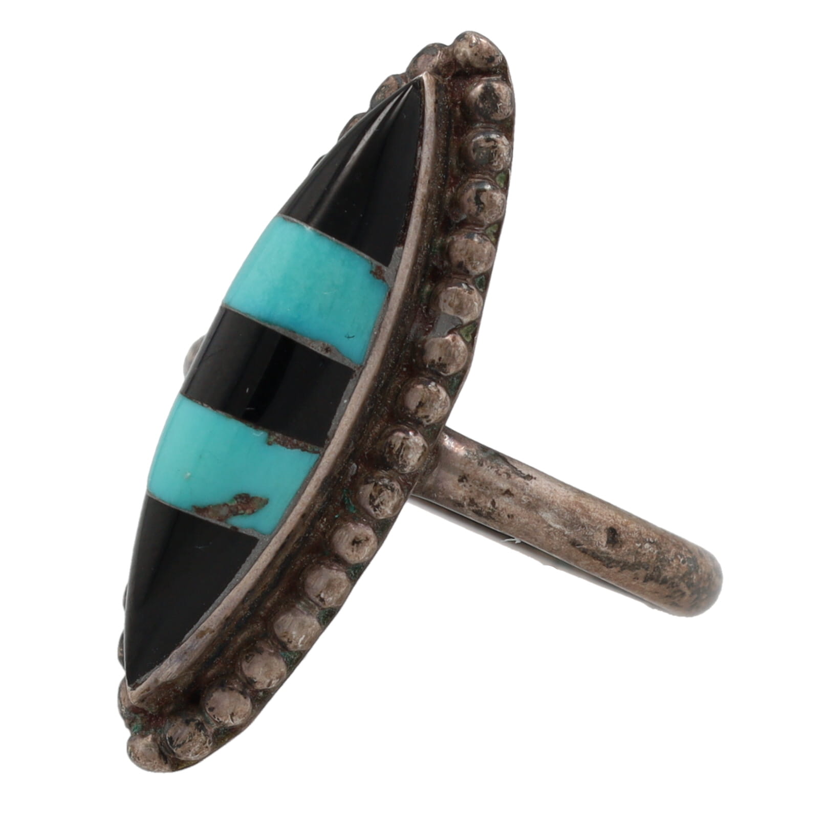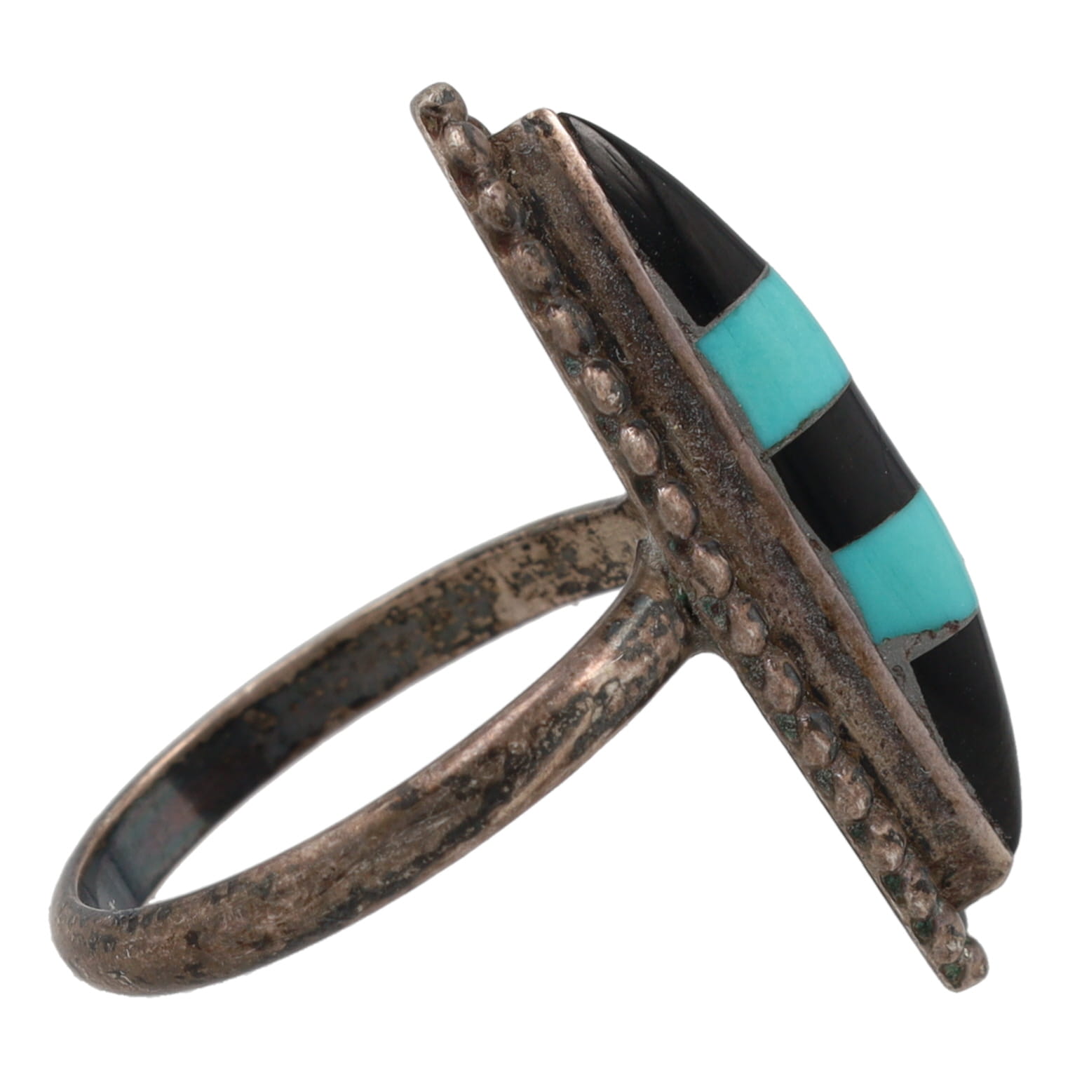 Vintage Navajo Turquoise Onyx Sterling Ring Sz. 7.25, 4g