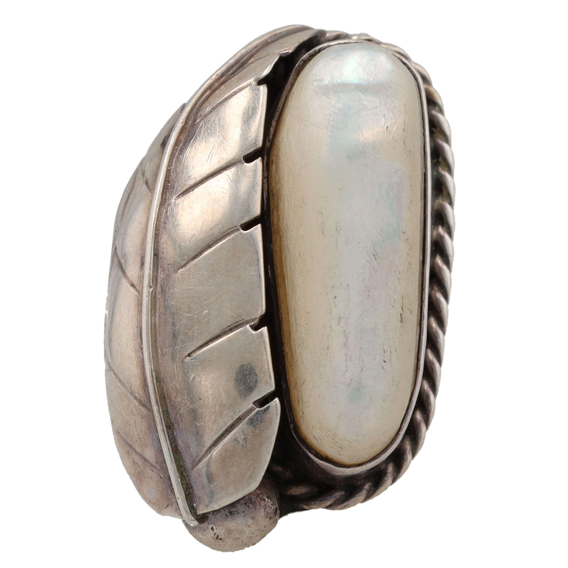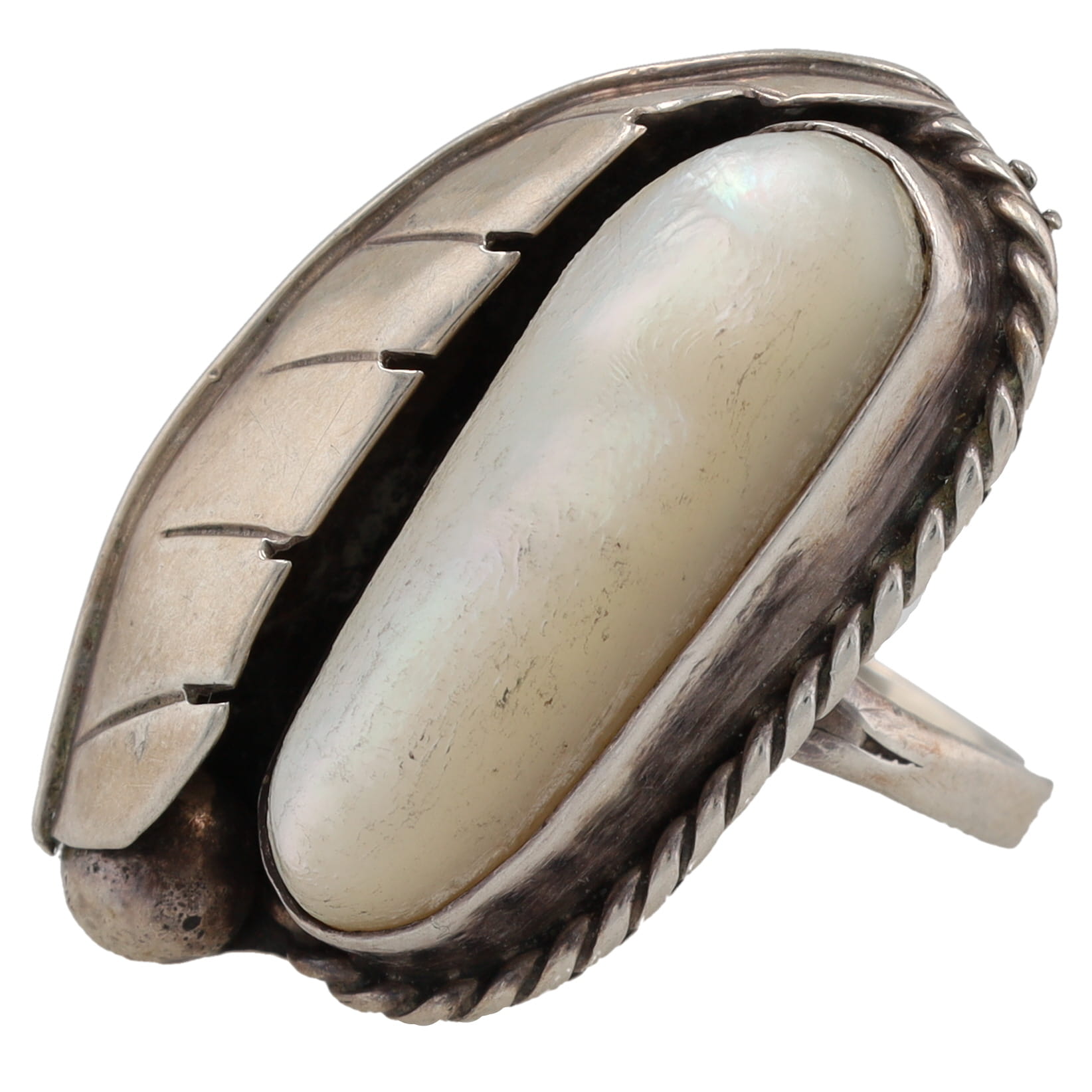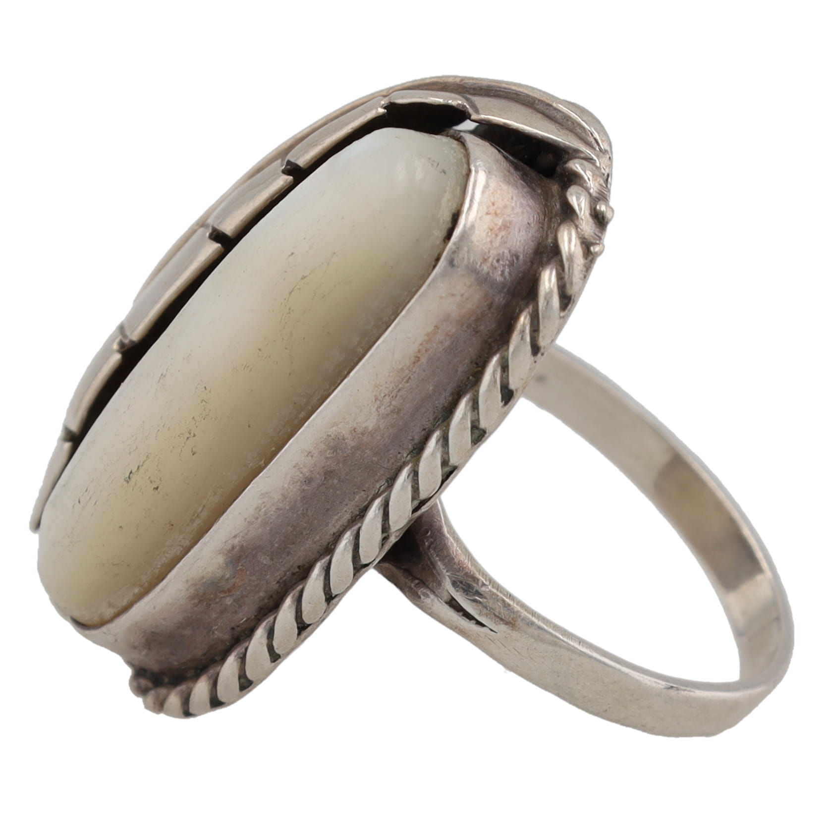 Vintage Navajo Mother of Pearl Sterling Ring Sz. 7.5, 10g
