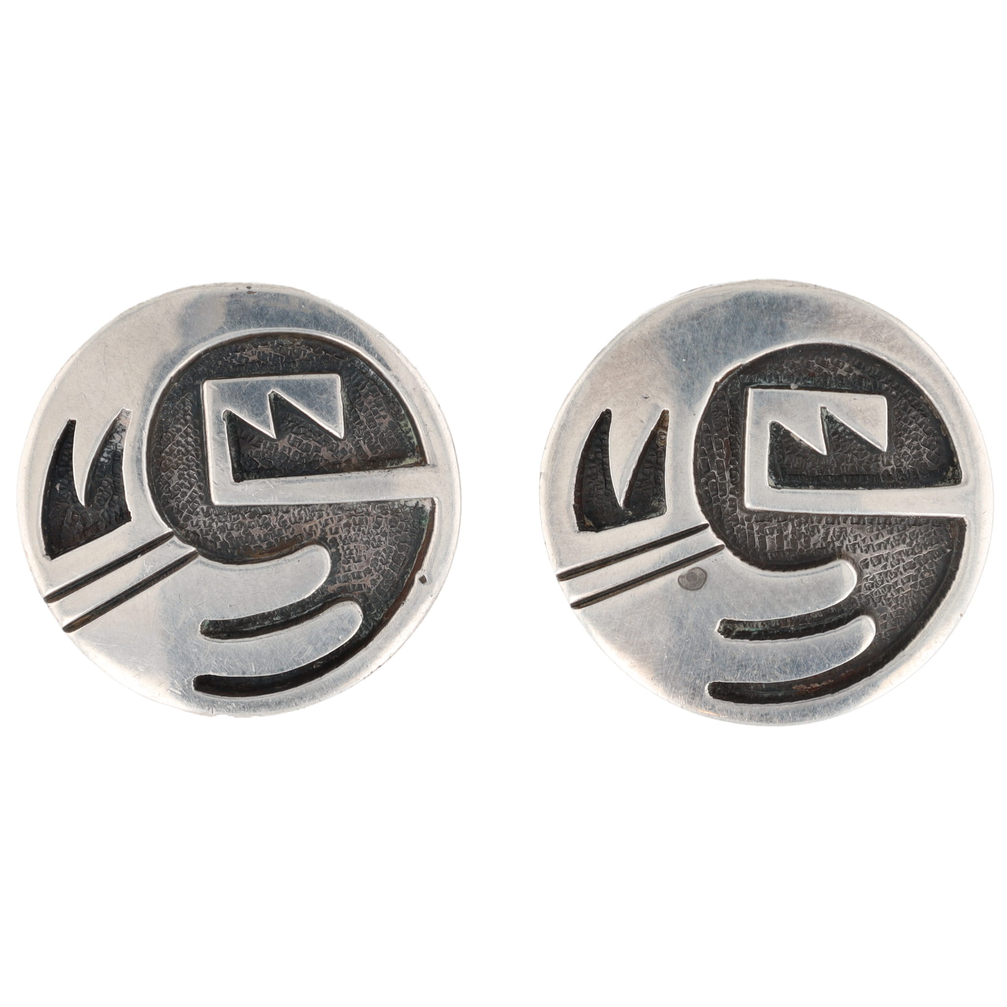 Vintage Hopi Sterling Overlay Earrings 10.5g