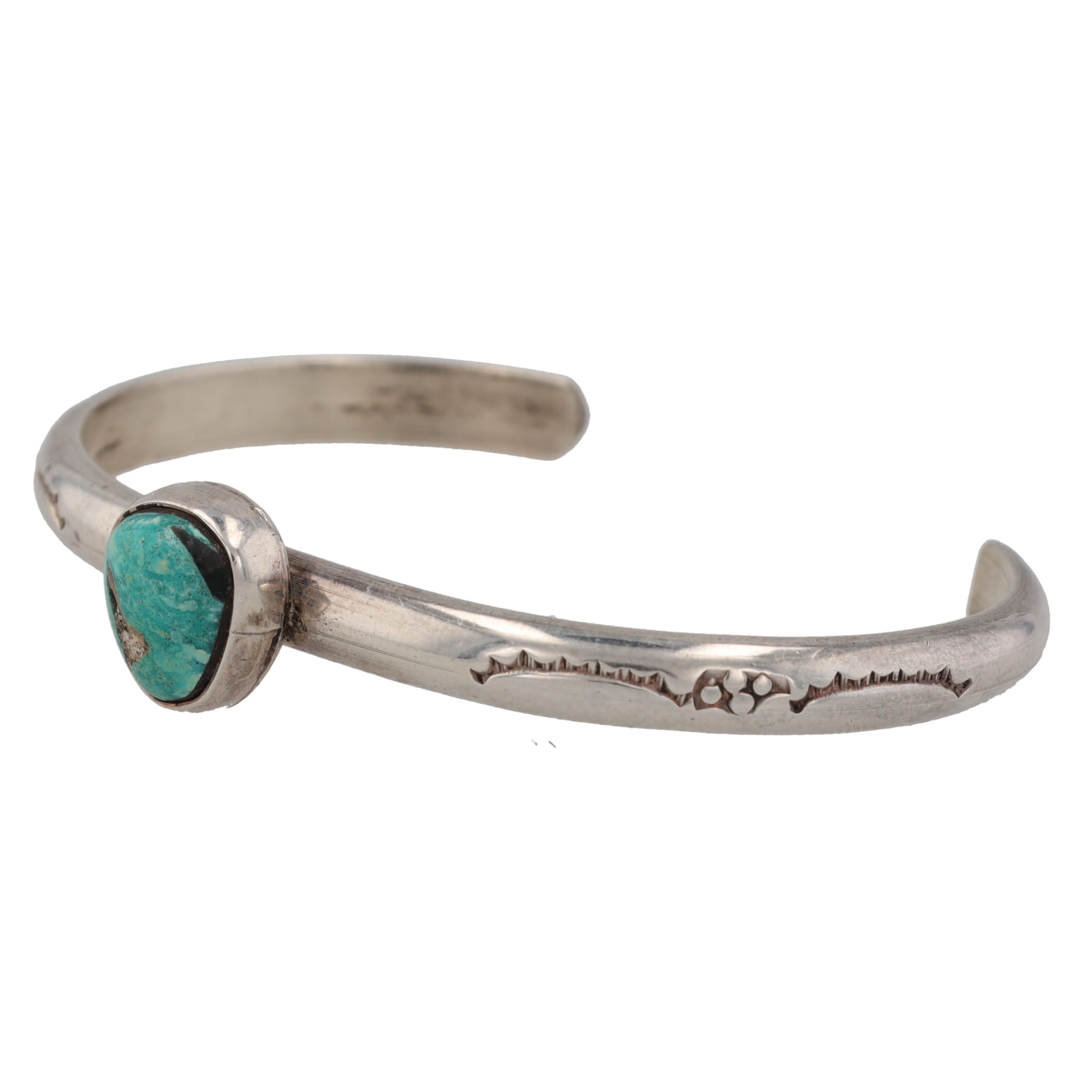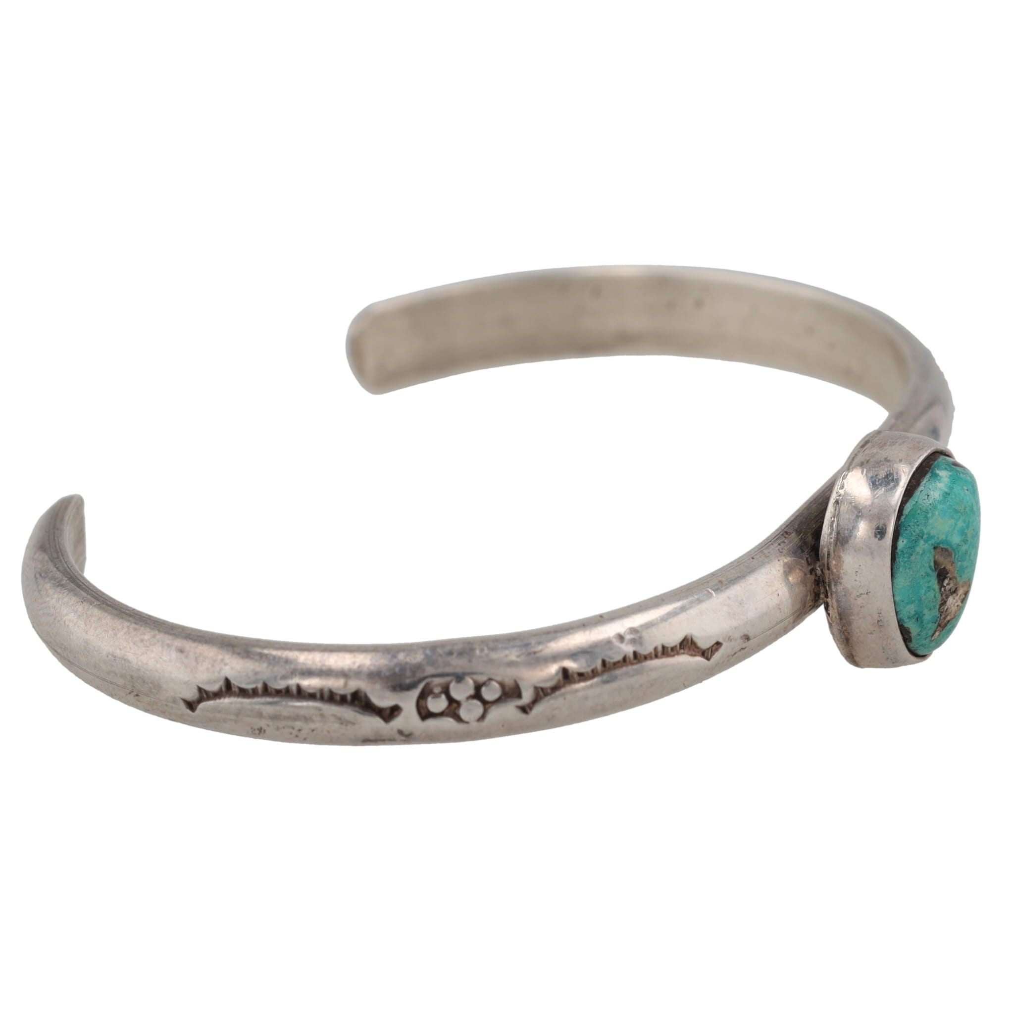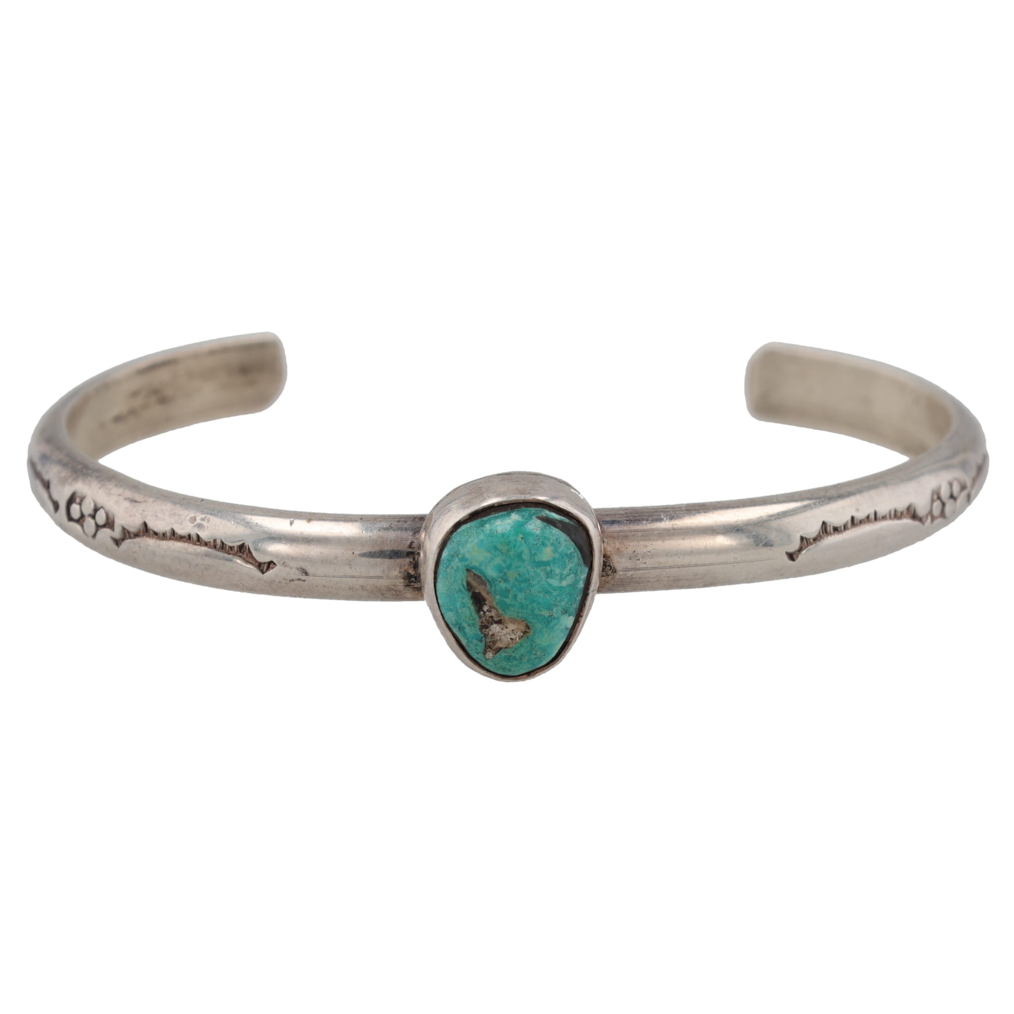 Vintage Navajo Turquoise Sterling Stamped Cuff Bracelet 15g