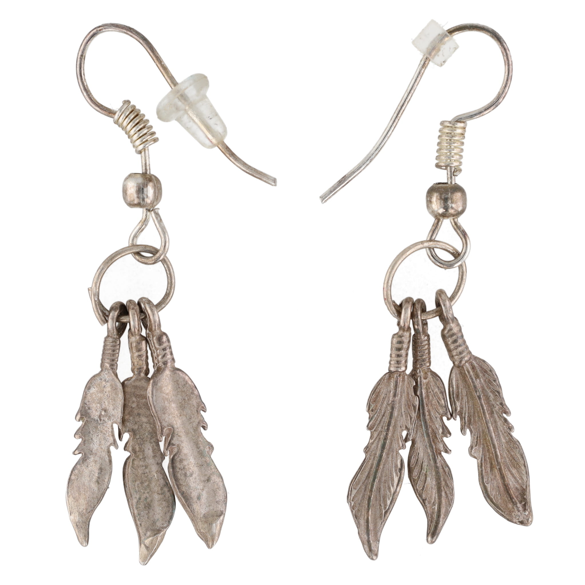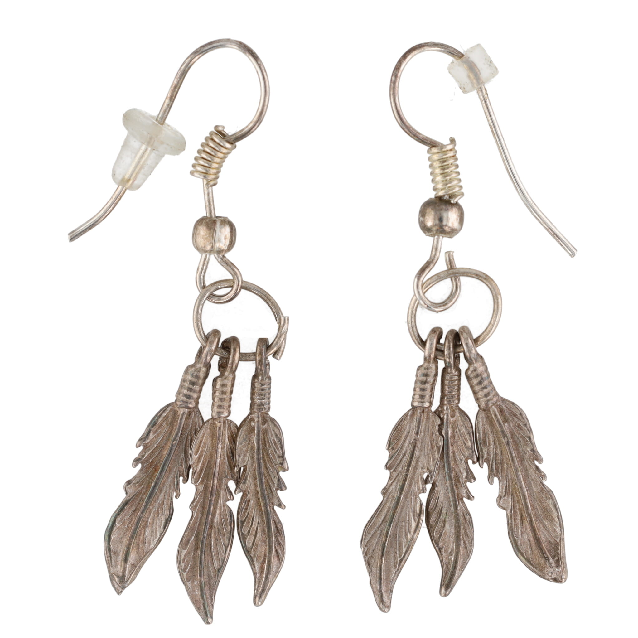 Vintage Navajo Sterling Feather Dangle Earrings 2.5g