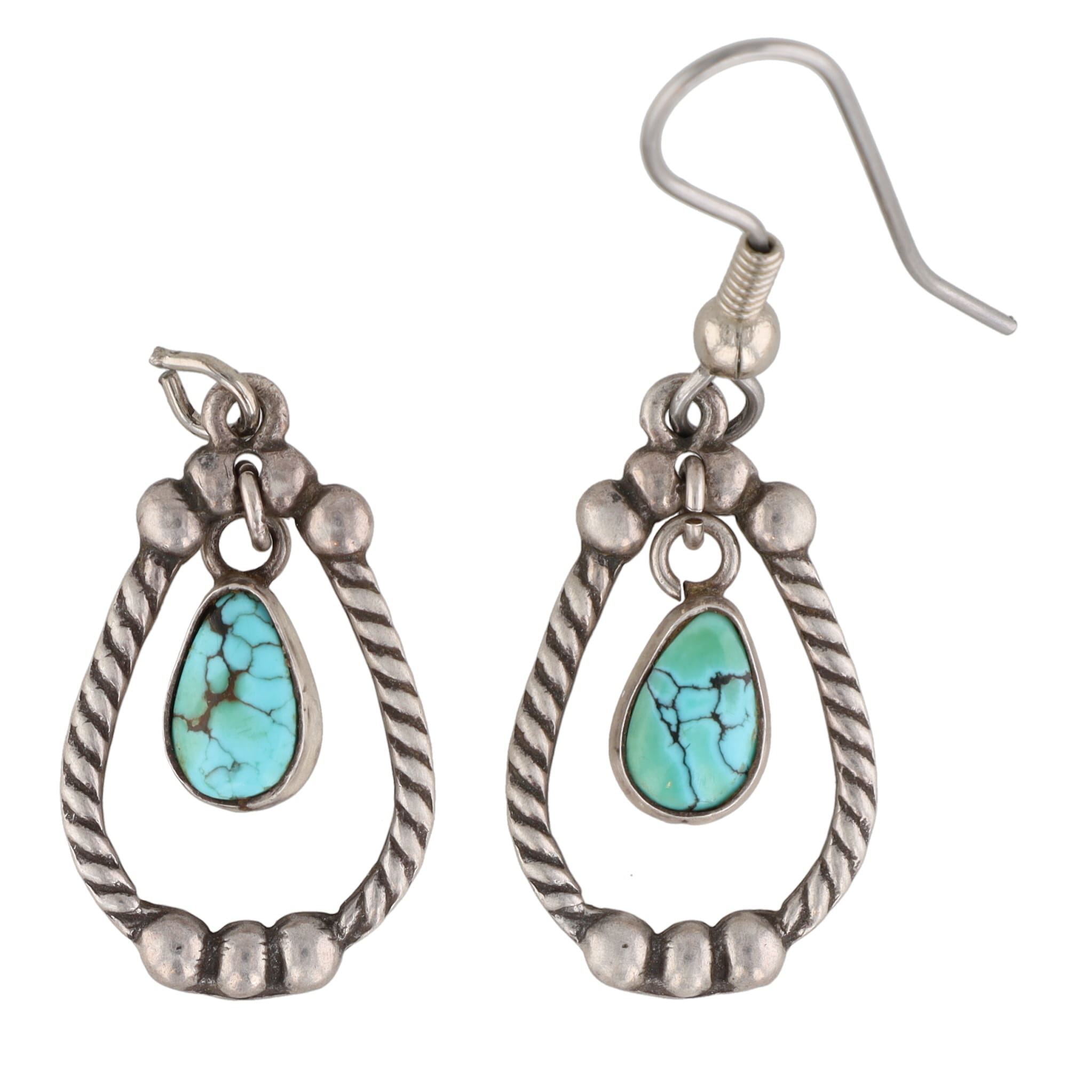 Vintage Navajo Turquoise Sterling Twist Dangle Earrings 3g -Missing Hook