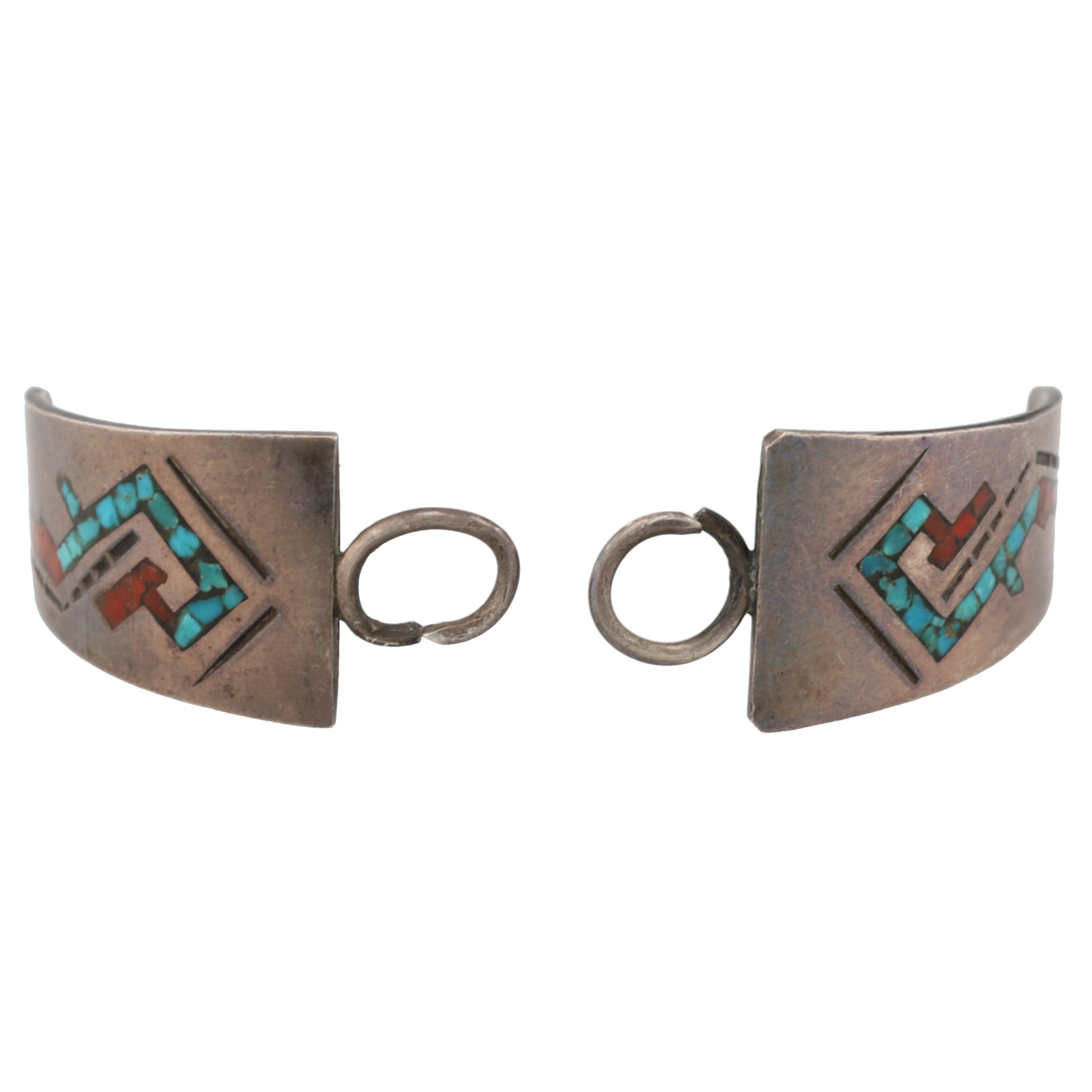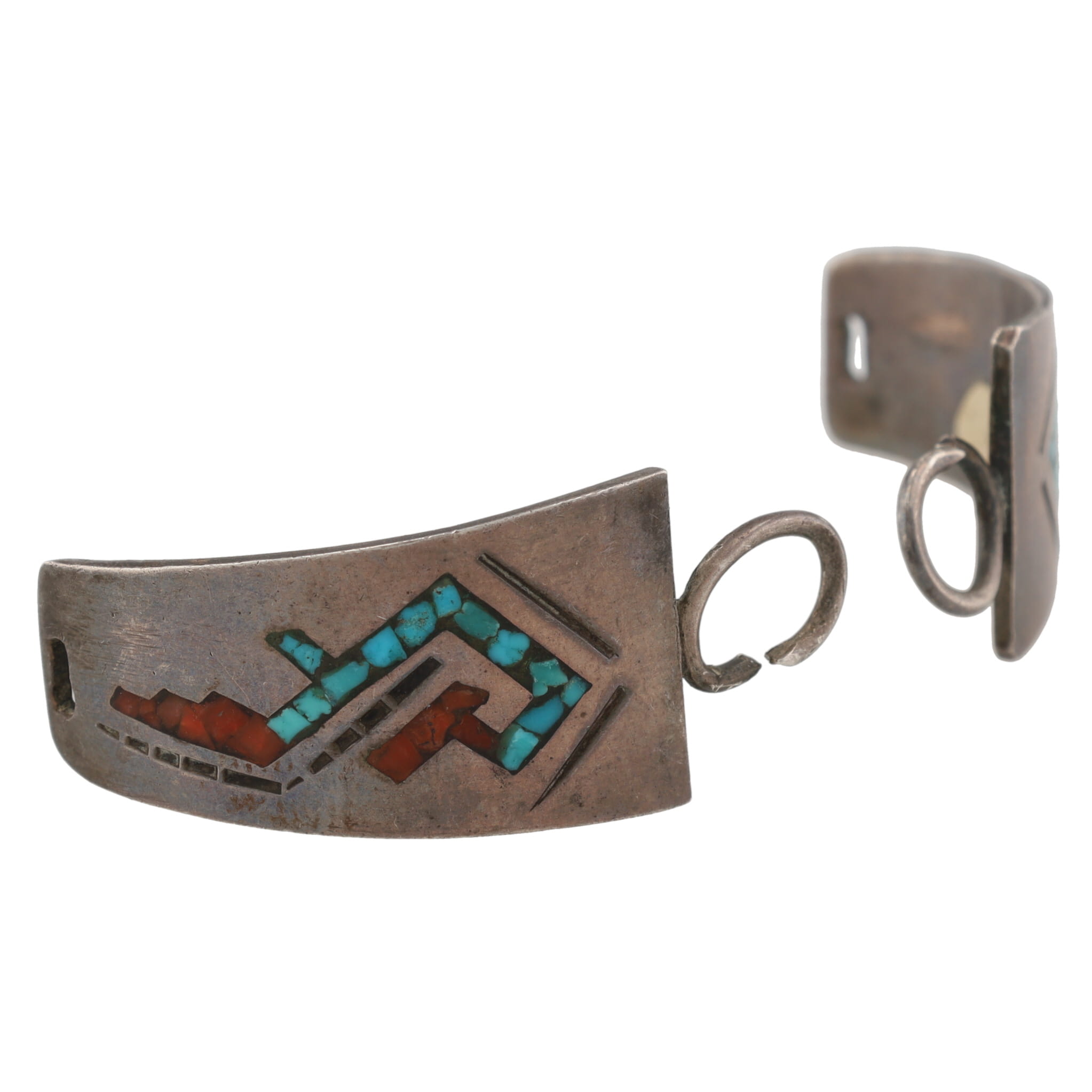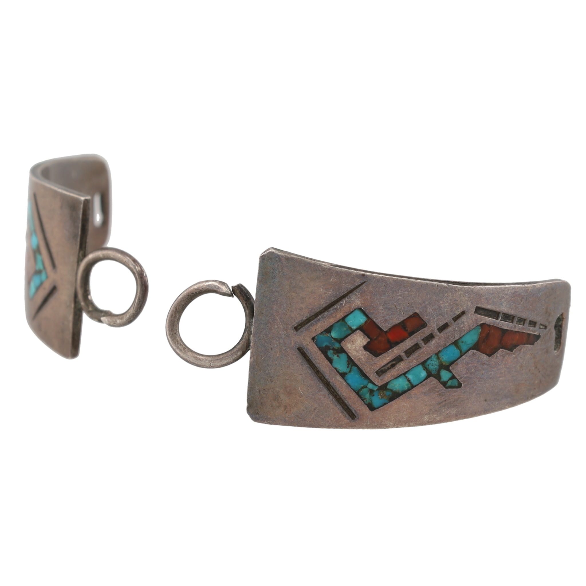 Vintage Navajo Crushed Turquoise Coral Sterling Inlay Watch Nibs 12g