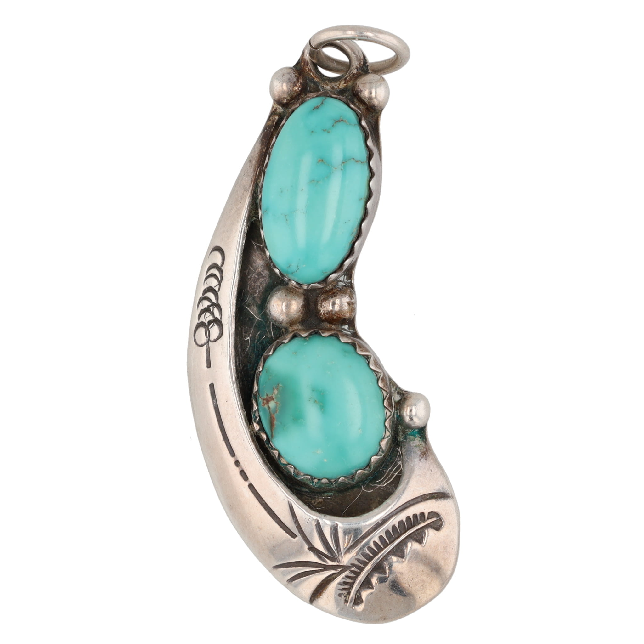 Whirling Wind Morton Ray Navajo Turquoise Sterling Stamped Pendant 5g