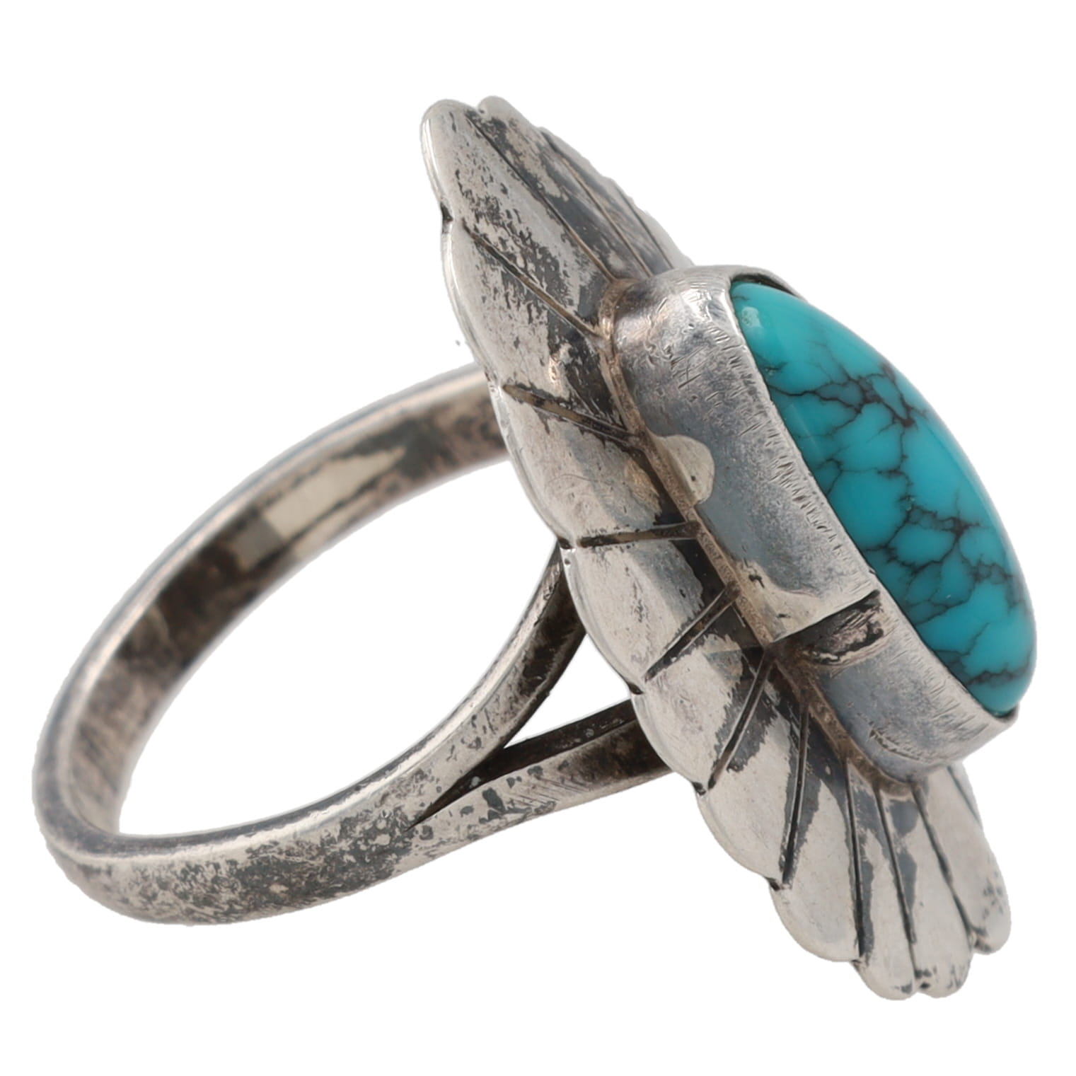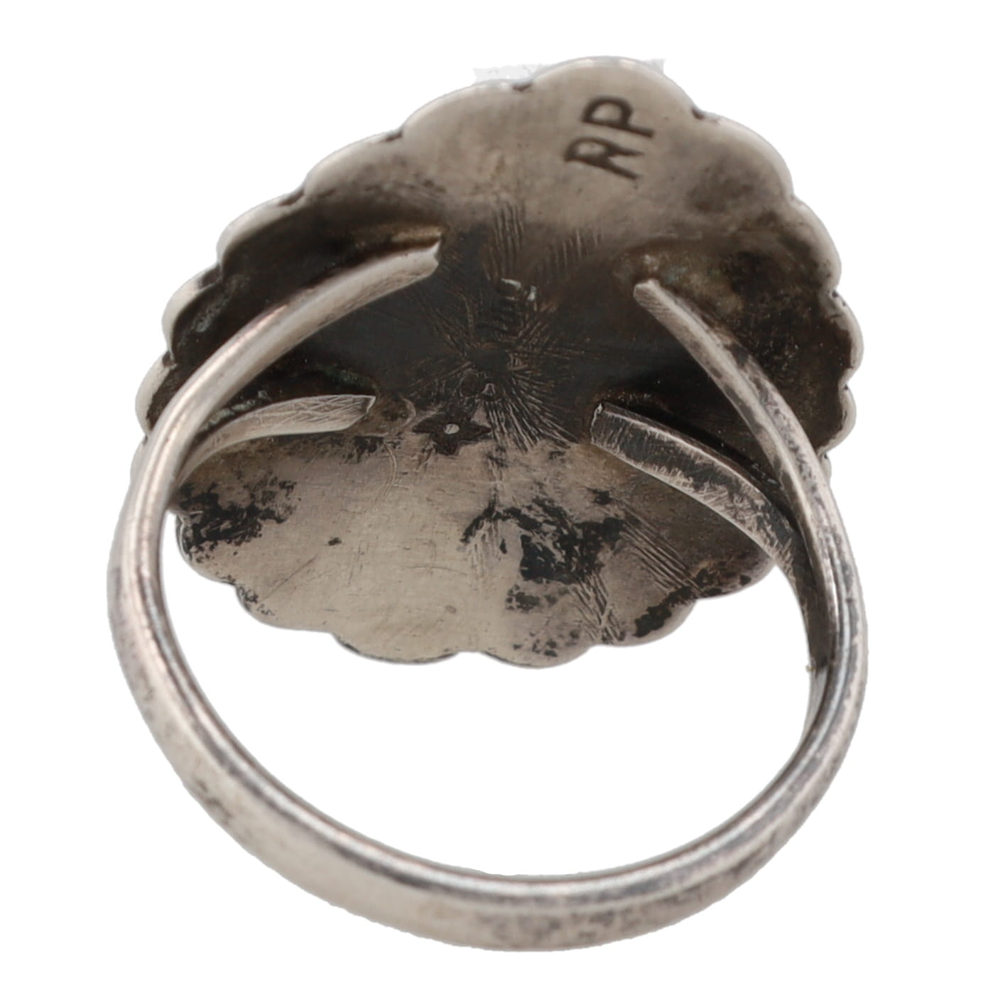 Double Signed Robert Platero & Sun West Silver Co. Turquoise Sterling Ring Sz. 7.5, 4.5g