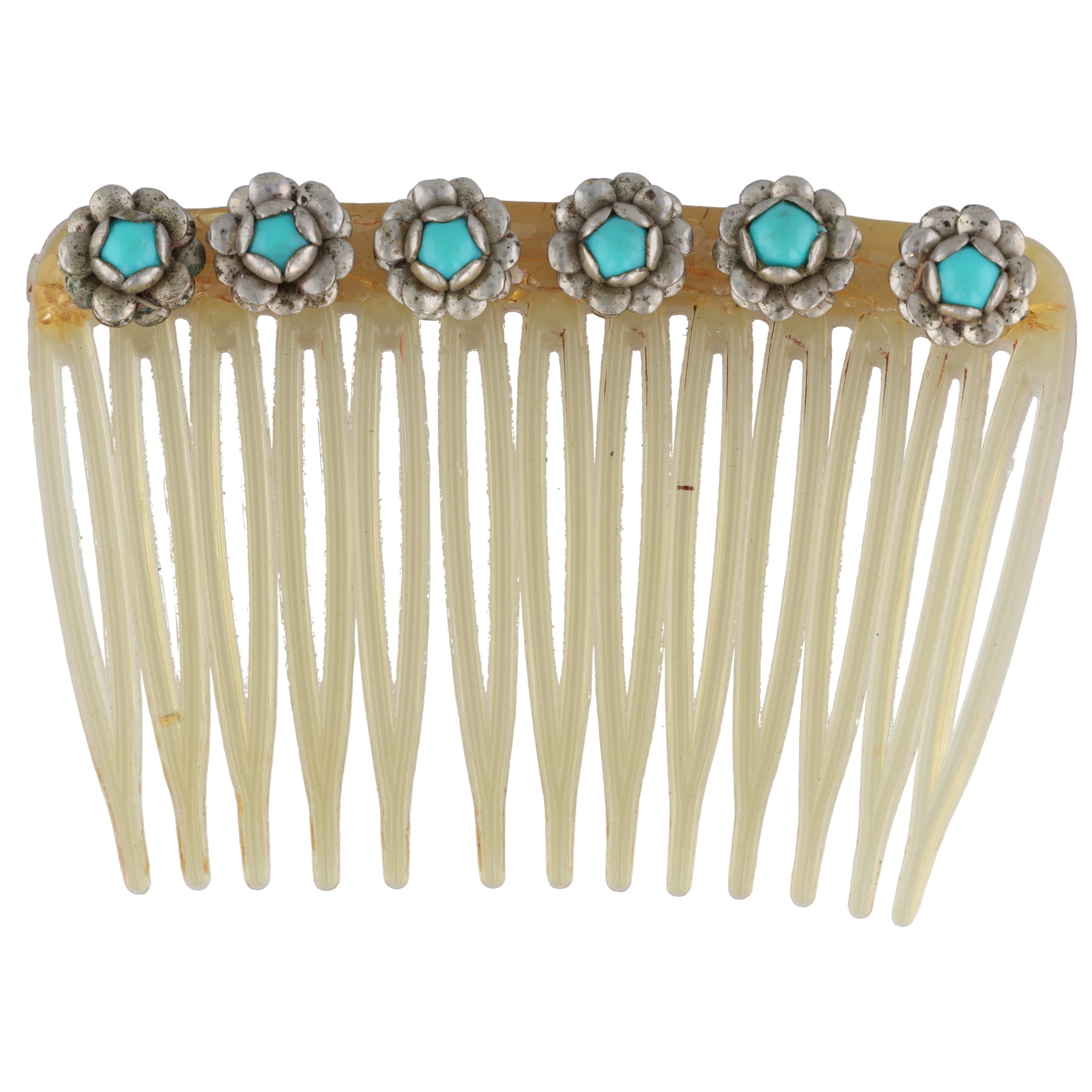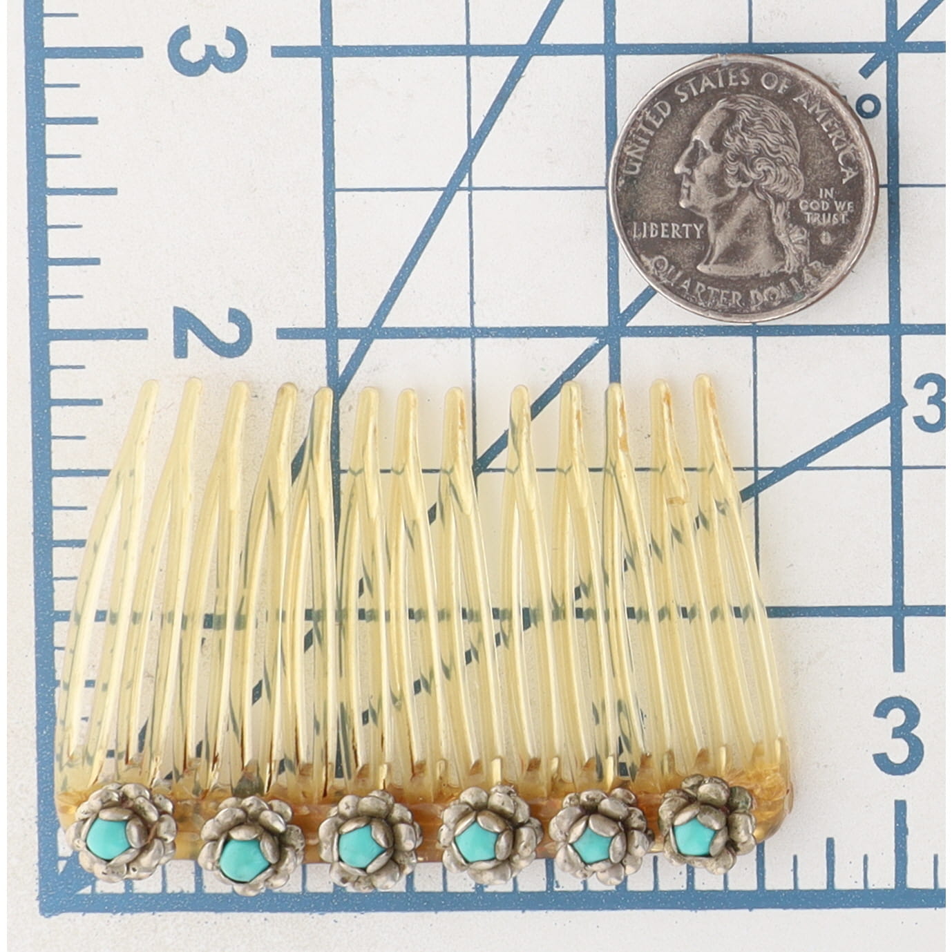 Vintage Navajo Turquoise Sterling Flower Hair Comb 7.5g
